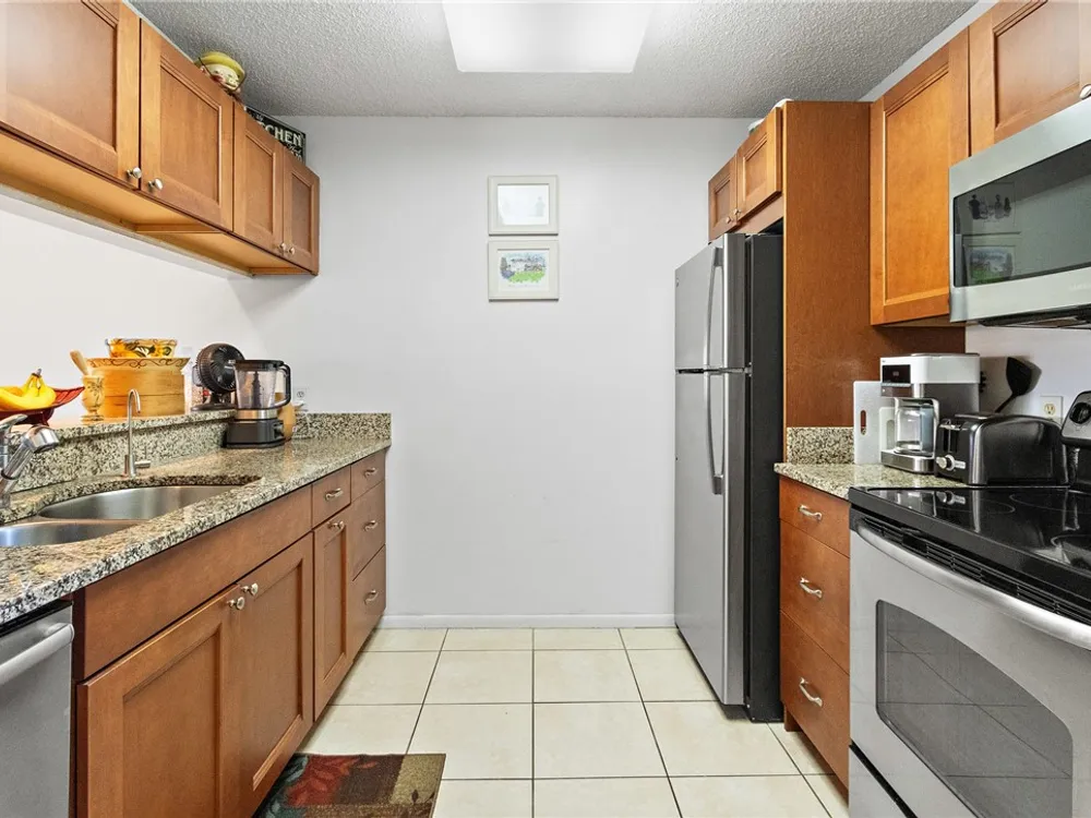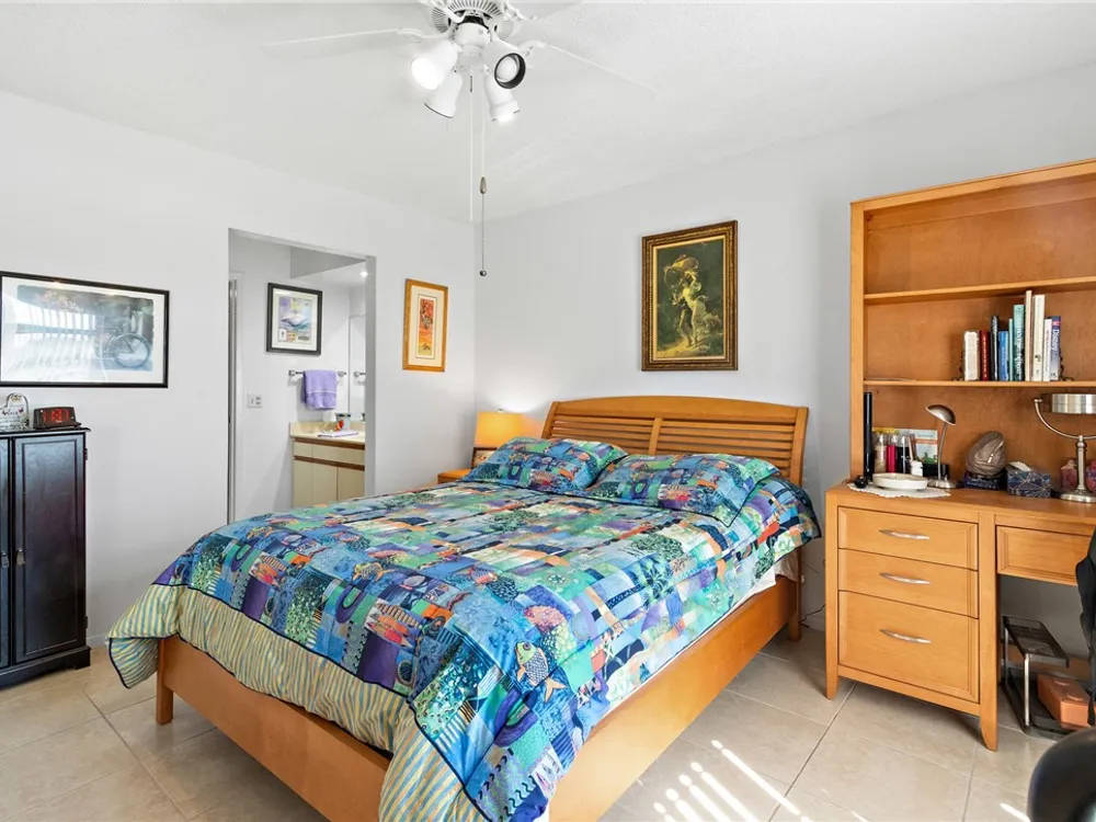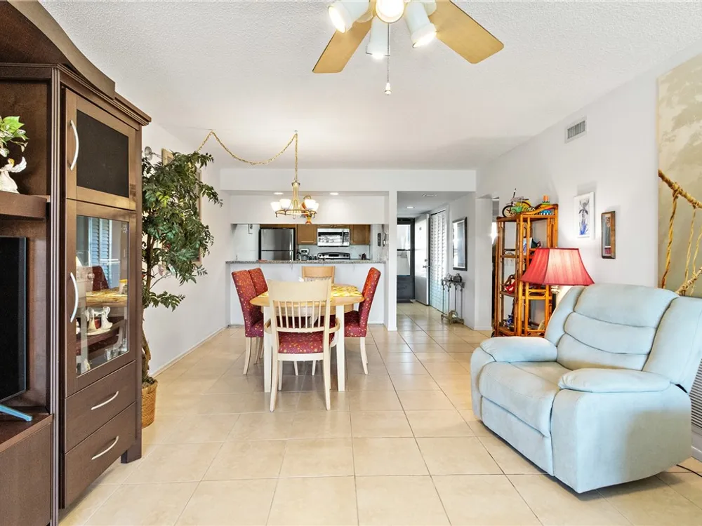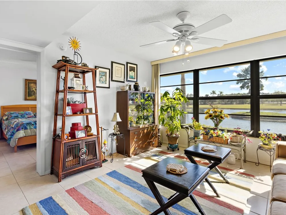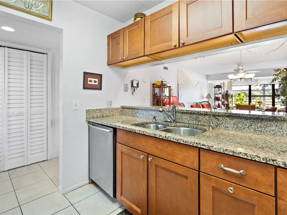 Charming 1st fl condo boasting stunning lake & golf course views! Beautifully renovated kitchen features sleek stainless steel appliances & spacious pantry! Enjoy fresh, clean water w/ installed osmosis filtration system! Oversized tile floors throughout add a modern touch, while impact windows & added electric hurricane shutters add an extra layer of comfort! Enjoy a huge walk-in primary closet, walk-in shower & split spacious bedrooms! Convenience of in-unit washer/dryer, plus amenities like heated pools, pickle ball, bocce ball & more! Golf course open to public! Close to beach & shopping!