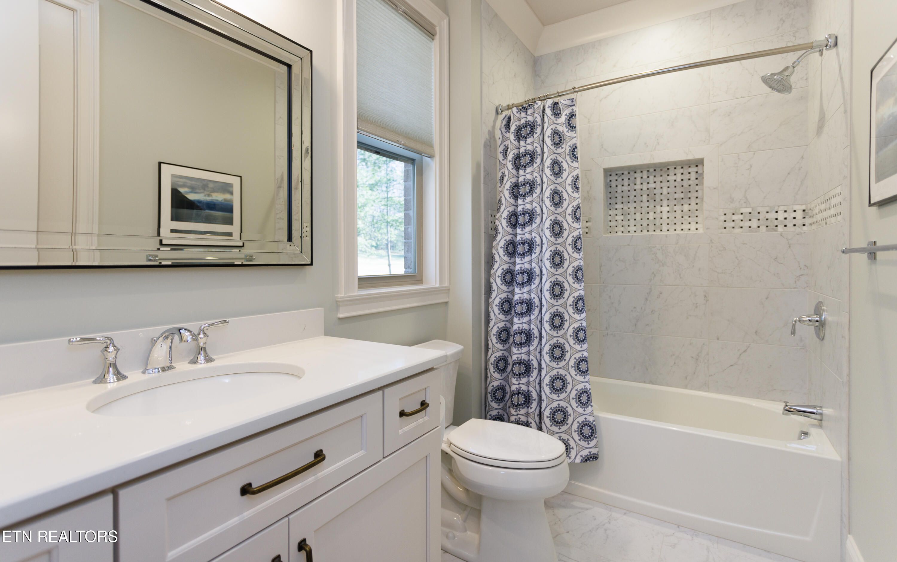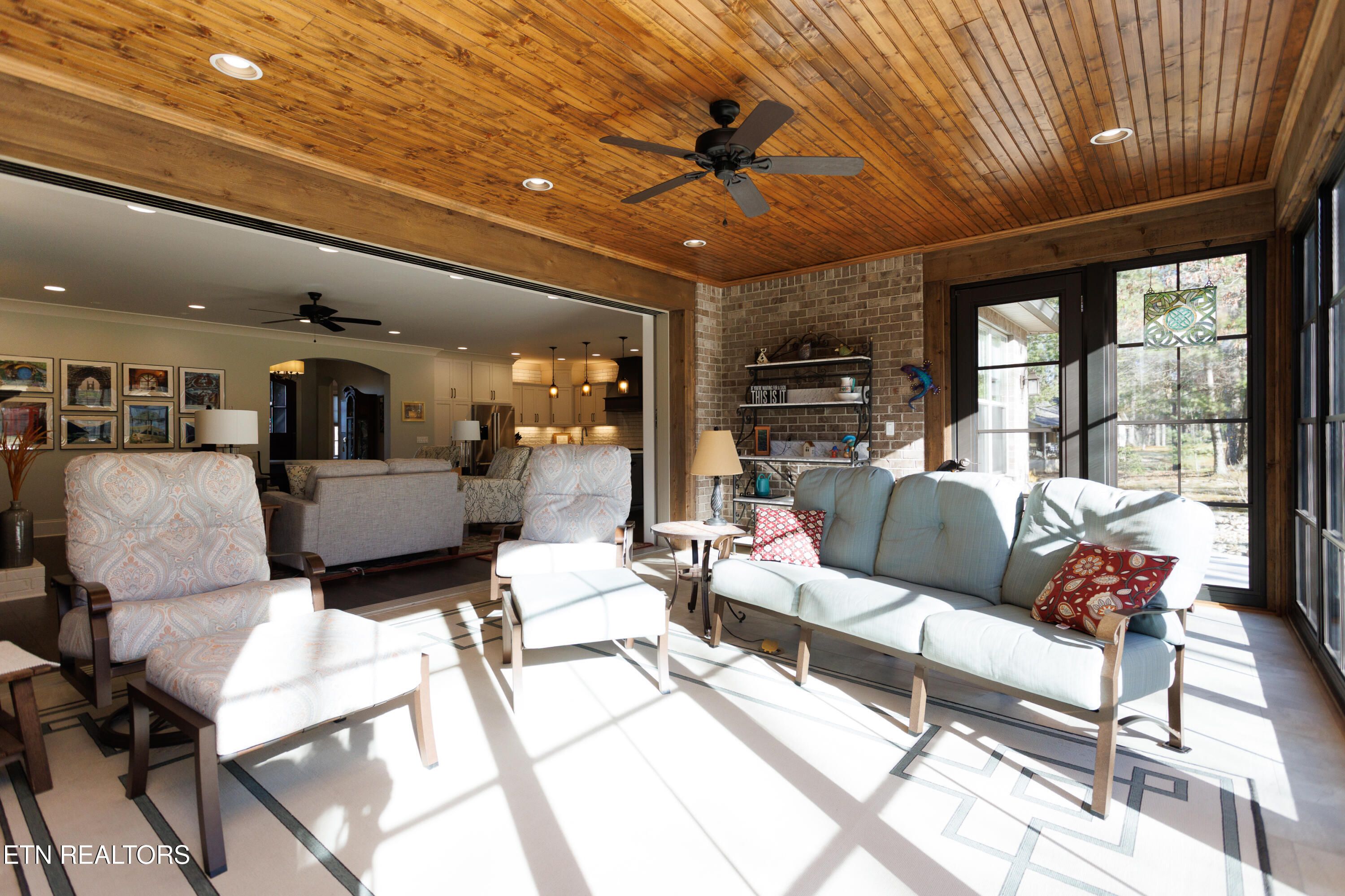 41 Wexford Lane | Fairfield Glade, TN Built by Zurich Homes Perfectly positioned on the 13th fairway of the Crag Golf Course in Fairfield Glade, this stunning Orleans floor plan offers 2,829 square feet of refined living with 3 bedrooms, 3.5 baths, a spacious bonus room, and a 3-car garage. Built just seven years ago, this home shows like new construction -- meticulously maintained and thoughtfully upgraded throughout. The heart of the home is designed to impress. A dramatic 16-foot multi-slide glass door fully pockets away, creating a seamless indoor-outdoor connection and an uninterrupted screened view of the fairway. Eight-foot interior doors, luxurious crown molding, and wall-wash lighting elevate the living and dining spaces, while luxury engineered hardwood flooring (50-year warranty) flows throughout the main level. Designed for both everyday living and entertaining, the chef's kitchen is anchored by an expansive quartz island with coordinating countertops and classic subway tile. A hidden signature walk-in pantry adds both function and surprise, complete with a water tap for an ice maker or espresso station, Jenn-Air dual-zone beverage/wine cooler, and quartz surfaces that extend seamlessly into the space. Select premium Bosch appliances -- including a refrigerator/freezer (just 2 years old) and induction cooktop with flex-join surface -- deliver exceptional performance wrapped in timeless design. The primary and guest spaces are equally well-appointed. A charming guest room window seat with hidden storage adds character and function. Bathroom and shower walls are reinforced for future grab bar installation if desired. A private home office includes custom built-ins and shelving, while the large bonus room with full bath and storage closet provides exceptional flexibility for guests or hobbies. An additional 400 sq ft of walk-in storage over the garage offers abundant space. Technology and infrastructure upgrades set this home apart: • Whole-house Generac 22kW generator • Whole-house water filtration system • Hot water circulation system • Fully encapsulated crawlspace with commercial-grade dehumidifier • Electronic closet with network rack and hardwired network drops in bedrooms, living room, and porch • Pre-wired spare electrical circuits in attic and crawlspace Outdoor living is equally impressive. The enclosed three-season room features Sunspace windows, luxury vinyl flooring, and a fireplace with remote start/stop. The back patio includes a gas tap for a propane grill. Extensive professional hardscaping, commercial-grade programmable landscape lighting, a concrete and stone perimeter walkway, and a Rain Bird WIFI irrigation system complete the exterior experience. The 3-car garage is a standout with workshop and storage areas, Lift-Master WIFI-enabled openers, hot and cold-water faucet in the third bay, and a wall-mounted pressure washer. Leaf guards were installed during construction for added convenience. This is a rare opportunity to own a resale built by Fairfield Glade's premier builder, Zurich Homes, offering the craftsmanship, efficiency, and upgrades of a new build -- without the wait. Pet-free and smoke-free since construction. Experience golf course living at its finest at 41 Wexford Lane.