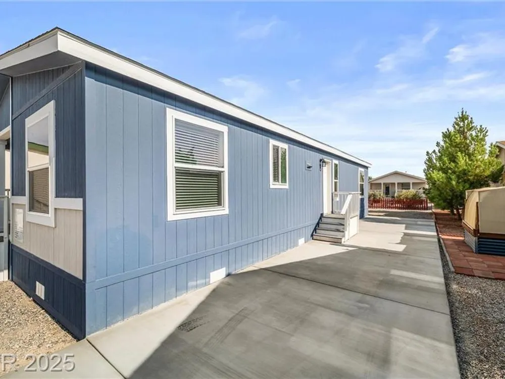 Welcome to your dream home in beautiful Pahrump, NV. This brand new 2025-built residence is located in an exclusive 55+ gated community and NO LOT LEASE, offering a lifestyle of refined comfort, privacy & resort-style amenities. Boasting 3 beds & 2 baths, this thoughtfully designed home showcases modern elegance with an open & airy layout. Be captivated by the seamless blend of sophistication & everyday livability. The heart of the home is the gourmet kitchen, featuring a huge center island, breakfast bar, cozy nook, quartz countertops & recessed lighting—perfect for cooking, entertaining, or simply enjoying your space. The open-concept floor plan creates a bright, welcoming atmosphere, with high-end finishes that elevate the home's style & functionality. Residents enjoy access to a wealth of HOA amenities, including a clubhouse, community facilities, pool, spa, golf course, fitness center, pet park, waterscaping, and more—designed to enhance your active & social lifestyle.