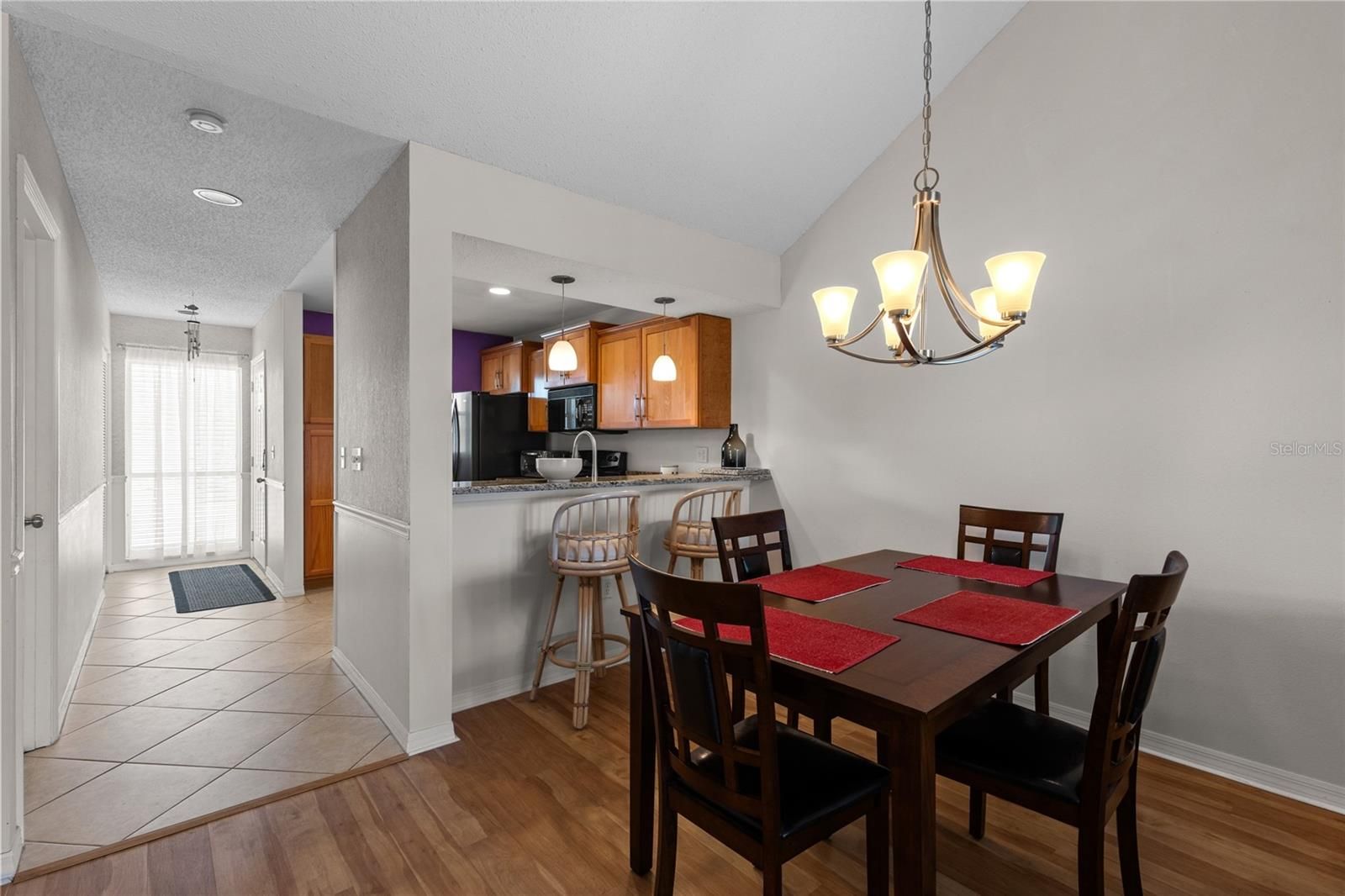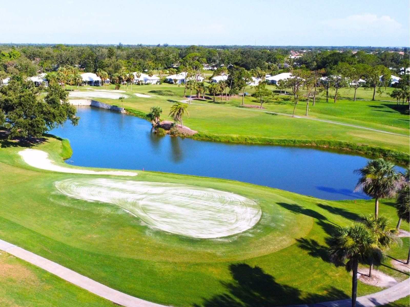 Stunning 2-bedroom, 2-bath condo with beautiful golf course views, just steps away from the pool, and located in Plantation Golf & Country Club. Overlooking the first hole of the Bobcat course, this light-filled home features vaulted ceilings and a spacious open floor plan designed for comfortable Florida living. The updated kitchen offers wood cabinetry, granite countertops, and appliances installed in 2020, while wood plank flooring flows throughout the great room and bedrooms. There is a laundry area with a full-sized washer and dryer within the condo. Enjoy peaceful lake and golf course views from the expansive screened lanai—perfect for morning coffee or relaxing afternoons. The condo is furnished in neutral tones and is offered fully furnished, making it move-in ready. Recent updates include a 2023 air conditioning system, 2022 water heater, and a private laundry room with a new washer in 2024. The primary suite features a walk-in closet, double sinks, spacious shower, and a private west-facing balcony ideal for sunset views or additional enclosed living space with sliding glass doors. Experience worry-free condominium living with professionally managed exterior maintenance. Major community improvements were completed in 2025, including new roofs, fresh exterior painting, and newly paved parking areas. The neighborhood offers a clubhouse and community pool just steps away. Plantation Golf & Country Club features two 18-hole championship golf courses, Har-Tru tennis courts, pickleball, bocce ball, fitness center, Jr. Olympic pool, dining, and social activities. Club membership is optional. Conveniently located minutes from Venice beaches, shopping, dining, Downtown Wellen Park, CoolToday Park, and I-75.