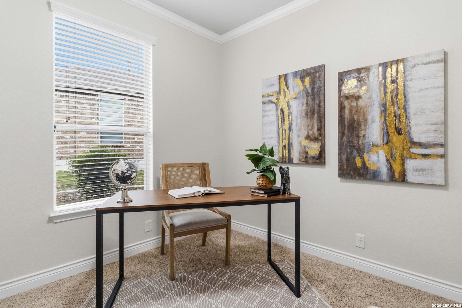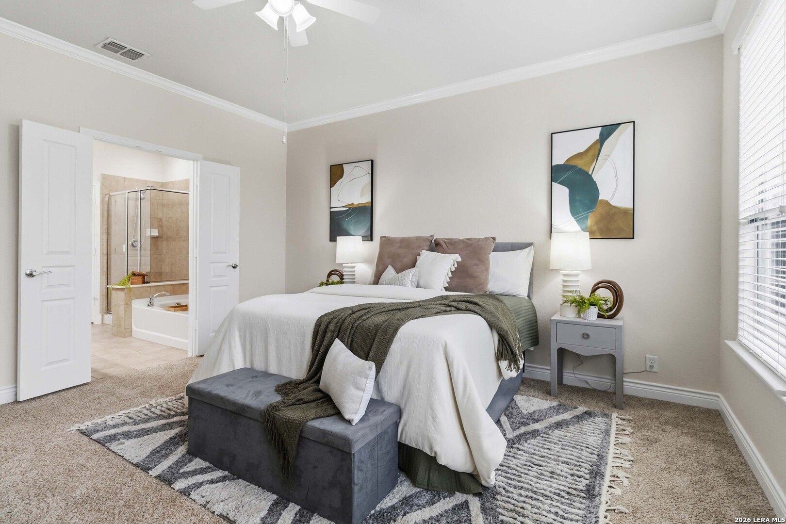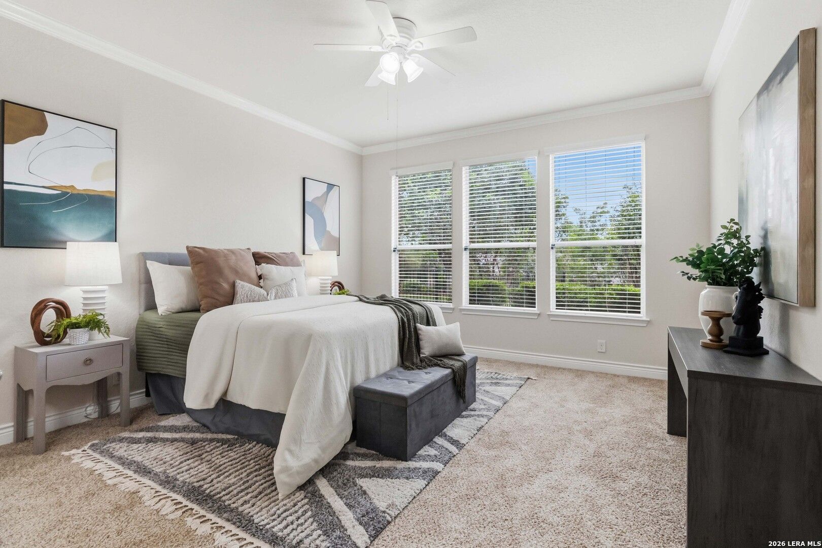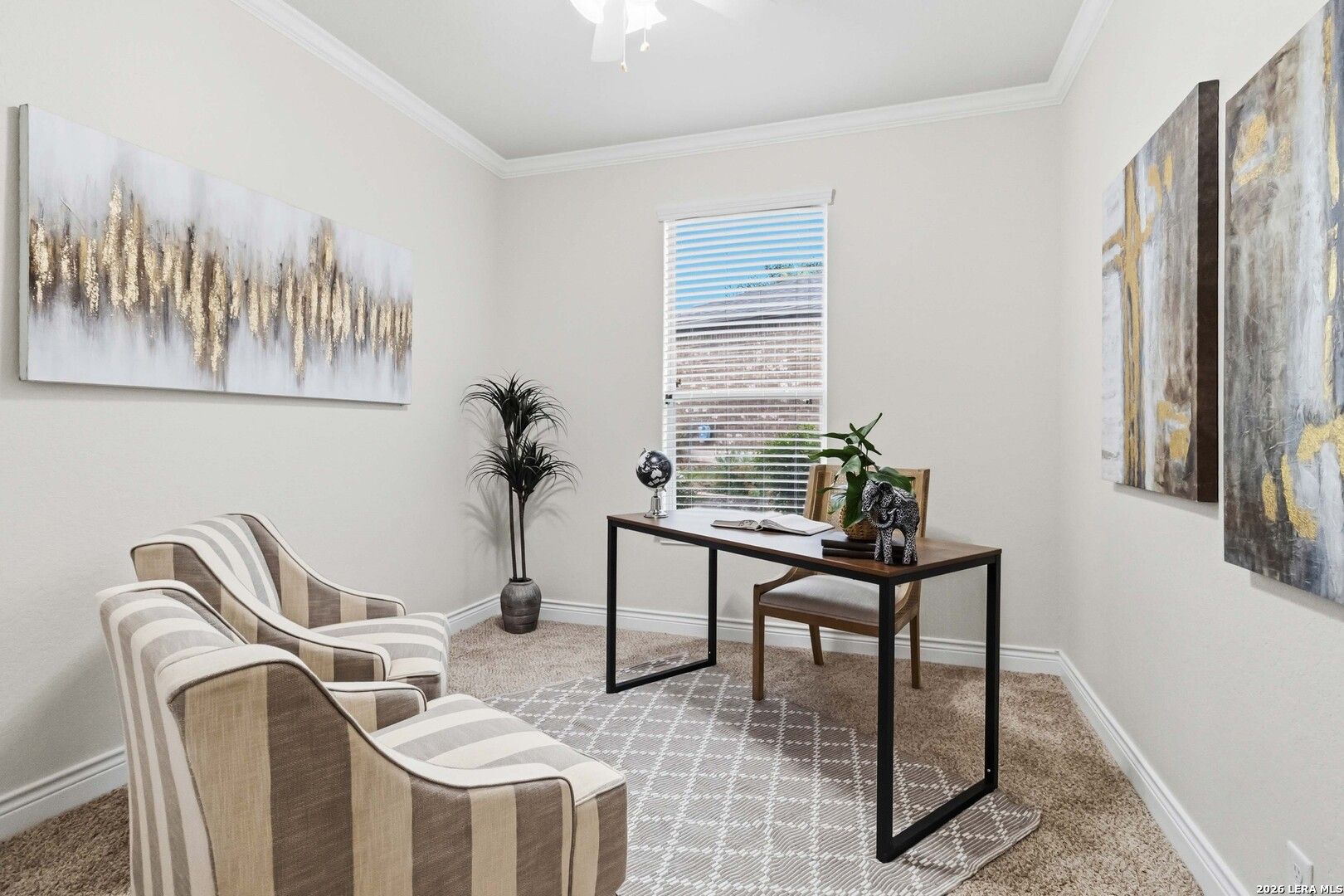 Impeccably cared for and move-in ready, 4102 Warm Winds offers the perfect blend of comfort, flexibility, and Hill Country charm in the premier 55+ Del Webb Hill Country Retreat community. This thoughtfully designed single-story home features 2 bedrooms, 2 full baths, and a dedicated study with French doors, ideal for a home office or optional third bedroom. The interior showcases fresh paint throughout, even in the garage, along with brand new carpet, making it truly turnkey. The kitchen is designed for both everyday living and entertaining, complete with 42-inch cabinets, granite countertops, a corner lazy Susan for maximum storage, gas cooking, and a stainless steel refrigerator that conveys. A new garbage disposal and kitchen faucet add to the home's thoughtful updates. The laundry room has been smartly designed with upper and lower cabinets, a sink, and generous countertop space, along with a huge storage closet. Natural light pours into the home, enhanced by a glass storm door and a wall of windows that frame peaceful views of mature crape myrtle and Texas mountain laurel trees. Enjoy the calming sights and sounds of nature from your living space or while relaxing under the shaded covered patio-an ideal setting for morning coffee or evening unwinding. The spacious primary suite is a true retreat, featuring a tray ceiling with fan and an en suite bath with dual vanities, a garden tub, separate walk-in shower, and a generously sized walk-in closet. Both bathrooms include convenient linen storage. Additional highlights include decorative crown molding and a new composition shingle roof installed in November 2023, offering added peace of mind for years to come. Residents of Del Webb Hill Country Retreat enjoy resort-style amenities that are truly second to none, including two outdoor pools, an indoor pool, fitness center, indoor walking track, tennis and pickleball courts, a stunning clubhouse with library, and miles of scenic walking trails. Plus, enjoy the charm of frequent deer sightings throughout this serene and beautifully maintained community. Whether you're enjoying peaceful mornings on the covered patio, staying active with world-class community amenities, or simply taking in the beauty of nature all around you, this home offers the lifestyle you've been waiting for.