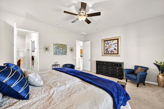 Turnkey desert living in a sought-after setting! Welcome to Sun City Shadow Hills, one of the Coachella Valley's premier 55+ active adult communities. This popular Serrente floor plan is offered TURNKEY FURNISHED and features 1,488 sq. ft. (EST.) of thoughtfully designed space with 2 bedrooms, 2 bathrooms, and a versatile den--ideal for a home office, hobby room, or welcoming guest retreat. Step inside to a light-filled, open-concept layout highlighted by elegant tile flooring that creates a seamless flow for both everyday living and effortless entertaining. The kitchen is beautifully appointed with granite slab countertops, black appliances, and abundant cabinetry, blending style with functionality. Plush carpeting in the bedrooms adds warmth and comfort, creating peaceful spaces to unwind. Enjoy relaxed indoor-outdoor living from the covered patio--perfect for morning coffee, evening gatherings, or simply soaking in the desert air. The spacious primary suite offers a walk-in closet and dual-vanity bath, while the guest bedroom is conveniently located near a full bathroom. The flexible den enhances the home's livability and adaptability to your lifestyle. Additional highlights include a garage with an energy-efficient AC mini-split, providing year-round comfort for hobbies, storage, workouts, or creative space. Residents of Sun City Shadow Hills enjoy resort-style amenities including two golf courses, two clubhouses, fitness centers, pools, pickleball and tennis courts, plus a vibrant calendar of clubs and social activities--delivering the ultimate active desert lifestyle. Comfortable, stylish, and move-in ready--this is desert living at its best.
