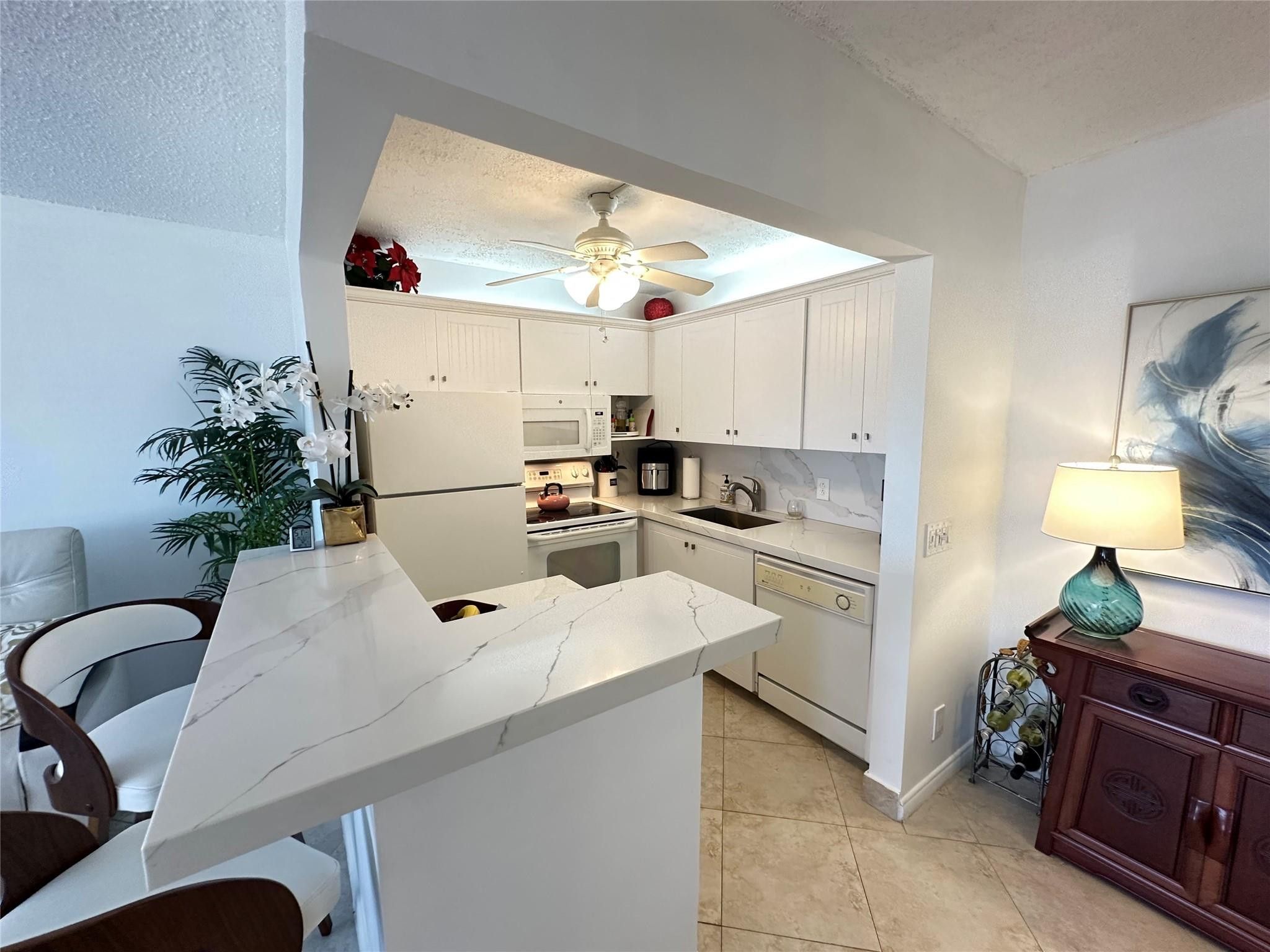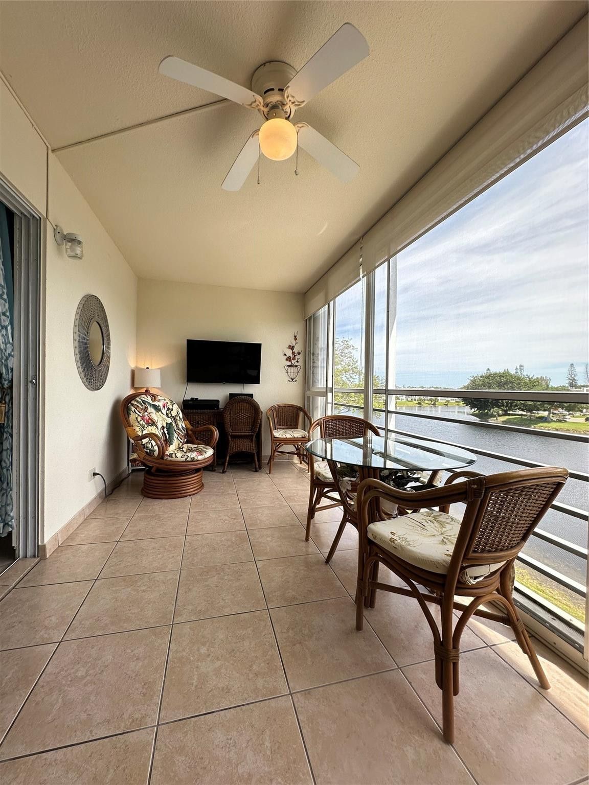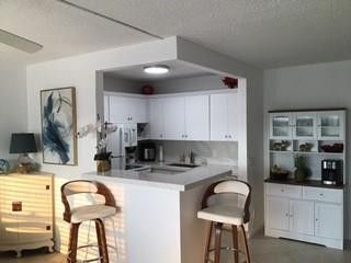 Watch the GORGEOUS SUNRISE over the fabulous lake view from this remodeled 1 bedrm, 1.5 bath condo! Tastefully furnished, this unit features an open newly renovated kit w/new quartz cntrs, white shaker cabs, lg ss sink & over cabinet ltg! The beautifully updated primary bathrm has tile walls & glass shower doors! Tile flrs thru-out, BRAND NEW ELEC PANEL & newer A/C & HWH! The LG encl patio has the perfect east exposure w/a wide expansive view of the lake! Well maintained bldg, just steps to the CLUBHOUSE & bldg. has a community bbq area! Enjoy the resort style liv w/24/7 gated sec, pools, tennis, pickleball, bus service, putting green, gym, movies, theater, clubs, classes galore & more!! Close to shopping, great restaurants, major hwys & the BEACH! DON'T MISS THIS ONE!! Assoc. Claims 55+