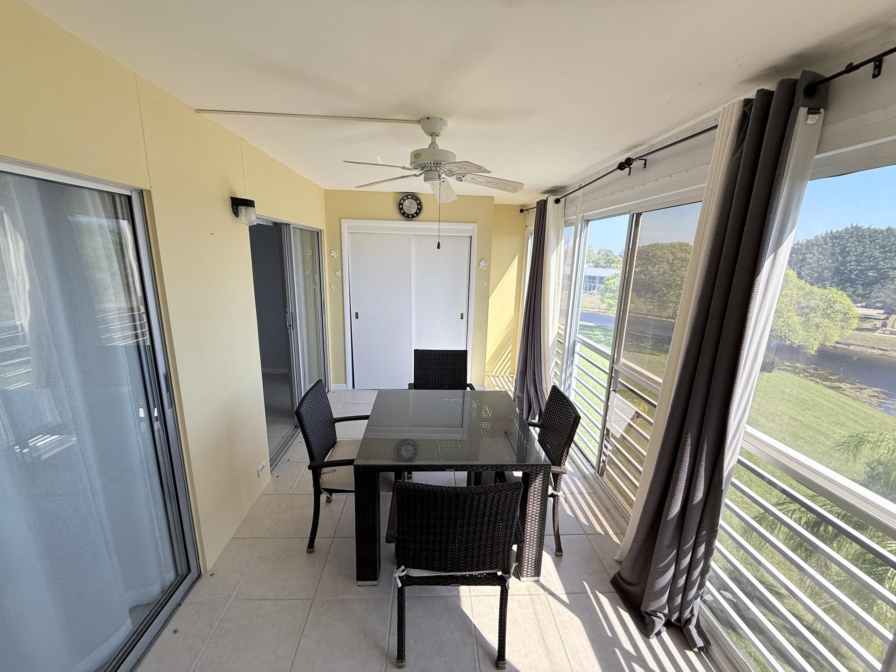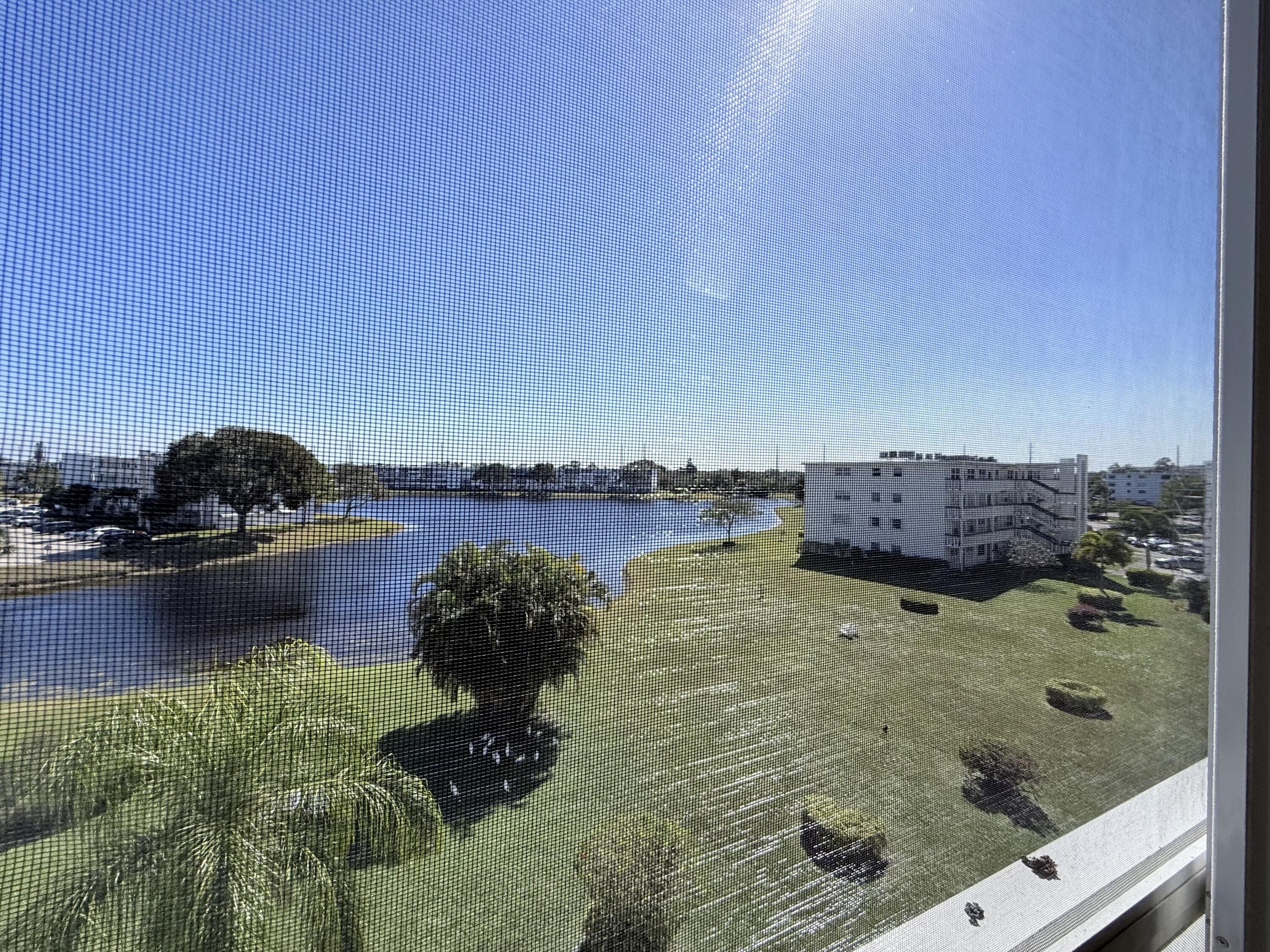Lovely 2/2 with serene Grand LAKE VIEW, top floor catches the breezes....tiled throughout, newer appliances, tankless water heater, popcorn ceiling removed and painted, newer sliding windows in sunroom, a few updates done. New AC unit put in 2019- exhaust fans in bathrooms, 5 new ceiling fans, shades in LR and BR. The building has a wonderful barbecue area by the water. Close to the elevator for easy access. Motivated Seller. This condo is ready for you to make it your own. Community offers a picnic area with BBQ and community pool nearby. Come see what this condo has to offer. The main Clubhouse has Indoor & Outdoor Pool, Restaurant, 1600 Seat Theater, Clubs, Classes, Billiards, Tennis, Pickleball, Volleyball, Ping Pong, Bocce Board, ShuffleBoard, Fitness Center and more.