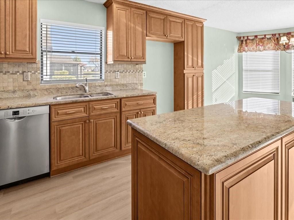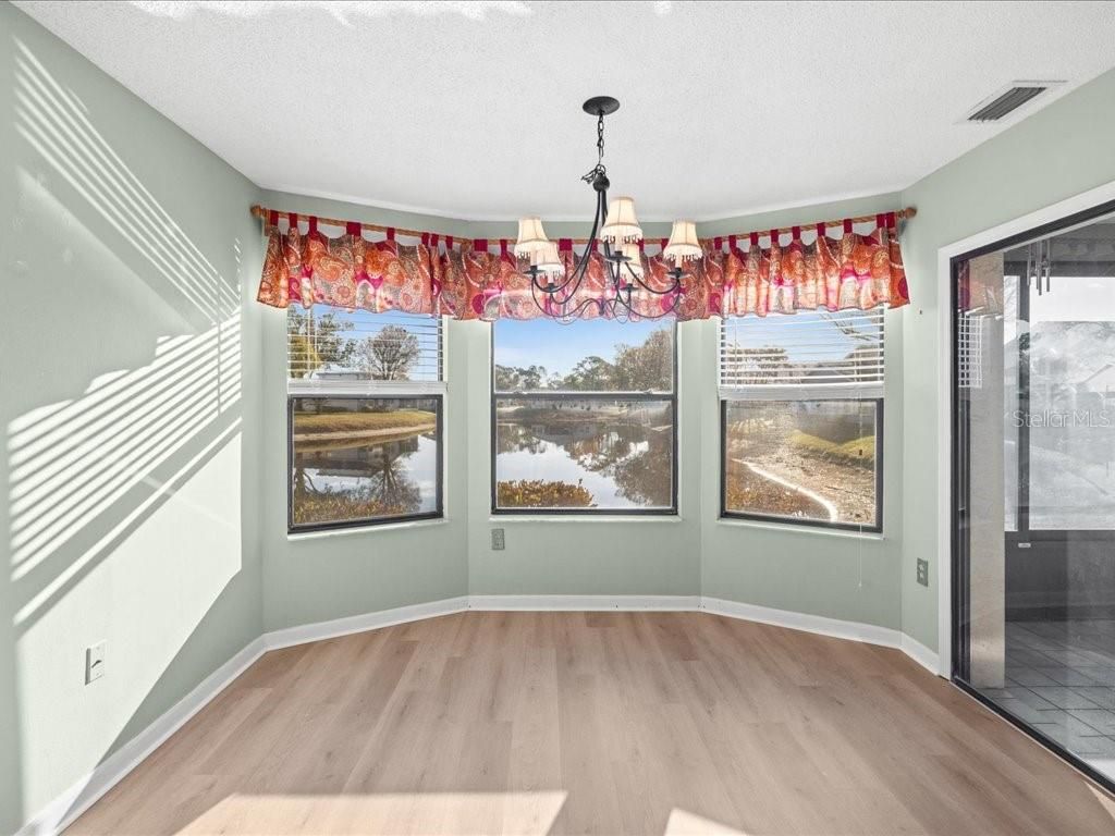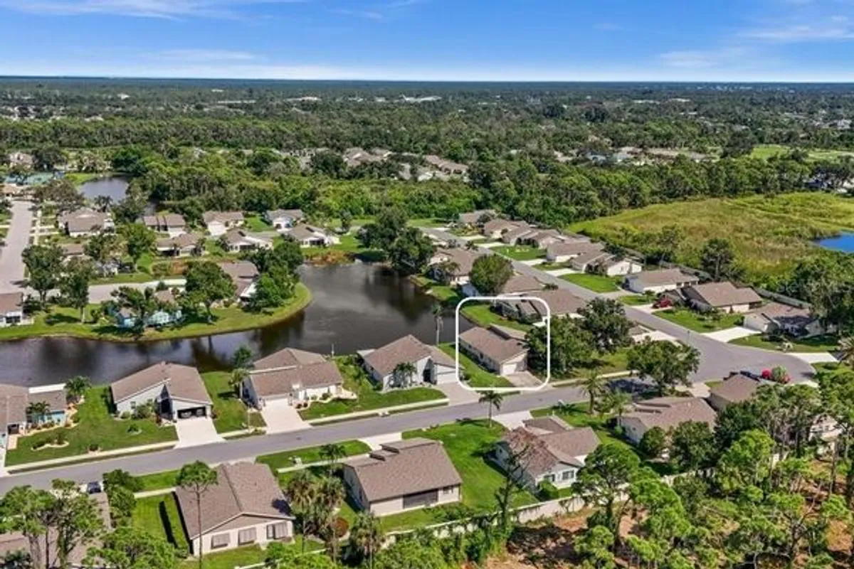 UPDATED PHOTOS! Flooring in the kitchen, dining area, and two bedrooms has been replaced with DuraLux Performance waterproof luxury vinyl flooring. This home presents a wonderful opportunity to make it your own, offering a bright great room with vaulted ceilings and a screened lanai overlooking a peaceful water view, along with a kitchen featuring granite countertops, stainless steel appliances, soft-close cabinetry, a pantry, and a sunny bay-window dining area. The split floor plan provides privacy with updated bathrooms in both the primary and guest suites, plus a versatile den/office and an inside laundry room. Located in Park Forest, a gated 55+ community with a clubhouse, pool, pickleball, tennis, and shuffleboard, residents enjoy low-maintenance living with HOA fees covering lawn care, irrigation, roof replacement, exterior painting, and common areas—no flood insurance required. Conveniently close to historic Dearborn Street and less than 15 minutes to the beaches of Manasota Key, Venice, and Nokomis.