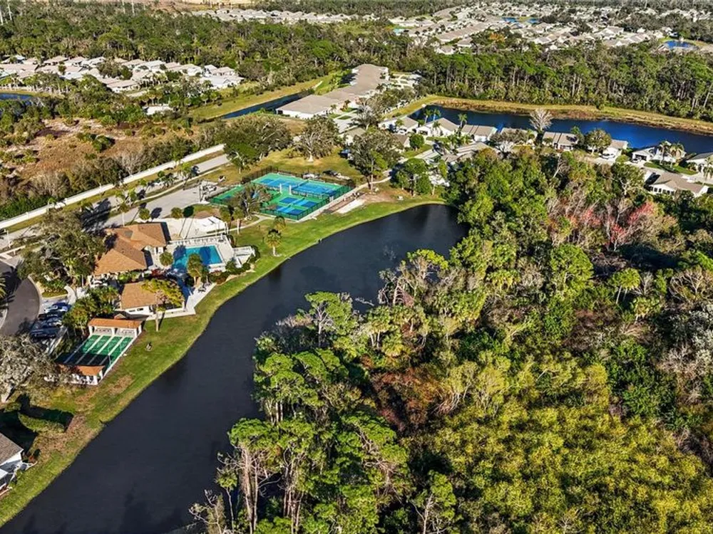 One or more photo(s) has been virtually staged. Welcome to Park Forest, a vibrant gated 55+ community offering exceptional amenities and an active lifestyle. Residents enjoy monthly clubhouse events, a sparkling pool, and plenty of recreational options including pickleball, tennis, and shuffleboard. This charming home features a spacious great room with vaulted ceilings, ceramic tile floors, and sliding doors that open to a large, screened lanai overlooking a tranquil water view. The kitchen is a chef’s delight, complete with a sunny bay-window dining area, soft-close cabinetry, granite countertops, stainless steel appliances, and convenient pantry. The thoughtful split floor plan provides privacy for both the primary and guest suites, each featuring updated bathrooms. A versatile den/office and an inside laundry room add to the home’s functionality. Enjoy true low-maintenance living with HOA fees that cover lawn care, irrigation, roof replacement, exterior painting, and maintenance of common areas—plus, no flood insurance is required. Ideally located near historic Dearborn Street for shopping and dining, this home is also less than 15 minutes from the pristine beaches of Manasota Key and just a short drive to Venice and Nokomis beaches. Don’t miss the opportunity to make this beautiful home yours!