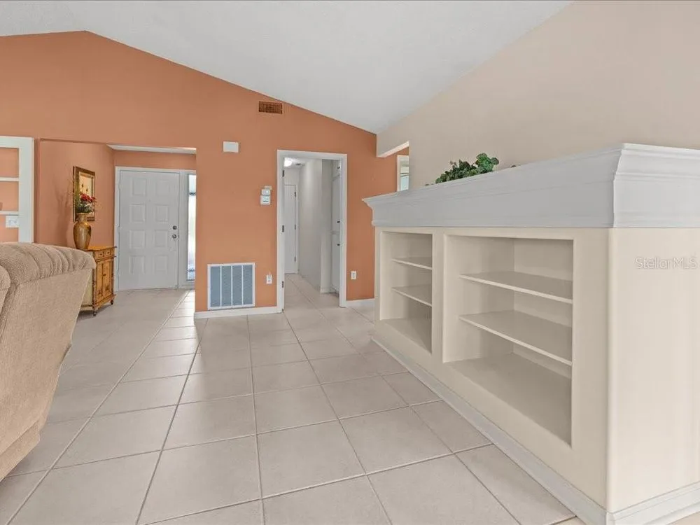 - Ceiling Fan(s), Eat-in Kitchen, Open Floorplan, Solid Surface Counters, Solid-Wood Cabinets, Split Bedrooms, Stone Counters, Thermostat, Vaulted Ceiling(s), Walk-In Closet(s), Window Treatments