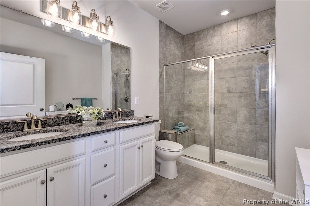 Welcome Home to 4111 Lord Dunmore Drive! This Jefferson features luxurious modern finishes, stylish extras and an impressive design for your everyday living. A convenient & efficient layout, without an inch of wasted space. A cheery dining room setting leads you to an amazing kitchen with upscale cabinetry coordinating perfectly with the granite, backsplash and stainless steel appliances. The spacious & fun island offers plenty of seating and flows nicely into the stunning family room. The 1st floor Primary BR offers 2 closets and luxurious bath area. Heading upstairs are two BR's, an inviting loft area, full bath and large walk-in storage room. Enjoy outdoor living on a covered or extended patio setting that backs to woods/privacy. Quality built-in storage shelving added in garage. Electric Vehicle charger added. This home was built with plenty smart home and energy efficient features. Time to enjoy resort style living in Williamsburg's premier 55+ community.