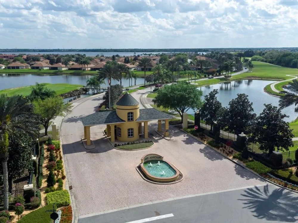 BREATHTAKING WATER VIEWS, & CDD BOND DEBT PAID OFF AT CLOSING! A MUST SEE! This beautifully maintained Hemingway floorplan offers 2 bedrooms, 2 baths, and a versatile den across 1,688 square feet of comfortable living space, showcasing breathtaking water views of Lake Ashton along with peaceful canal and pond views where you can enjoy abundant wildlife. Major updates include a new roof in 2020, and a new A/C in 2021, which provides exceptional value and peace of mind. Inside, you’ll find tall kitchen cabinets, a built-in desk area, and an open layout ideal for both everyday living and entertaining. The spacious primary suite features a walk-in closet and serene water views, offering the perfect retreat after a long day. Perfectly situated within the sought-after Lake Ashton community, residents enjoy an unmatched resort-style lifestyle featuring 36 holes of golf (membership optional), a grand clubhouse with a ballroom, movie theater, bowling lanes, fitness center, restaurant, and an outdoor temperature-controlled pool. Additional amenities include bocce, tennis, and shuffleboard courts, card, craft, and billiard rooms, plus a separate health and fitness center offering an indoor lap pool, pickleball, indoor basketball and racquetball courts, a large multi-purpose room, and more. The current furniture is optional, making this home an easy, move-in-ready opportunity.