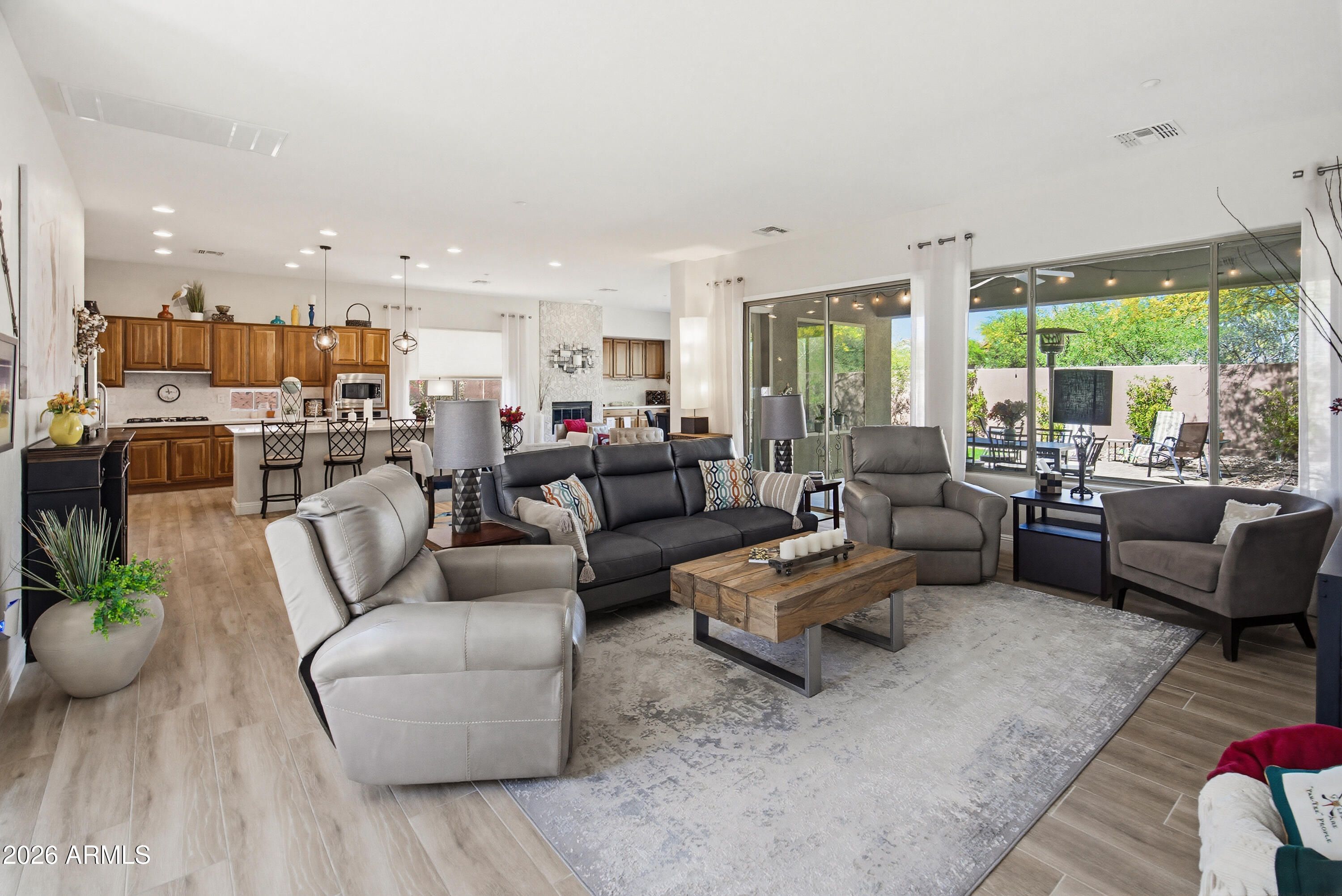 Fabulously remodeled home on large private lot backing & siding to wash. Wall removed for a totally open feel, fabulous for entertaining! 4th bedroom is now casita with bath and kitchenette featuring its own washer/dryer. All floors replaced with neutral porcelain tile & 6 inch baseboards added throughout. Warm & inviting, this home is beautifully appointed & features a 3 car garage as well. So very much to offer in this incredible Anthem community. MUST SEE!