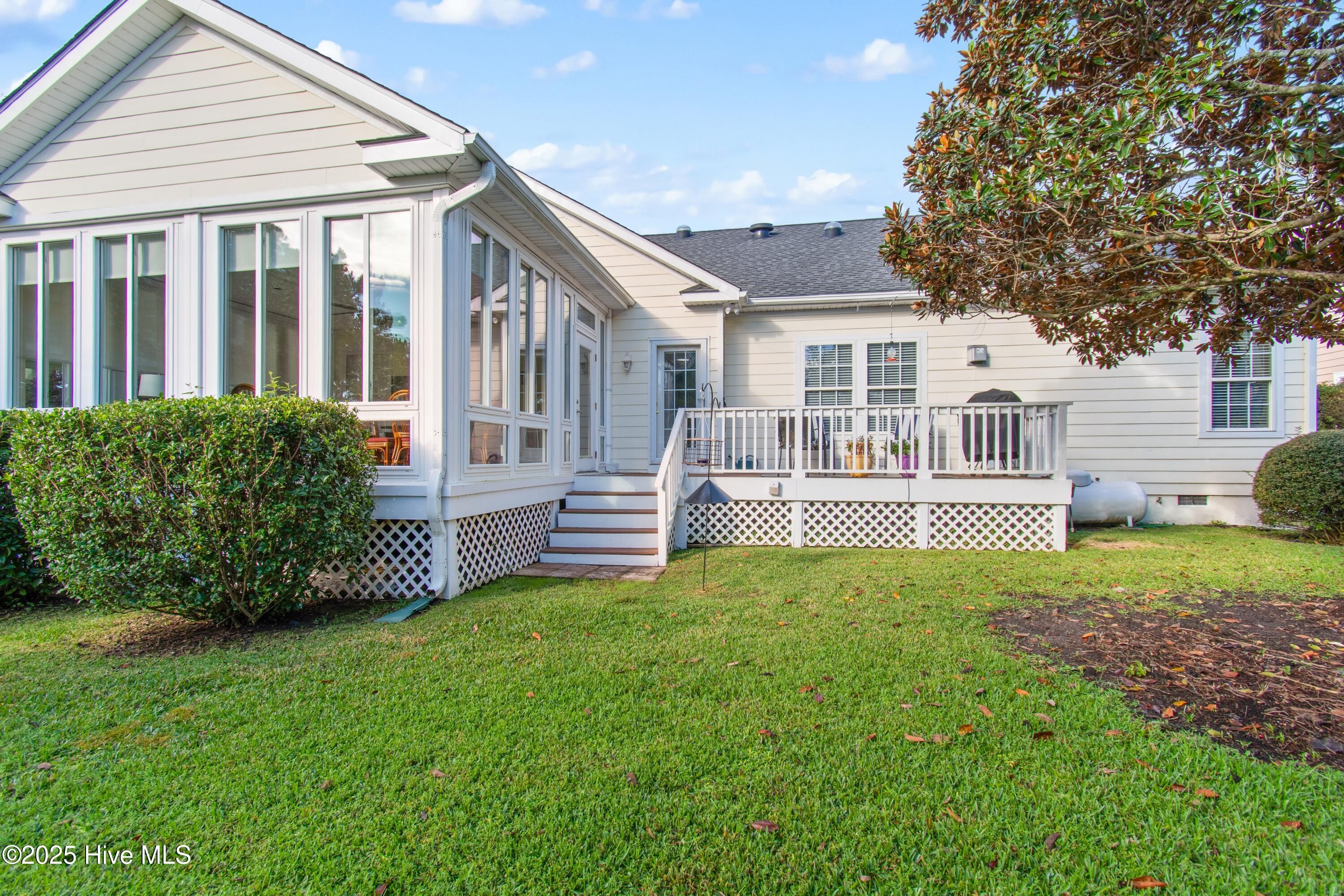 Tis the Season. A MUST SEE all on one level! 4117 Bittern Ct. is a stunning 3-bedroom, 2-bathroom home nestled in the heart of St. James Plantation. This beautiful property boasts an abundance of natural light throughout the entire house, creating a warm and inviting atmosphere. From the moment you approach the welcoming outside and then step inside you will be amazed how such a quaint home can also be very spacious. You'll be greeted with a spacious great room creating an open and airy feel throughout the main living areas. The great room is perfect for entertaining guests or simply relaxing with family, with ample space for comfortable seating and a cozy fireplace to keep you warm on chilly nights. With easy one level living and an open floor plan, this home is perfect for anyone seeking convenience and comfort. The modern kitchen is equipped with stainless steel appliances, granite countertops, tile backsplash, and cabinet storage space for all your culinary needs. The glass enclosed four season sunroom is a true delight where you will want to spend much of your time. It is the perfect place to enjoy morning coffee or relax with a good book while basking in the natural light. You'll love the ambiance of this inviting space! The master suite is a wonderful place to relax with two spacious walk-in closets providing ample storage space for your wardrobe and accessories. The master bathroom is equally impressive, with a large walk-in tiled shower, dual vanity that makes getting ready in the morning a breeze and a very inviting soaking tub. The elegant finishes and fixtures throughout the bathroom create a spa-like atmosphere making you feel like you're on vacation. Two additional bedrooms and bathroom are equally spacious and comfortable, with plenty of natural light and closet space. Outside, the lush landscape creates a serene and peaceful atmosphere that's perfect for relaxing and unwinding after a long day. Whether you're entertaining guests or simply admiring the beauty of the natural surroundings, you'll love spending time in this tranquil and inviting outdoor space. St. James is a waterfront community on the Intracoastal Waterway, close to the historic fishing village of Southport and the beaches of Oak Island. St. James includes 4 distinct clubhouses featuring fine dining, fitness centers, tennis, pickleball, croquet, indoor and outdoor pools. This community is a golfer's paradise with 81 holes of golf! Nature lovers will enjoy the biking and walking trails set against the coastal NC ponds and waterway where you can also fish, boat, kayak and paddleboard to your heart's delight! St. James boasts a full-service marina with 475 wet slips/dry stacks and The Apothecary at St. James, a full-service boutique pharmacy that delivers. After a day on the water, relax at the harbor overlooking the boats and dine at Beacon 315 and Tiki Bar. Don't miss your chance to make this stunning property your forever home and start your new lifestyle today.