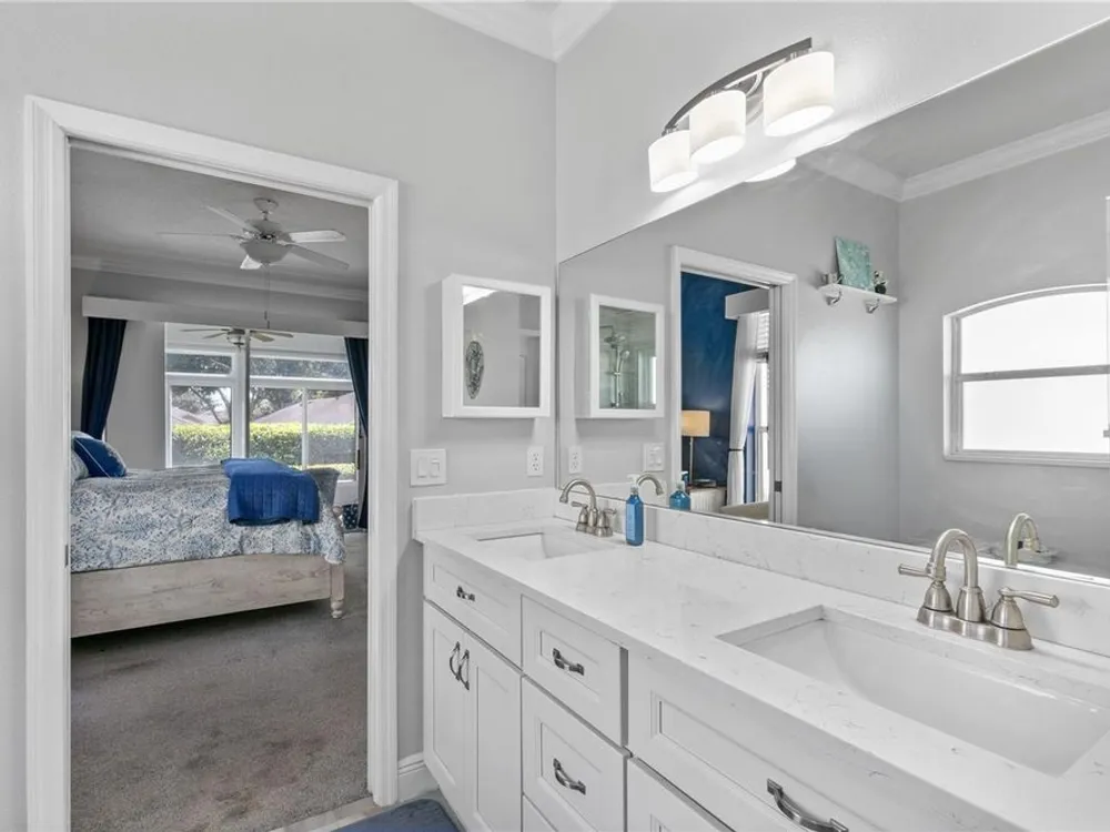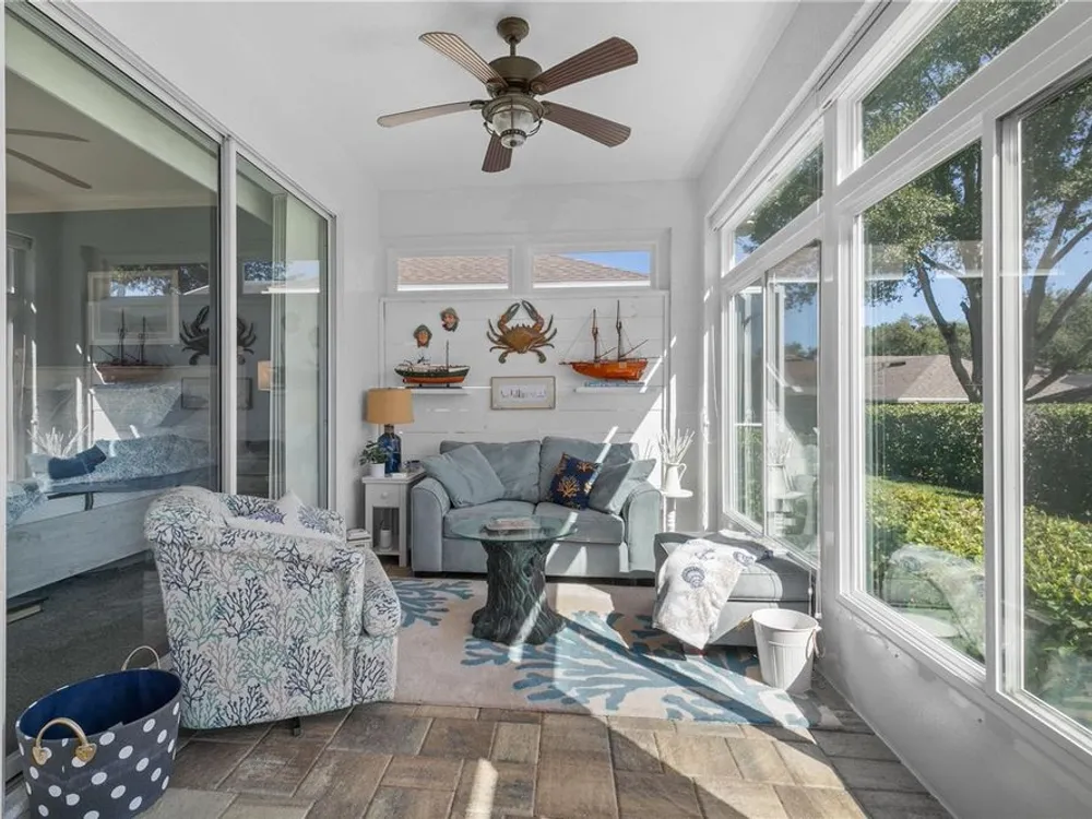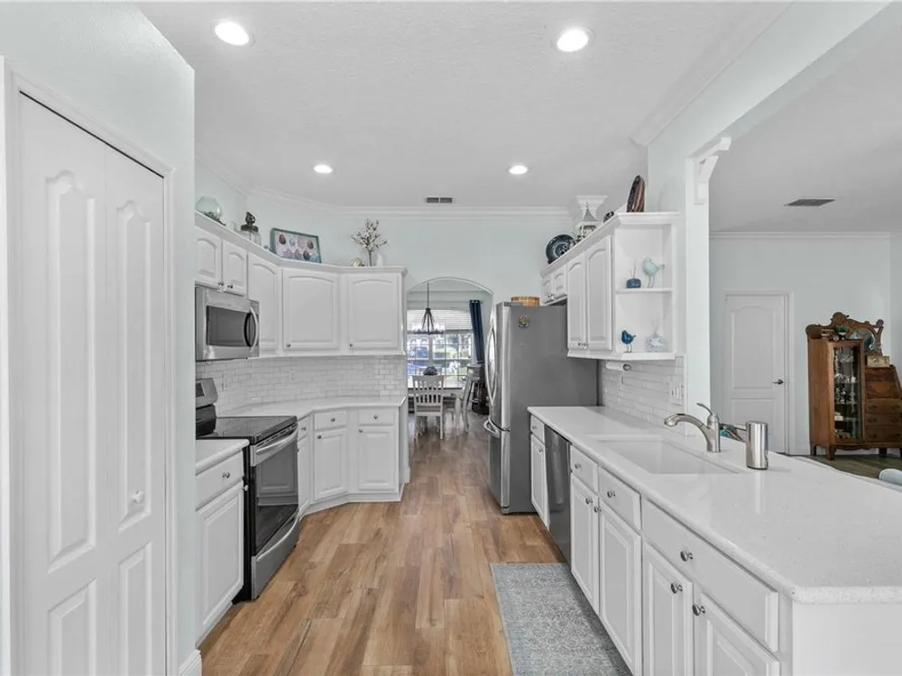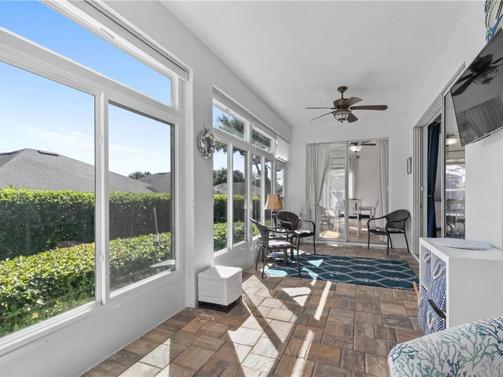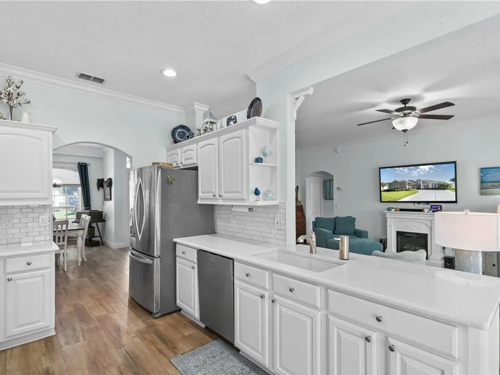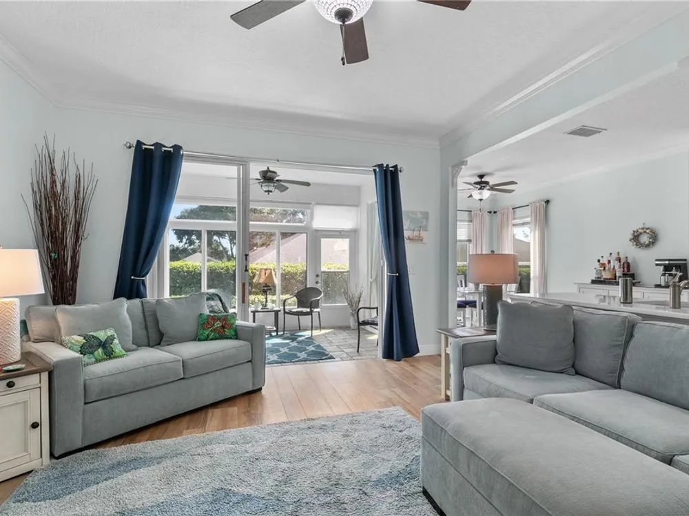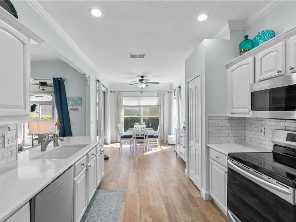 Sought After St. Laurent Model in Kings Ridge 55+ Resort-Style Community! Experience the perfect blend of comfort, style, and active living in this beautifully updated 3-bedroom, 2-bath home located in the desirable, guard-gated Kings Ridge golf community. Both bathrooms have been remodeled to include elegant walk-in showers, with a separate water closet in the primary suite. This home features Crown Moulding throughout, Ceramic Tile Plank Flooring, and Carpeted Bedrooms for added warmth with ample closets and extra storage in garage and attic. The kitchen shines with quartz counters, updated cabinets, and stainless-steel appliances. Relax on your private 27 x 9 lanai with stone/paver flooring, new Double Pane Glass Windows with Custom Pleated Shades, and a tranquil view—where you can even catch a shuttle launch! Additional updates include a New Epoxy driveway (2025) and New hot water tank (2020). The exterior is scheduled for community painting in 2026, giving you the chance to choose your color! Enjoy Kings Ridge’s vibrant lifestyle with Two Golf Courses, Shows, Dances, and Dinners in the Clubhouse Grand Ballroom, plus three pools, saunas, hot tubs, two fitness centers, pickleball, tennis, billiards, art classes, games and more! Golf cart accessible to nearby shopping and dining, this home offers resort-style living at its finest!