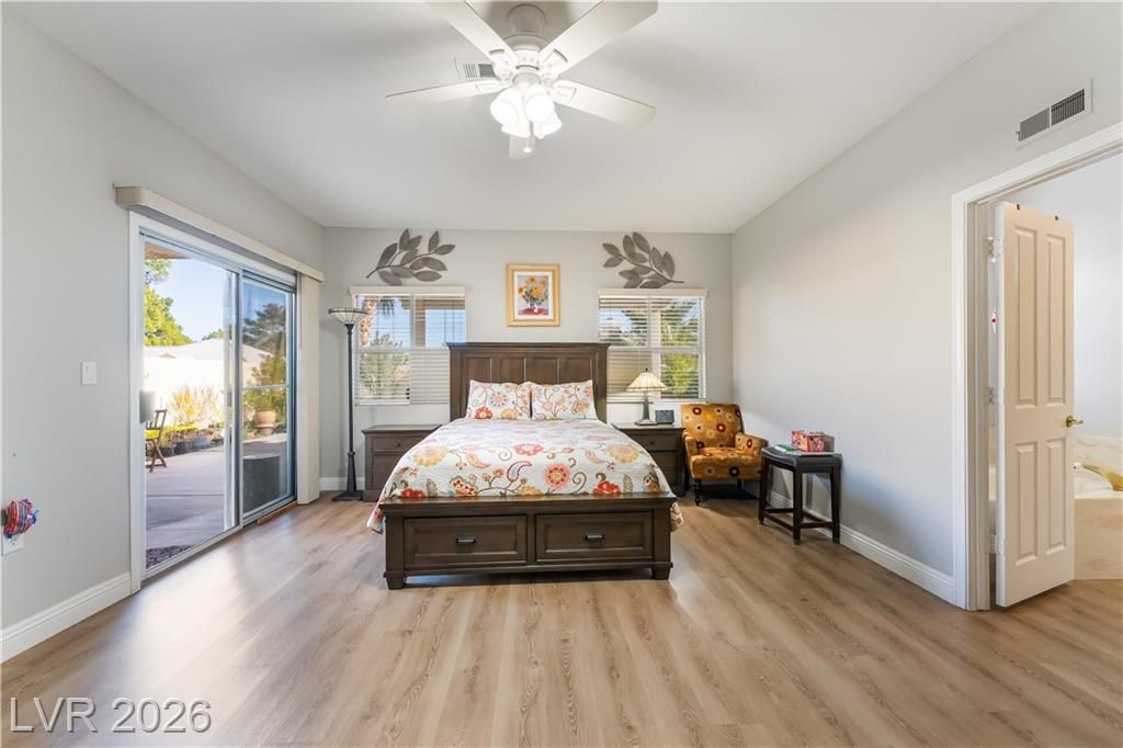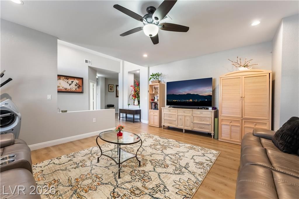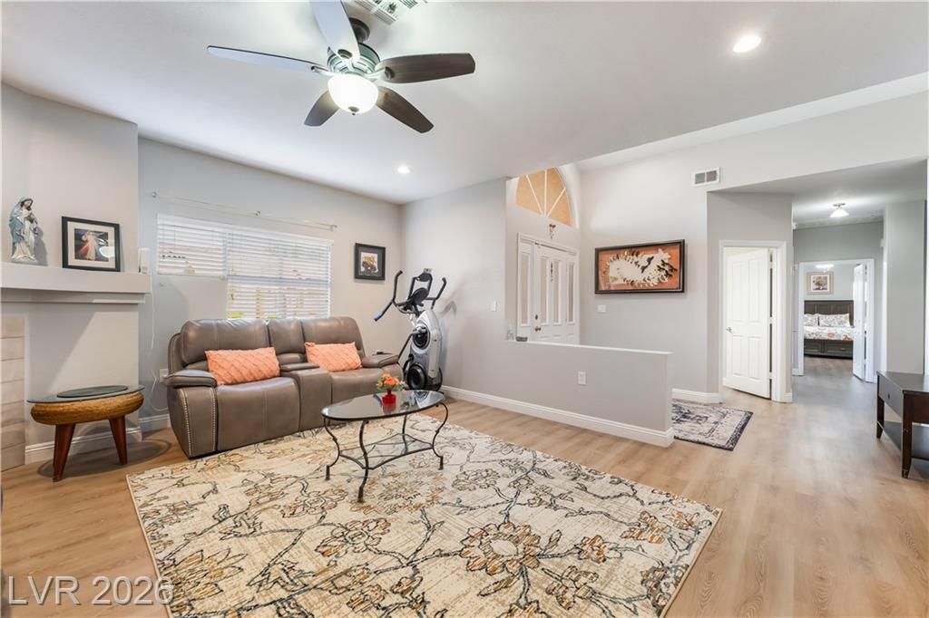 *One of the best and most spacious layouts a single-story townhome could have* Located in the gated Promenade at the Meadows, offering nearly 1,700 sq ft of beautifully updated living. This spacious 2 bed, 2 bath retreat features luxury vinyl flooring, a cozy wood-burning fireplace, and a bright kitchen with granite counters, recessed lighting, and a walk-in pantry. The oversized primary suite includes a large walk-in closet plus separate tub and shower. Enjoy a private covered patio, lush mature landscaping, and an attached 2-car garage. Nestled on a generous 5600+ sq ft lot in a quiet, guard-gated community with a pool, clubhouse, and RV parking, this home blends comfort, security, and convenience in the heart of Las Vegas.