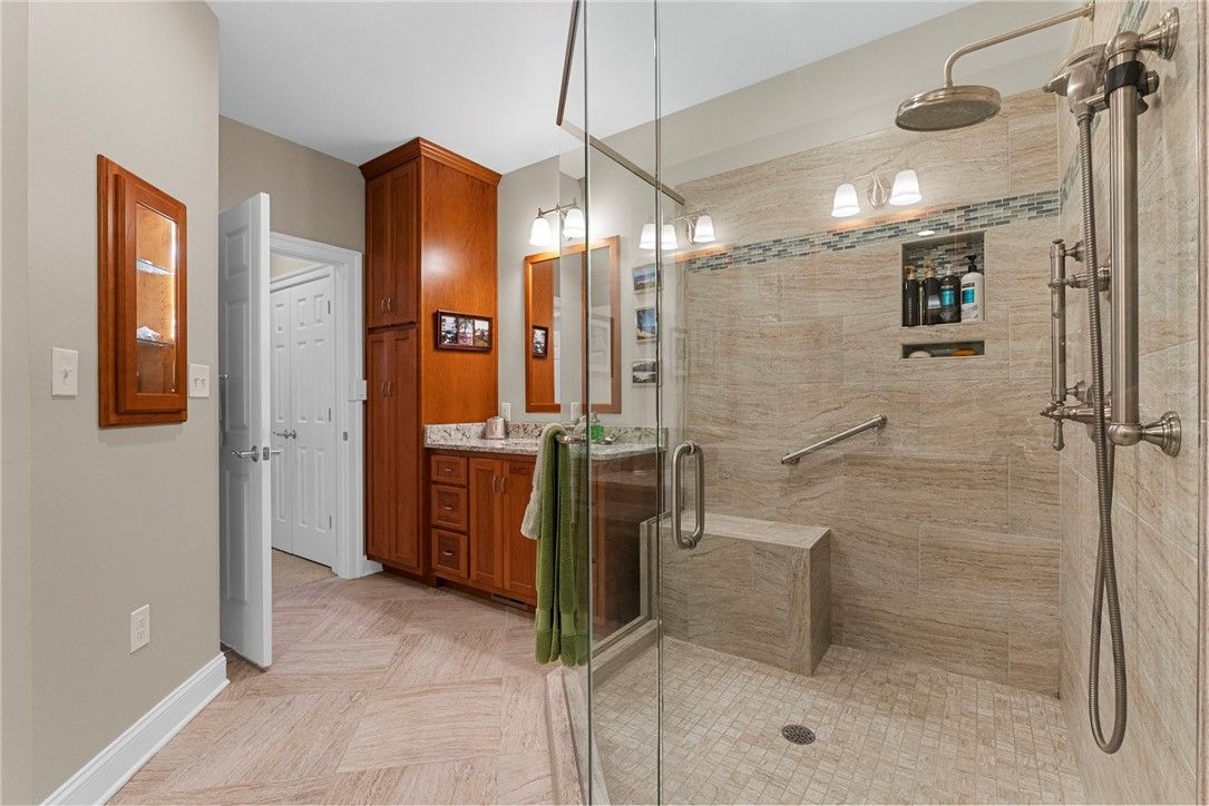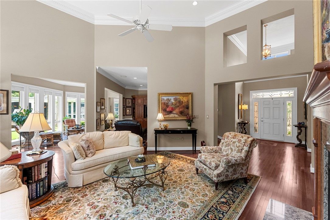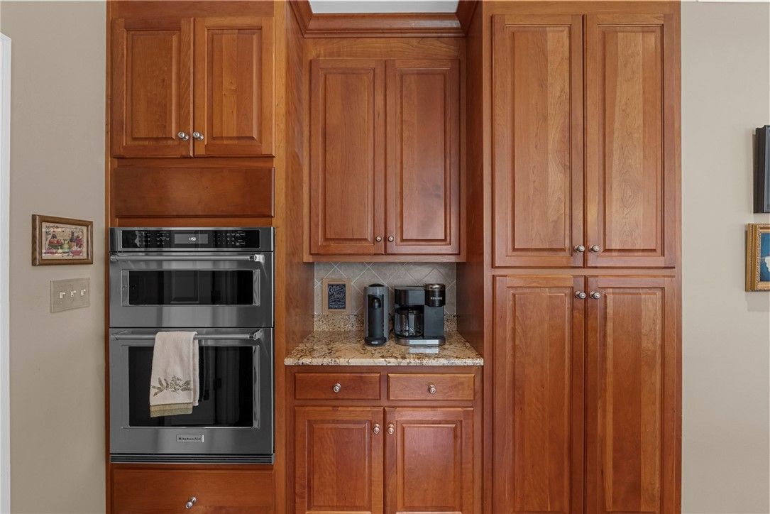 - Attic Access, Beamed Ceilings, Bookcases, Built-in Features, Bay Window, Ceiling Fan(s), Cathedral Ceiling(s), Dining Area, Separate/Formal Dining Room, Double Vanity, Eat-in Kitchen, Granite Counters, High Ceilings, Kitchen Island, Pantry, Recessed Lighting, Solid Surface Counters, Walk-In Closet(s), Window Treatments
