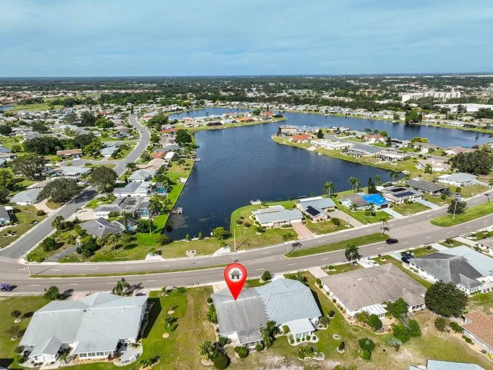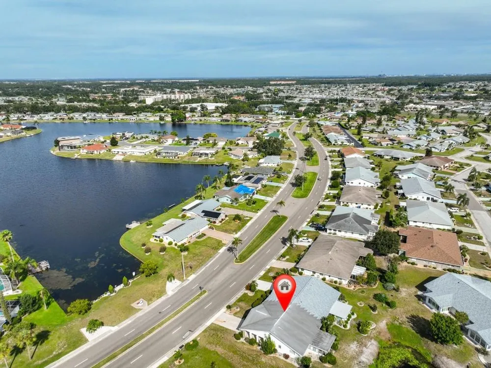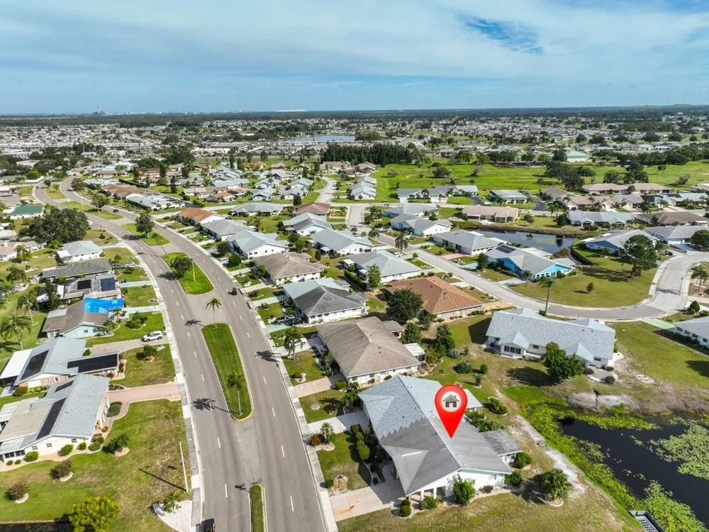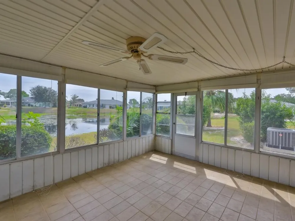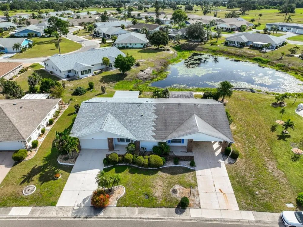 Unique opportunity to have Simmons lake to view out the front picture window and a pond to enjoy from the enclosed Lanai. This Dedham model has CPVC plumbing, A/C installed in 2019 plus new duct work installed in 2018, New electrical panel installed in 2013 and new kitchen ceiling just installed along with new laminate flooring throughout the house. There is also an irrigation pump to water the lawn from the pond. Sun City Center is one of Florida's most affordable and vibrant active-living communities, offering an array of amenities, including three heated pools, a state-of-the-art fitness center, a sports complex, an arts and crafts building, two clubhouses, top-tier medical facilities, shopping, golf courses, and over 150 social and sports clubs all accessible by golf cart! Located conveniently near Tampa, Sarasota, St. Petersburg, Tampa International Airport, world-class beaches, shopping, dining, theaters, and more, Sun City Center is the perfect place to call home. Come have fun under the Florida sun!