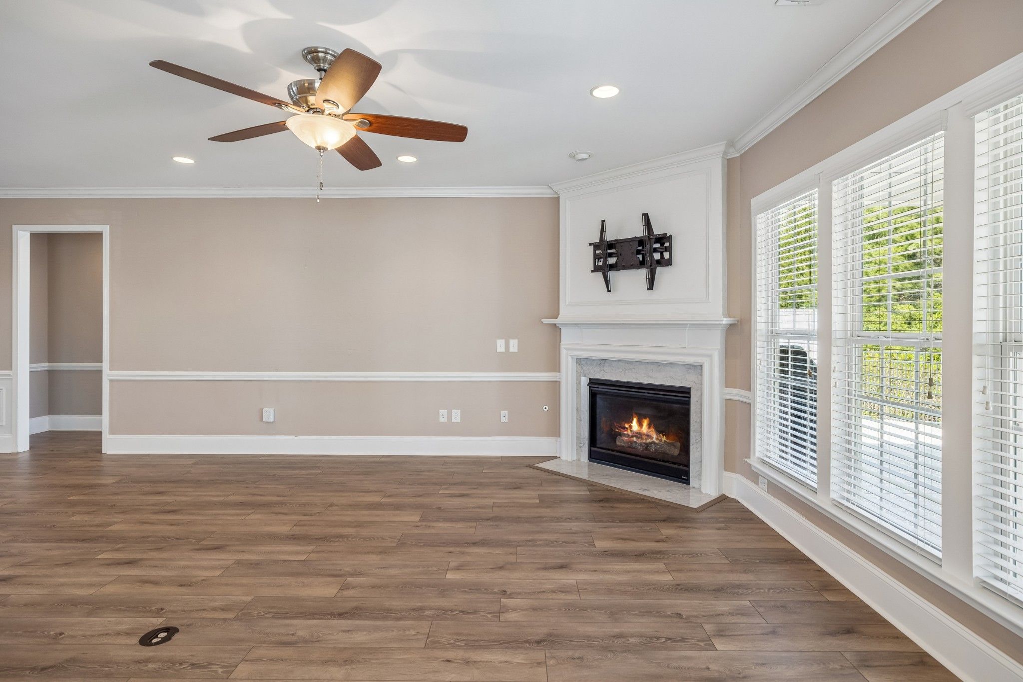 Welcome to effortless one-level living in this beautifully maintained 2,754-square-foot home located in a prestigious 55+ gated community. Nestled on a quiet cul-de-sac, this move-in ready residence offers the perfect blend of comfort, elegance, and low-maintenance living. Inside, you’ll find a spacious open floor plan with zoned bedrooms for added privacy, gorgeous hardwood floors, and abundant natural light throughout. Beautiful office with hardwood floors and french doors off of the foyer. The gourmet kitchen is designed for both everyday living and entertaining, featuring granite countertops, a large center island, tile backsplash, and generous cabinetry. The inviting living area centers around a gas fireplace with marble surround, while a large sunroom offers the perfect space to relax year-round. Built-in hall cabinetry adds both charm and functionality. The primary suite includes a large walk-in shower and well-appointed finishes, while granite countertops continue throughout the home for a cohesive upscale feel. Outdoor living is equally impressive with a fenced backyard, extended patio ideal for grilling, and a covered patio with ceiling fan—perfect for enjoying peaceful mornings or evening gatherings. Additional features include a large two-car garage, utility room with laundry hookups, cabinetry, and mud sink, and thoughtful storage throughout. Residents enjoy exceptional community amenities including a fitness center, pool, tennis and pickleball courts, walking trails, and even paddle boats on the lake—all within the sought-after Lake Providence community. TDS is the internet provider for Del Webb. Within five minutes of Publix, Kroger, medical offices and over 40 shops in Providence Marketplace. 20 minutes to the Nashville International Airport (BNA). This Tennessee luxury home is a must see today!!