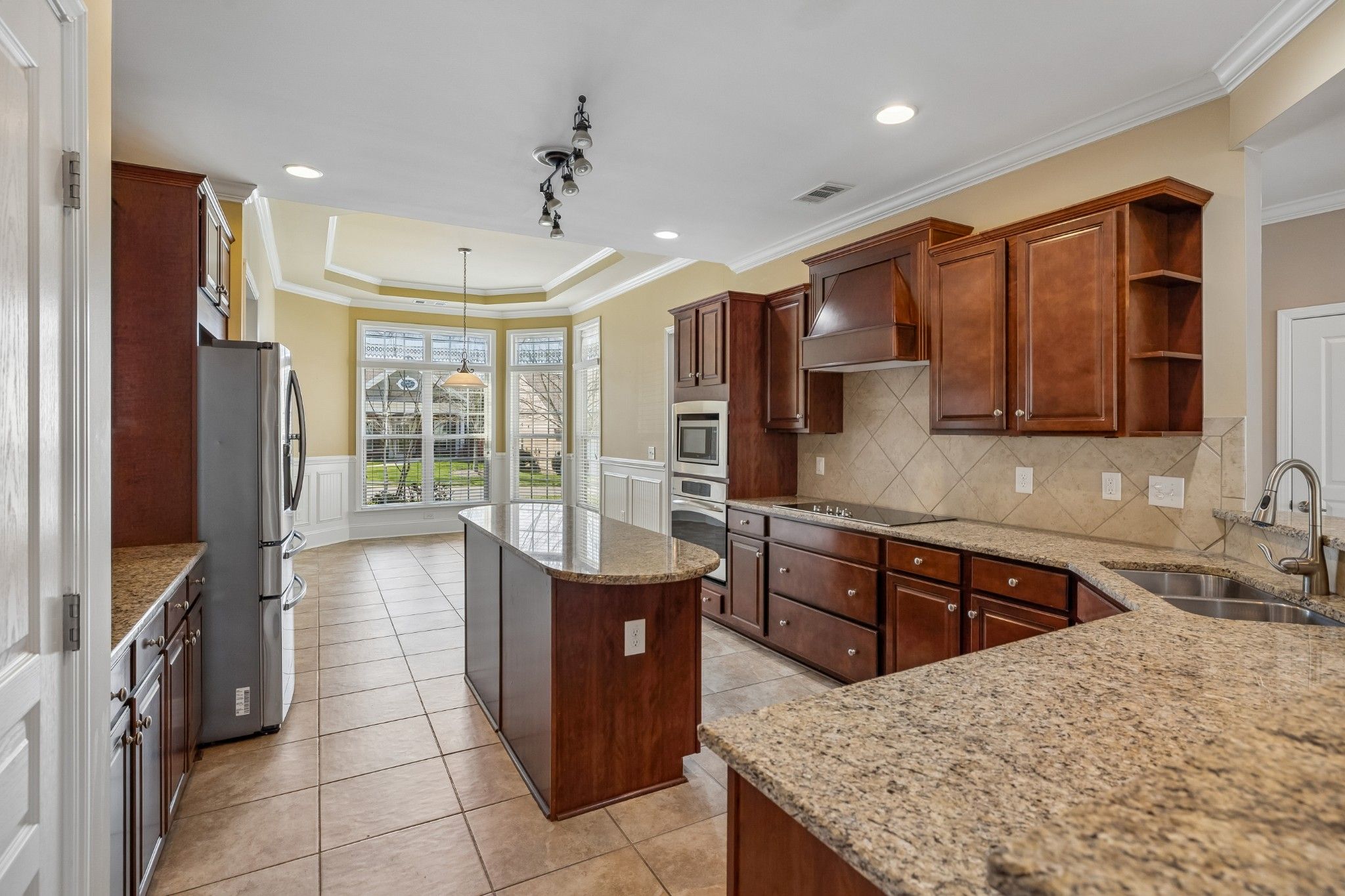 - Built-In Electric Oven, Cooktop, Microwave, Refrigerator