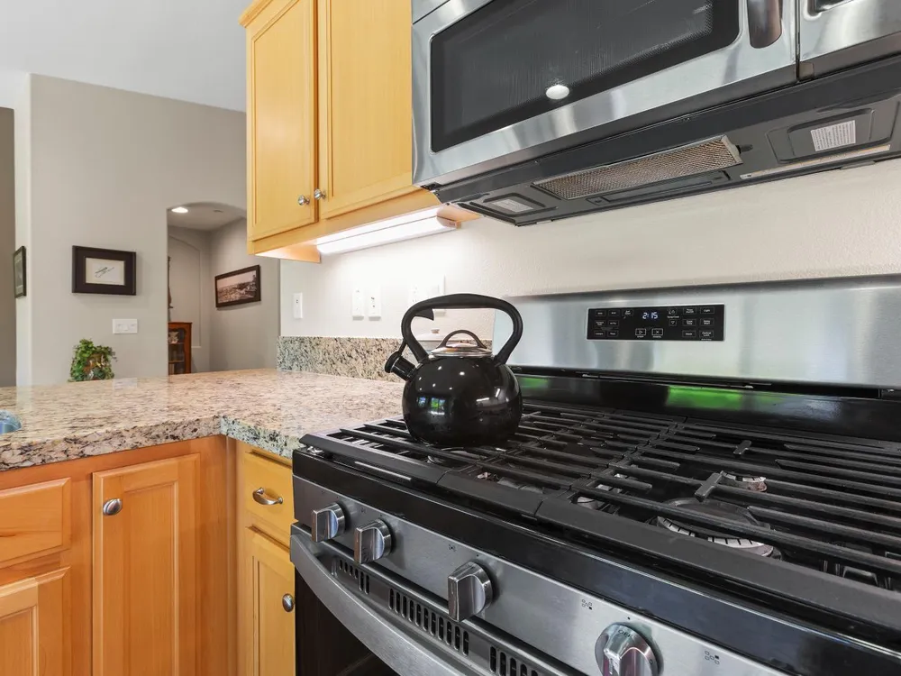 - Dishwasher, Disposal, Free-Standing Gas Range, Free-Standing Refrigerator, Gas Water Heater, Range Hood, Microwave