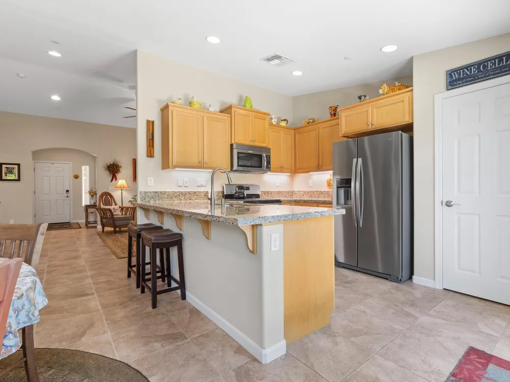 Very popular Pebble Beach style home in Trilogy with many upgrades. This home has 2 bedrooms, 2 baths, den, 2 car garage and Solar! Features include New LED lighting under kitchen cabeints, Newer Hot Water Heater, Referigerator, Stove and Dishwasher, Storage shed on concrete pad, Smart Connect Nest Thermostat, Garage Door Opener and Front Door lock. Water Softener with car wash valve, Car Plug In in garage. Solar is free until 2033.
