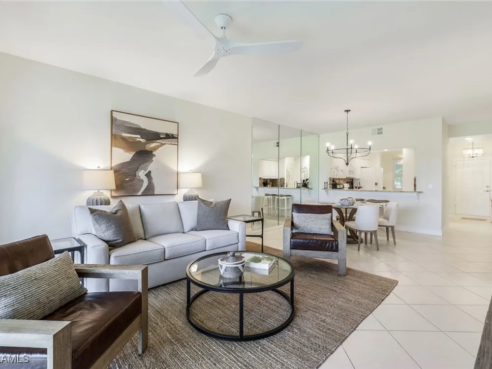 Experience unparalleled views of the best of Bonita Bay from this first floor condominium within the exclusive community of Greenbriar. This three-bedroom, two-bathroom “turnkey” home boasts numerous upgrades and updates, ample sunlight, and breathtaking views of the Bay Island golf course, the wetlands, and the seabirds that call it home. The spacious lanai offers unmatched sunsets over the northwestern sky. High-impact resistant and energy efficient windows were installed in 2024 Conveniently located, you have your own garage beneath the building, private and protected from the elements. Greenbriar residents enjoy exclusive access to a large community pool and spa, as well as two tennis courts. The newly constructed pavilion/pool house features a 75-inch television, high-end tile and granite, and a beckoning perfectly heated pool to enjoy throughout the year. Bonita Bay offers a private beach park for all residents, a full marina with gulf access, boat storage both inside and outside, Backwater Jacks Restaurant, over 12.5 miles of walking and biking paths, and a variety of community activities. The Bonita Bay Club, member-owned, provides access to five golf courses, 18 tennis courts, 10 pickleball courts, restaurants, a spa and salon, a state-of-the-art fitness center, a resort-style swimming pool, and social activities. The Bonita Bay Club offers some of the finest amenities in Southwest Florida, with memberships available but not mandatory. This home is truly a paradise.