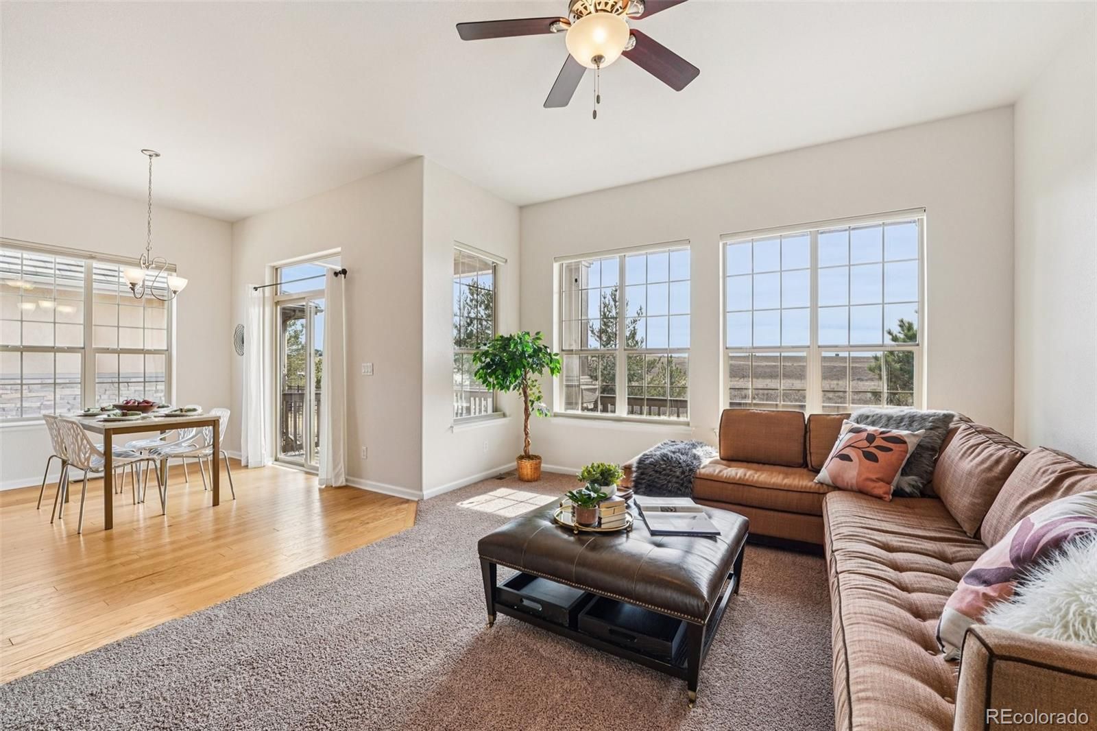 Check out this welcoming lifestyle community patio home at Anthem Ranch, the ultimate 55+ resort-style community! 2 beds/2 baths/2-car attached garage. This home is in such a great/peaceful setting - backs to open space, overlooking E-470 and has EXPANSIVE VIEWS of the Front Range. Enjoy the Colorado skies with no neighbors looking back at you on the covered back patio/deck! With fresh paint throughout, this home is move-in ready. The open floor plan allows the whole family to gather around the big island in the kitchen and lounge in the spacious family room to enjoy game night, cocktails, or just hanging with friends & family. There is also more space to gather in the flex room that is currently set up as a dining room. It would also be a great craft room or home office - TONS of flexibility! The generous primary suite will be your peaceful retreat at the end of the night, read a book, or catch up on your favorite Netflix show. You also get your own private ensuite bath & a large walk-in closet. The 2nd bed is great for guests - private, spacious; their own spot to relax. The full bath is right next door, perfect for guests visiting. The laundry/mud room is tucked away & comes with the washer & dryer. You’ll never be bored in Anthem Ranch - the clubhouse/community/rec center is stacked with upscale amenities like the indoor/outdoor pools, a walking track, fitness center, library, art & dance studios, outdoor bocce ball, pickleball, tennis courts, and even more surprises. Access to E-470, Boulder, restaurants, golf, and Downtown Lafayette is minutes away. All this and so much more to discover, you will want to experience it in person!