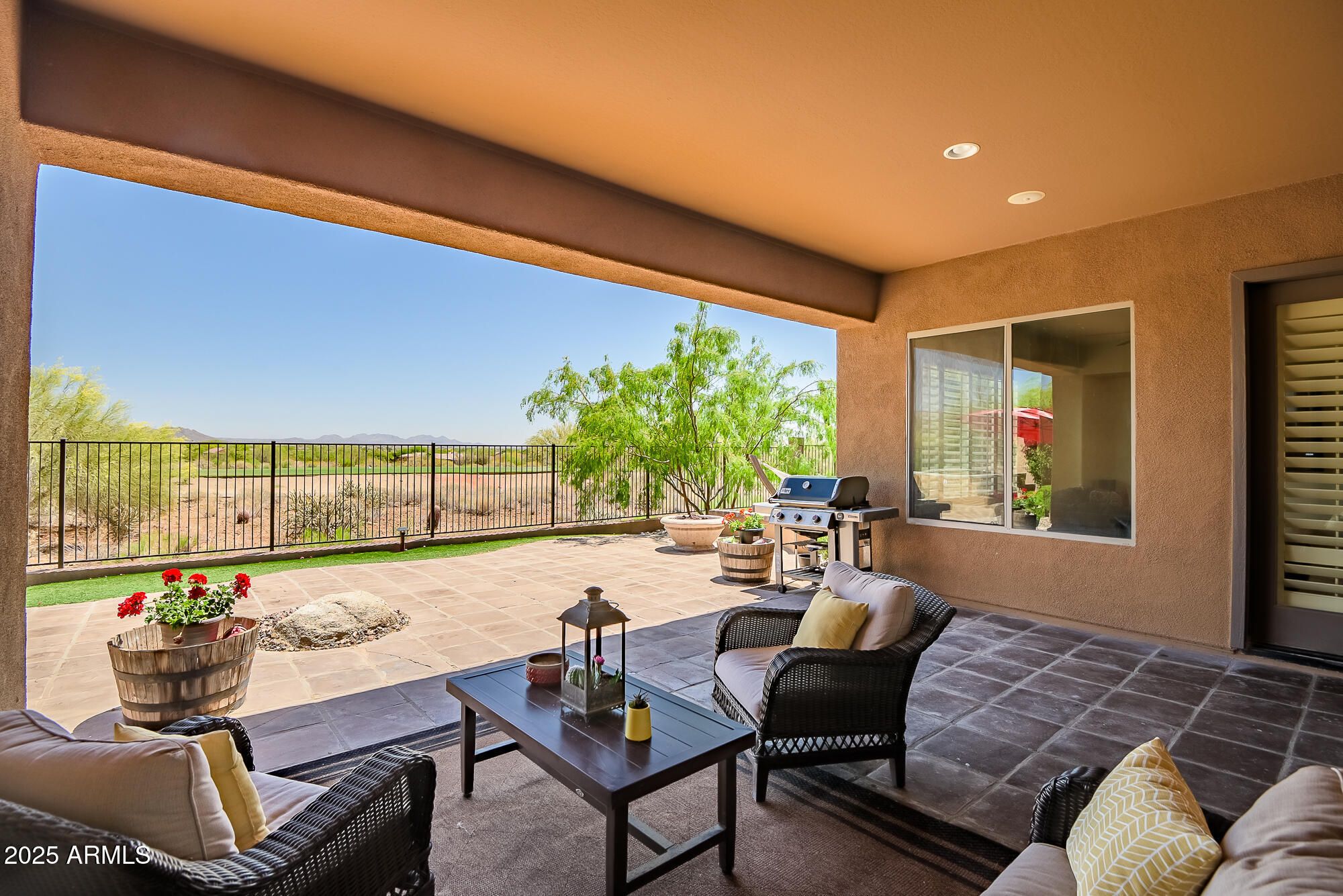 Magnificent VIEW! This HOME offers a luxurious living experience with its stunning golf course and mountain view. As you pass through the iron gate, you'll be welcomed by a charming courtyard, providing a private entrance to the casita. Once you step inside the HOME, you will immediately fall in Love with the impressive view that you can experience throughout the home. Imagine unwinding in the hot tub, savoring the tranquil evenings while the city lights twinkle in the distance. The Tacoma model, complete with a casita, provides ample space to customize and make your own. The kitchen is a chef's dream, bathed in natural light featuring a skylight, abundant storage, elegant granite countertops, stainless steel appliances, and two convenient pantries. The spacious family room is perfect for gatherings, and the interior is adorned with shutters. Large covered patio adds another wonderful living space. Wonderful HOME to create lasting memories for years to come! Experience exceptional living in Anthem Country Club! Anthem Country Club is a private, gated club community offering 36 holes of Championship Golf, Tennis and Pickle Ball courts, 2 Fitness Clubs, 2 pools and 2 restaurants and clubhouses. Appreciate Resort Style Living!