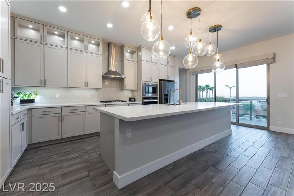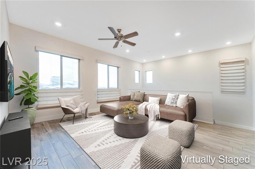 VIEWS VIEWS VIEWS! REDUCED OVER $100,000! $90,000 lot upgrade! Discover luxury in this 2023-built corner unit, the most private home in the prestigious guard-gated Trilogy 55+ community. Enjoy Vegas Strip views from your private balcony and Red Rock vistas from the bedroom. As the largest floor plan, this 3-bed, 4-bath home features a private elevator, expansive entertaining spaces, automatic custom blinds, water filtration, tankless water heater, and a stunning 14-foot kitchen island with custom finishes. The downstairs next-gen suite includes a living area, bedroom, full bath, and wet bar—perfect for guests or multi-gen living. Upstairs, the primary suite impresses with a custom closet and spa-like bath, alongside an additional guest suite. Residents enjoy access to the Outlook Club's social, culinary, and fitness amenities, including a dog park, pool, pickleball, Zen garden & more. Just minutes from Downtown Summerlin and Red Rock Resort—this is elevated living at its finest.