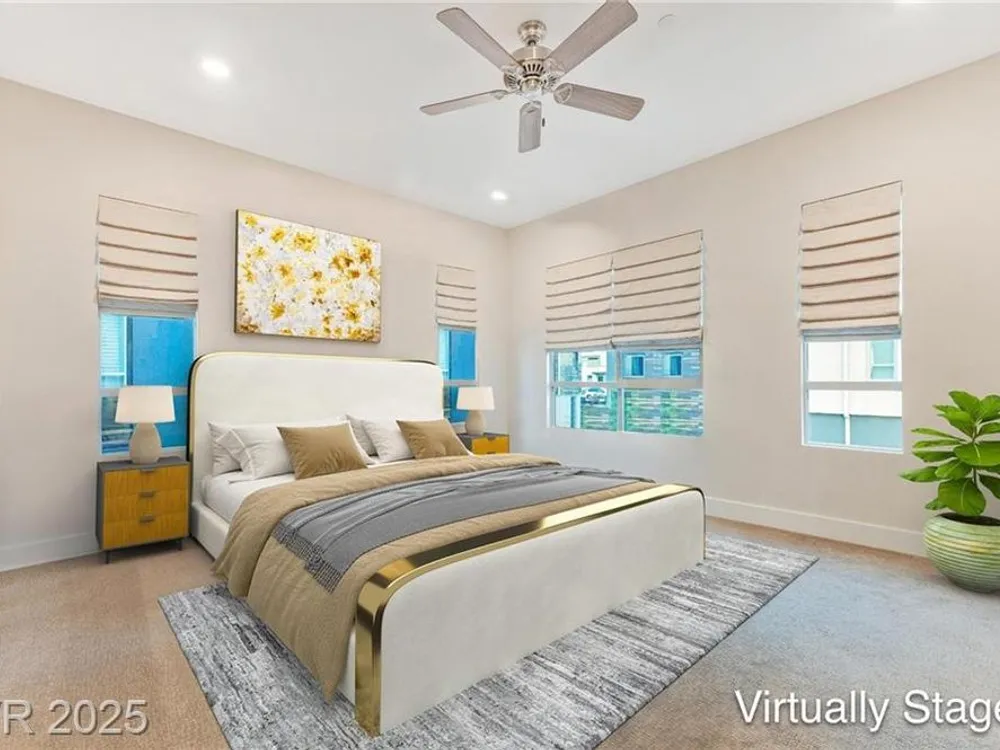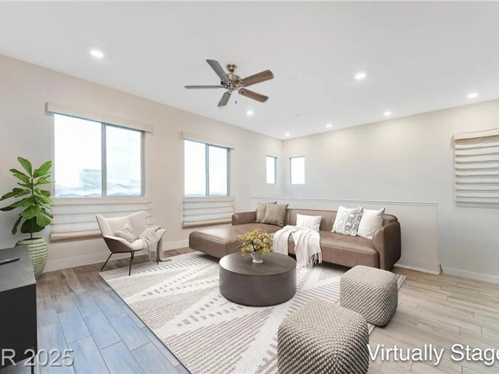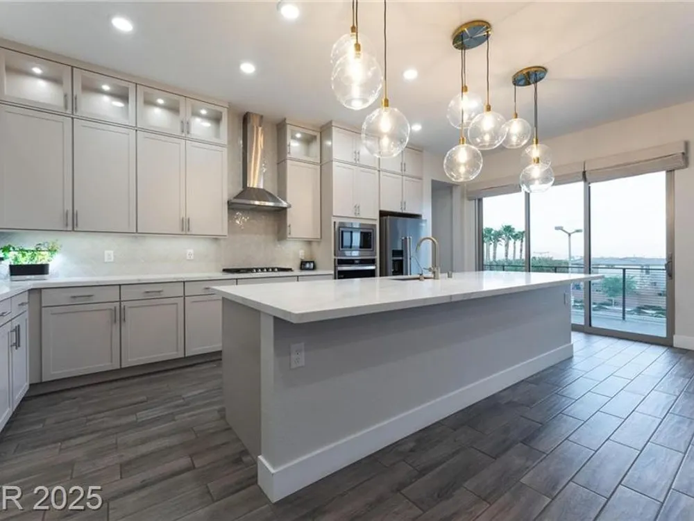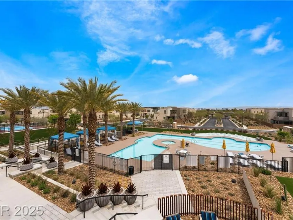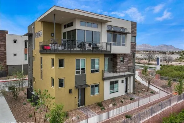 VIEWS VIEWS VIEWS! REDUCED OVER $100,000! Discover unmatched luxury in this 2023-built corner unit, the most private home in the prestigious guard-gated Trilogy 55+ community. Enjoy Vegas Strip views from your private balcony and Red Rock vistas from the bedroom. As the largest floor plan in the community, this 3-bed, 4-bath home features a private elevator, expansive entertaining spaces, automatic custom blinds, water filtration, tankless water heater, and a stunning 14-foot kitchen island with custom finishes. The downstairs next-gen suite includes a living area, bedroom, full bath, and wet bar—perfect for guests or multi-gen living. Upstairs, the primary suite impresses with a custom closet and spa-like bath, alongside an additional guest suite. Residents enjoy access to the Outlook Club's social, culinary, and fitness amenities, including a dog park, pool, pickleball, Zen garden & more. Just minutes from Downtown Summerlin and Red Rock Resort—this is elevated living at its finest.