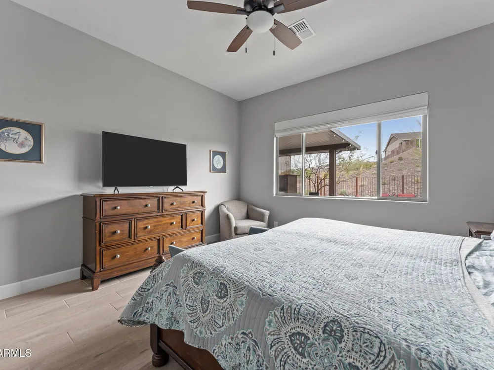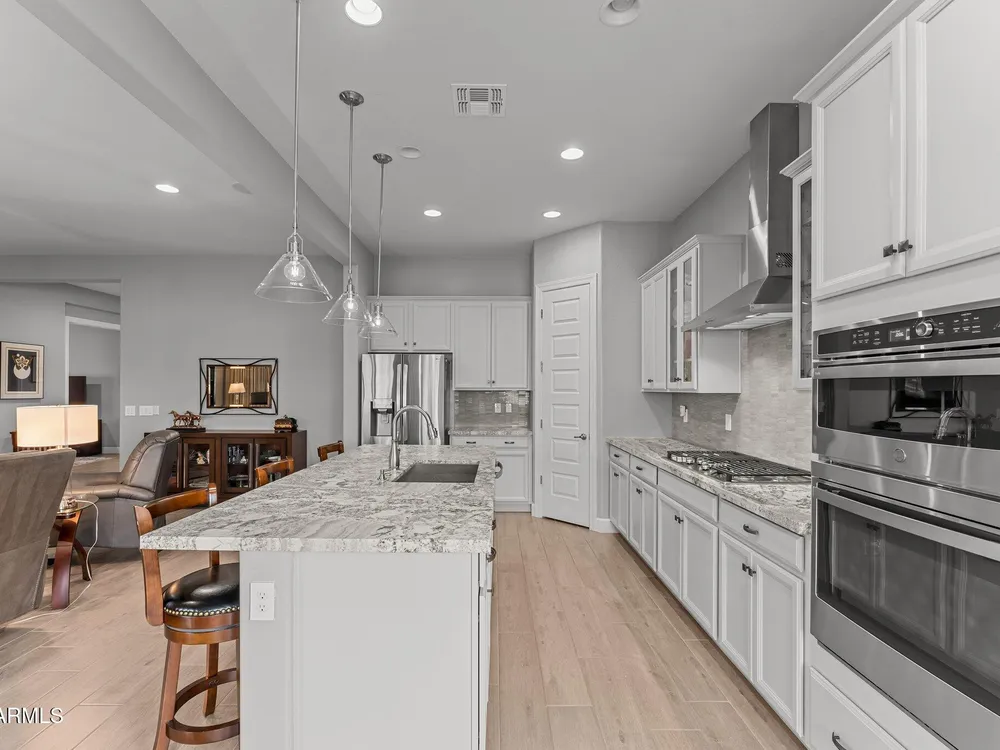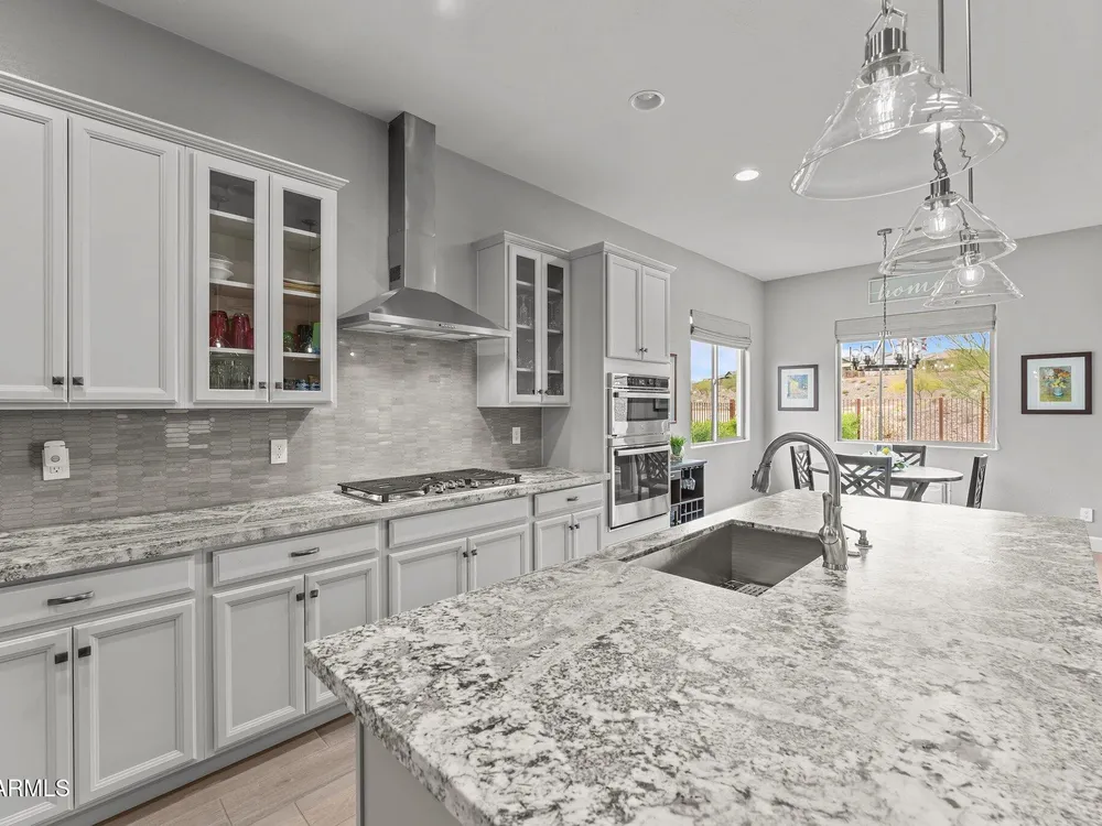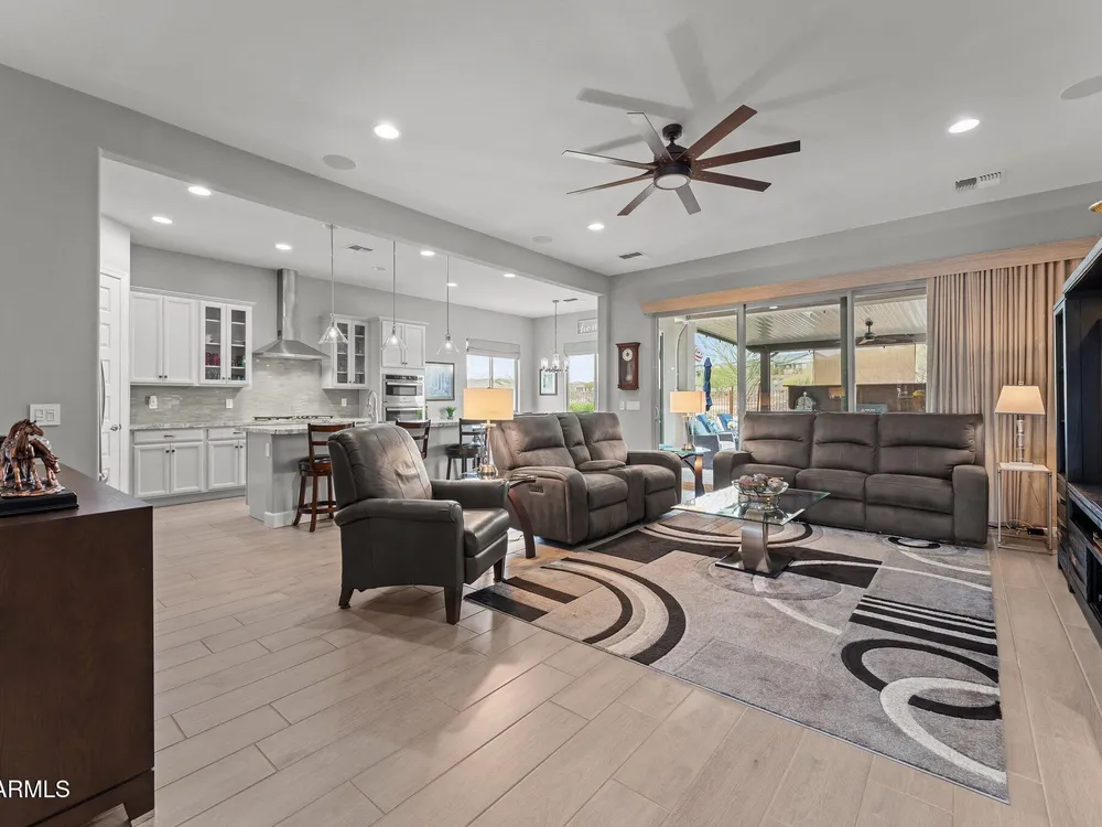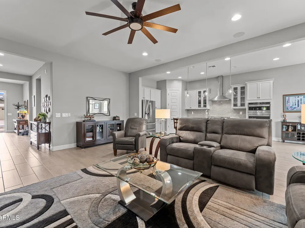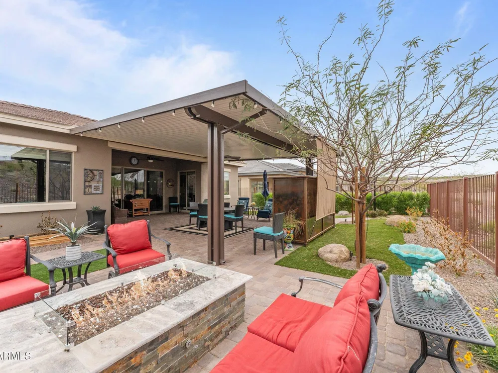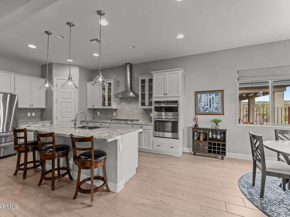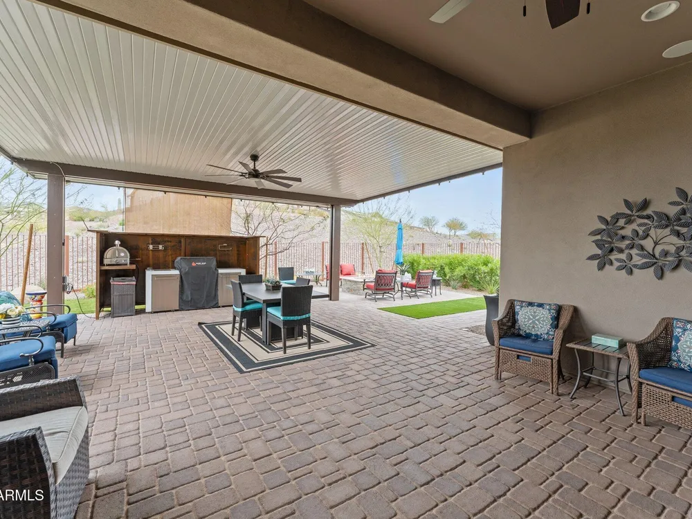Experience resort-style living in this stunning Hotel California floor plan, perfectly situated in the highly sought-after Wickenburg Ranch community. This beautifully designed 2-bed, 2-bath home features an open-concept layout with 10' ceilings, creating a bright and airy feel throughout. The gourmet kitchen is a chef's dream, boasting premium upgrades, an oversized island, and ample storage. A split floor plan offers privacy, while the expansive climate controlled 3-car garage provides plenty of space for vehicles, golf carts, or extra storage. Step outside to the paved backyard oasis, where a large covered patio, fire pit, and covered BBQ area invite you to relax and entertain. Additionally, this home backs to a peaceful natural common area, offering added privacy and a serene backdrop for your outdoor retreat. The oversized laundry room adds functionality, making this home as practical as it is beautiful. Don't miss the chance to own a slice of luxury in this premier community!