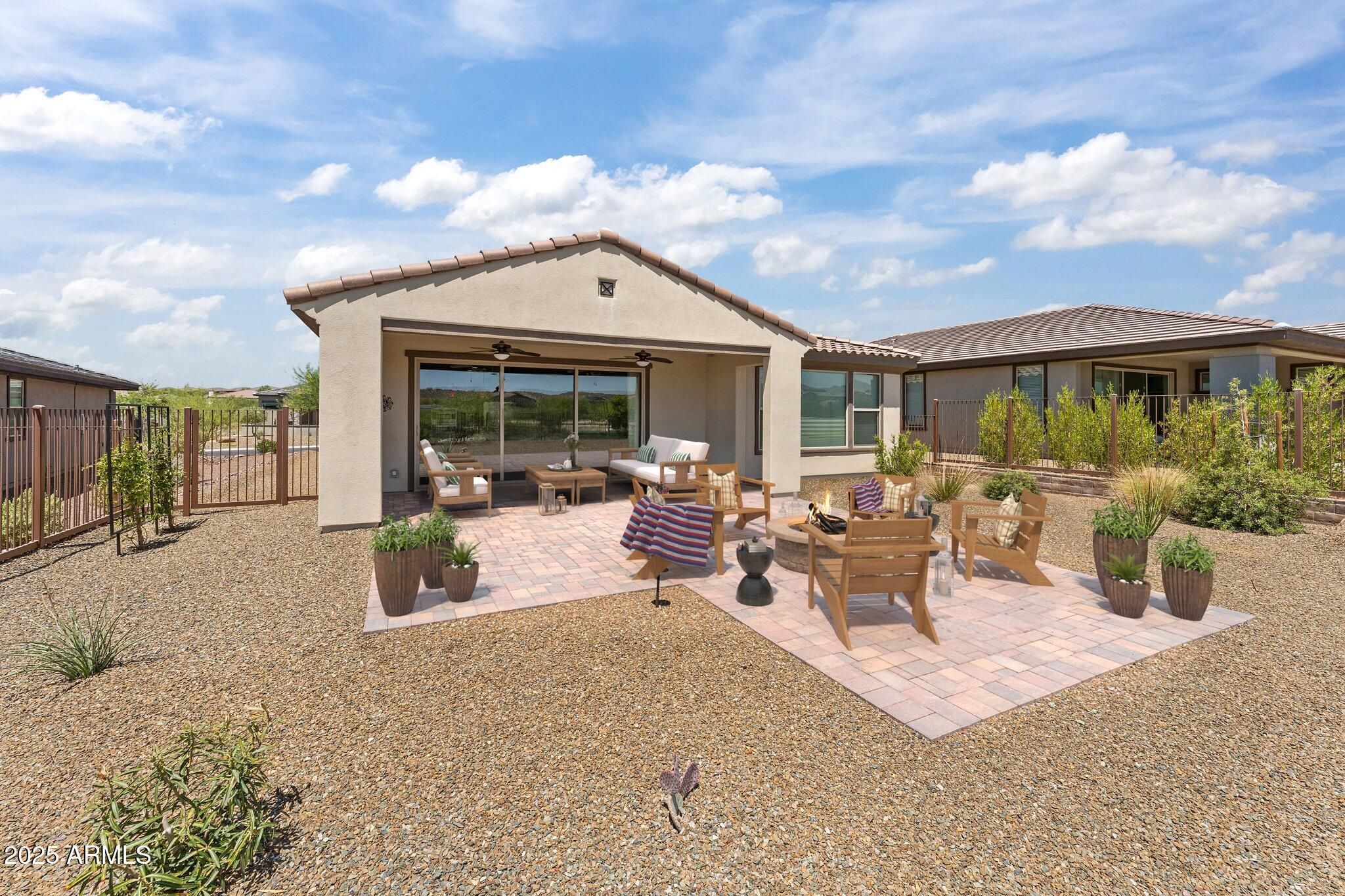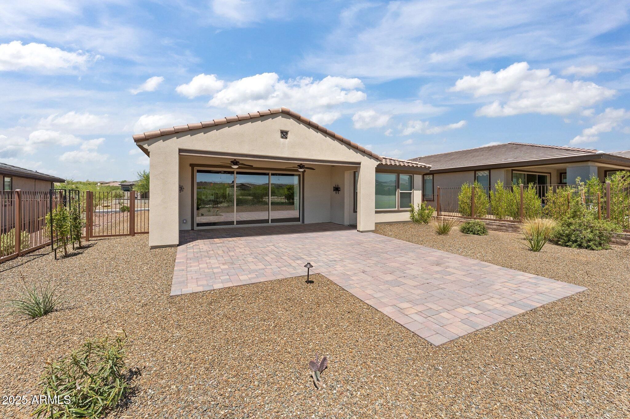 Located in the picturesque Wickenburg Ranch community, this charming home boasts an array of desirable features perfect for modern living. Upon entering, you're greeted by a spacious covered porch, ideal for enjoying the serene surroundings. The heart of the home is its beautiful kitchen, complete with a large island that provides ample space for cooking and entertaining. Natural light floods the open living space thanks to a large wall of sliding glass doors, seamlessly blending the indoor and outdoor areas. Step outside onto the extended covered back patio, where you can unwind and dine al fresco while taking in views of the mountains in the east facing, fully fenced backyard. This thoughtfully designed home offers 2bed, 2 baths, and a large den/office. The home provides comfortable accommodations for both residents and guests. Additionally, a two-car extended garage provides convenient parking and storage space. Whether you're relaxing indoors or enjoying the outdoor amenities, this Wickenburg Ranch home offers the perfect blend of comfort and style in a breathtaking desert setting.