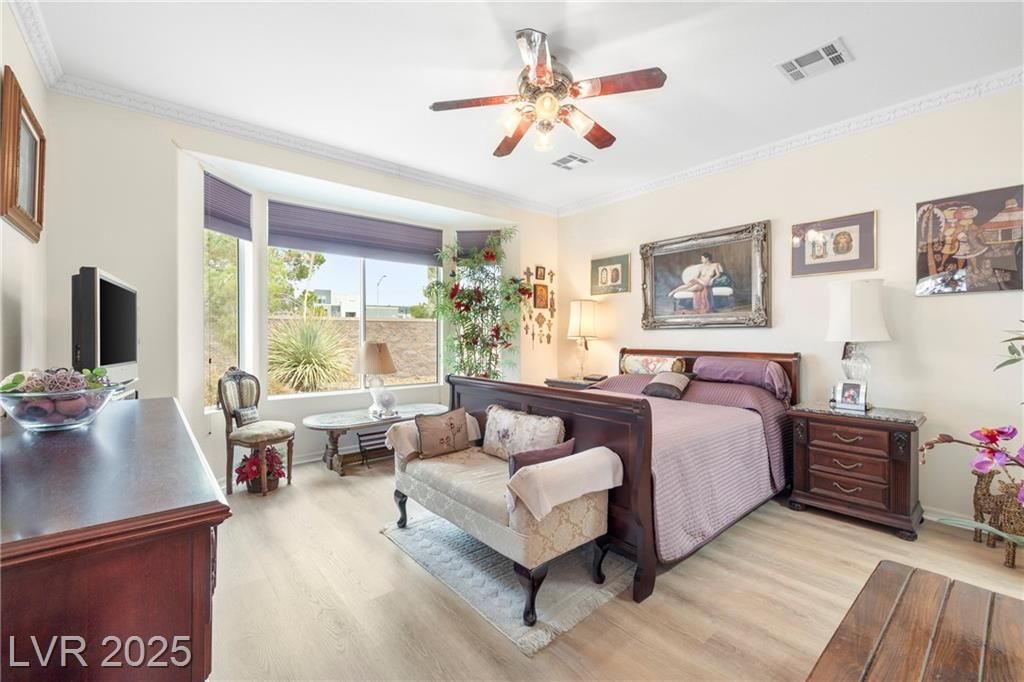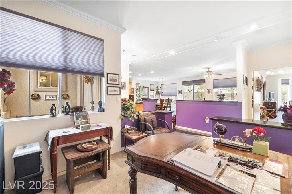 Welcome to an exceptional opportunity in the prestigious, age-restricted golf course community of Siena in Summerlin. Nestled on an expansive 15,000+ square foot lot, this beautifully appointed single-story residence offers privacy & resort-style living in one of Las Vegas' most sought-after 55+ communities. From the moment you arrive, you're greeted by a charming courtyard entrance. Step inside to a thoughtfully designed floor plan featuring bright open living spaces & large picture windows that frame serene backyard views. The gourmet kitchen is a chef’s delight complete with granite counters, rich cabinetry, a breakfast bar & breakfast & a spacious great room ideal for entertaining or relaxed everyday living. Primary suite boasts a spa-like bath and walk-in closet. Siena residents enjoy access to championship golf course, a 38,000-square-foot clubhouse with indoor & outdoor pools, fitness center, tennis and pickleball courts, & a full calendar of social activities & events.