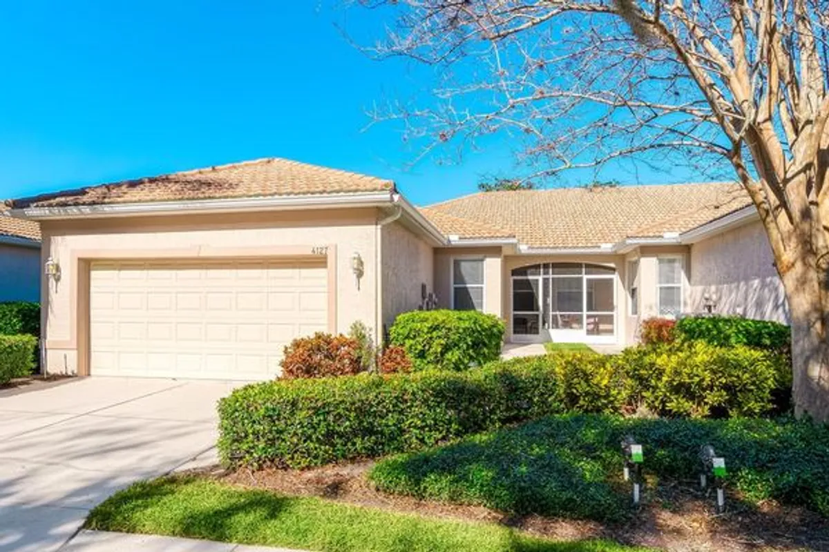 Welcome to an exceptional opportunity in the highly desirable Lakeridge Falls community — an active 55+ gated neighborhood just north of University Parkway offering maintenance-free living and outstanding resort-style amenities. This beautifully maintained move-in ready lakefront villa welcomes you with stunning water views from the moment you enter, creating a serene and inviting backdrop for everyday living. Designed for comfort and ease, the residence features two bedrooms, a versatile den, two baths, an interior laundry room, and a two-car garage. The open, light-filled floor plan flows seamlessly to a screened lanai overlooking tranquil lake views, perfect for morning coffee, evening relaxation, or entertaining guests. Truly move-in ready, this home has been meticulously cared for and thoughtfully updated, including stainless steel appliances (2019), updated primary and guest baths, HVAC system (2023), refaced kitchen cabinetry with new hardware, soft-close drawers and doors, under-cabinet lighting, luxury vinyl flooring in the den, and a painted garage floor with new garage door opener (2024). Lakeridge Falls residents enjoy an exceptional lifestyle with access to an updated clubhouse, fitness center, heated resort-style pool and spa, bocce courts, card and billiards rooms, library spaces, scenic lakeside walking paths, and a full calendar of social activities. Lush tropical landscaping, a 24-hour gated entry, and a prime Sarasota location close to I75, SRQ Airport, shopping, dining, medical facilities, cultural venues, and award-winning Gulf beaches complete the offering. This is a rare opportunity to embrace an elevated Florida lifestyle where simplicity, casual elegance, and leisure come together effortlessly. Schedule your private showing today — this one truly should not be missed.