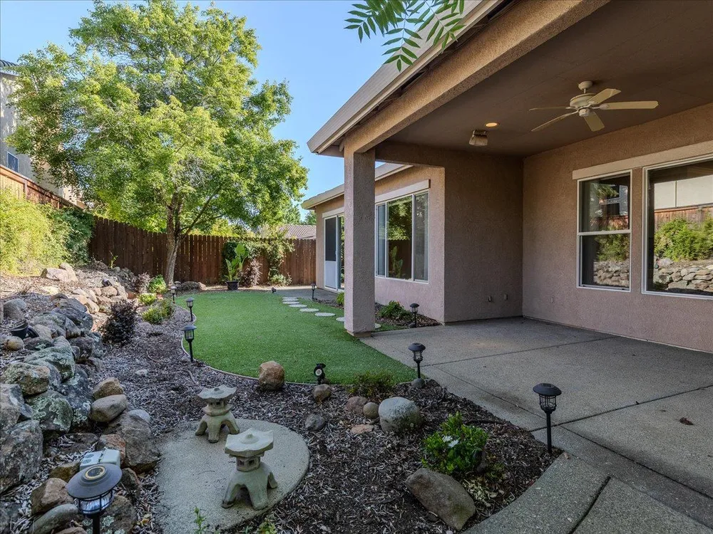 Springfield at Whitney Oaks! This home is nestled in a quiet residential gated neighborhood with well kept homes. The neighborhood supports an active lifestyle with nearby golf courses, walking paths, and community activities. This rare 3bed 3bath single story home boasts an expansive Great Room with a chefs kitchen with granite countertops and large island. Owners suite opens to the charming backyard. There is also a secondary office/bedroom with its very own full bath. Laundry is a breeze in the spacious laundry room with utility sink opening to the oversized 2.5 car garage. Springfield has the best amenities: Pools, Pickleball, Fitness, Tennis, Parks, and year round social activities. Gated community and front yard is maintained by HOA!