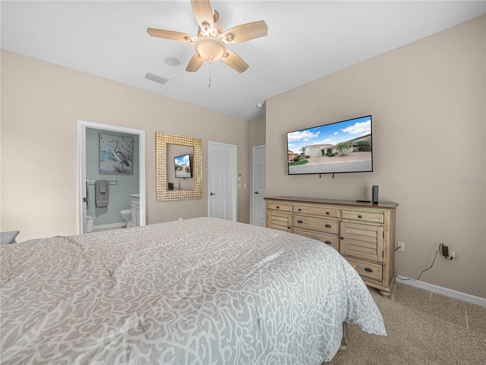 - Ceiling Fan(s), Crown Molding, Eat-in Kitchen, Living/Dining Room, Main Level Primary, Solid-Wood Cabinets, Walk-In Closet(s), Window Treatments