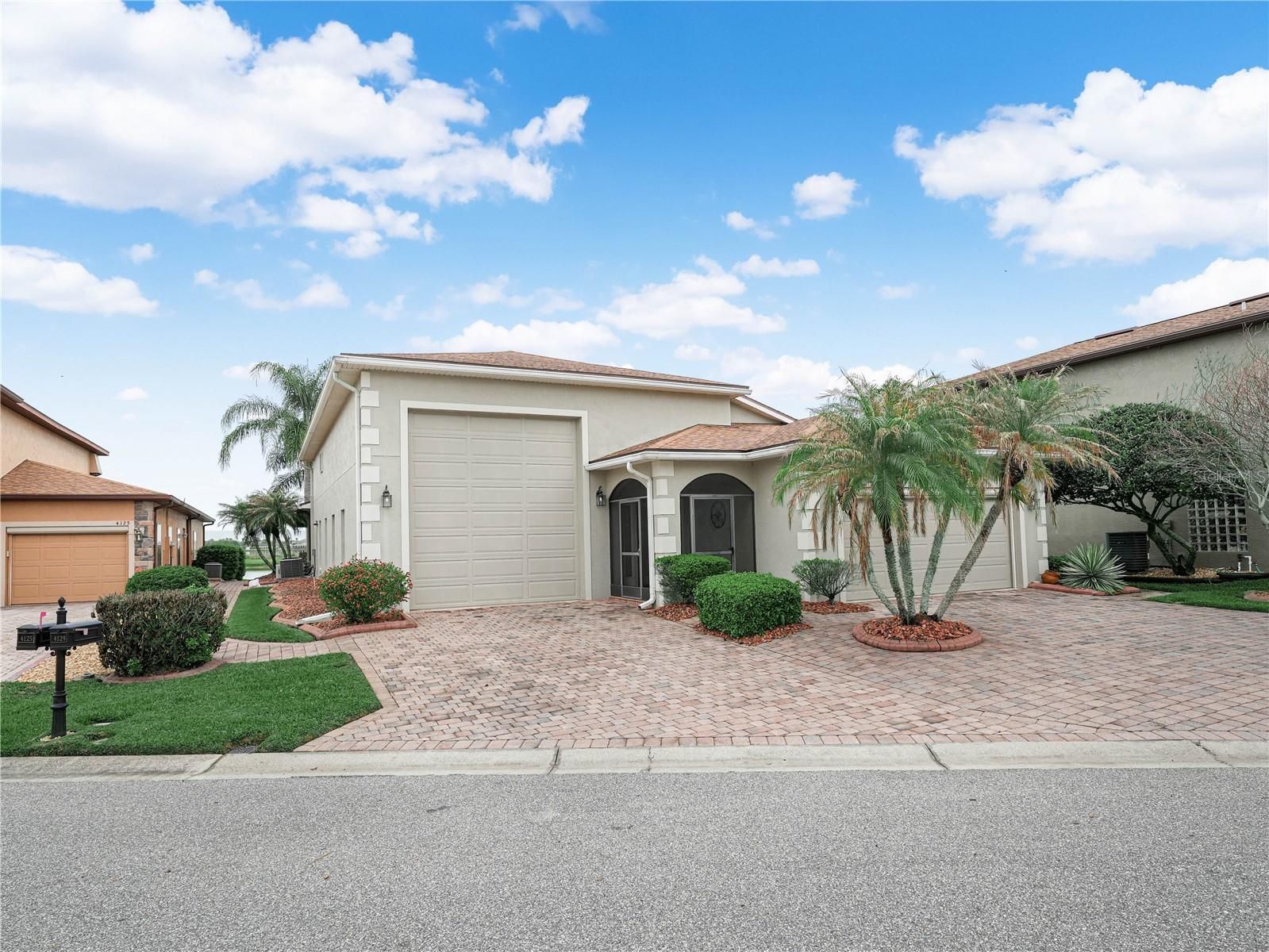 IDEAL LOCATION! AMAZING VIEW!!!! 4129 Limerick Drive Lake Wales, Florida is located on the 1st hole of Lake Ashton's East Golf Course. The location of this DeSoto RV home is desirable and offers a spectacular view of the morning sunrise over Lake Ashton. You'll enjoy the unobstructed golf and water views from one of the best lots in Lake Ashton. This 3 Bedroom / 2 Bath RV home offers a double car garage (20x21) and an RV garage (52 Ft) with hook ups. The exterior of this home is enhanced by concrete decorative edging and a paver walking path leads to the back on the home. Enter thru the screened front entry into this RV home in Lake Ashton. The screened front lanai, leaded glass front door, side lights and storm door provide a warm welcome. The double car garage and RV garage are both accessible from the foyer of this home. The air conditioned RV garage with epoxy coating is 52 ft. long, offers a wash sink, ventilation fan and the washer/dryer are located in this garage, too. The 2 car garage has an automatic screen and provides privacy and ventilation into the space. The kitchen has been updated and is located just beyond the foyer of this home. Offering an Island with pull out drawers, step up breakfast bar with pendant lighting, 42" soft close cabinets with under cabinet lighting, Quartz counter tops and Stainless Steel appliances, the kitchen is a popular gathering spot. There are pull outs in select cabinets. The large combination living and dining room can easily accommodate your entertaining needs. The crown molding, tile plank flooring, custom ceiling fans and solar tubes add class to this RV home in Lake Ashton. The dinette and adjacent family rooms are perfect locations for enjoying the fantastic views this home offers. The family room has newer windows and sliding doors that lead to the paver pad. The guest rooms with carpet and ceiling fans are located directly off of the kitchen. The guest bath with shower/tub combo and comfort height vanity with Quartz counter top is conveniently located for guests, too. The primary suite with a separate split A/C is located on the back of the home and provides amazing water and golf course views. The primary suite has a large walk in Closet, and separate bath with a comfort height vanity with Quartz counter top, walk in shower with glass door enclosure, linen closet, elongated toilet and upgraded lighting. The enclosed lanai with tile flooring and Acrylic windows is located on the north side of the home. It has a separate split A/C system allowing you to enjoy the room year round. Schedule an appointment to tour this RV home in Lake Ashton. Lake Ashton is a gated and guarded Florida Active Community with resort style amenities (2 Clubhouses with Movie Theater, Restaurant, Outdoor/Indoor Pools, Fitness Centers and More! Residents enjoy activities like Karaoke, Trivia, Dances, Entertainment Series, Holiday Events and so much more. You can stay busy living the Florida Retirement Dream every single day. For those that love the game of golf, there are 2 18-Hole Golf Courses, a Pro Shop, Driving Range, Putting Green and the Eagles Nest (Hole 19). Don't wait to tour this home; tour it today! Furniture Included!