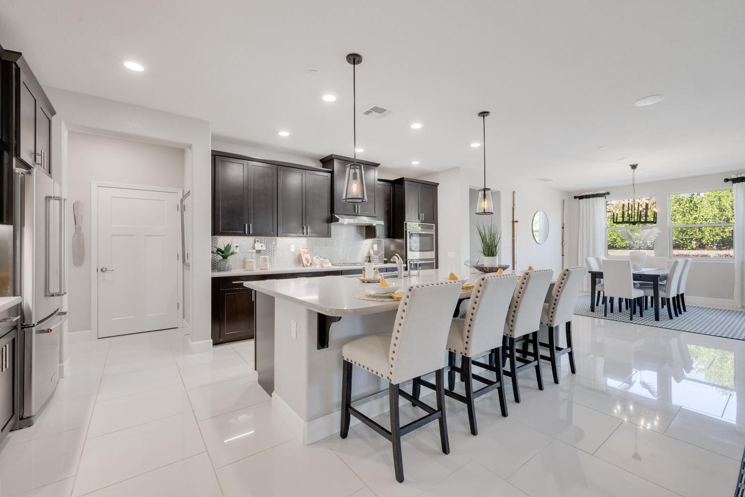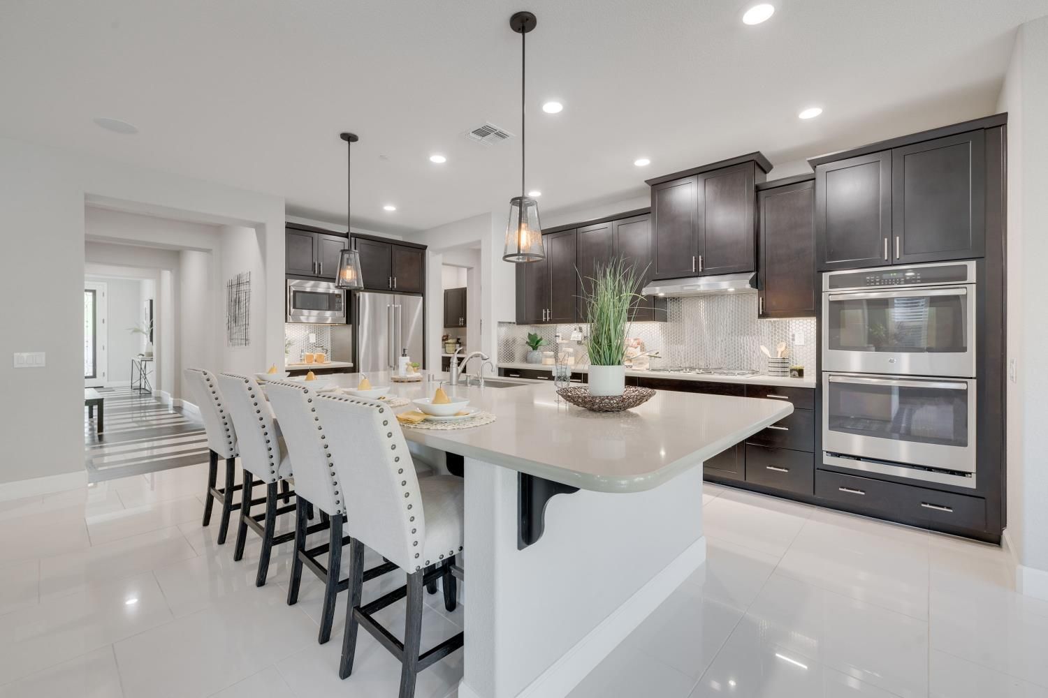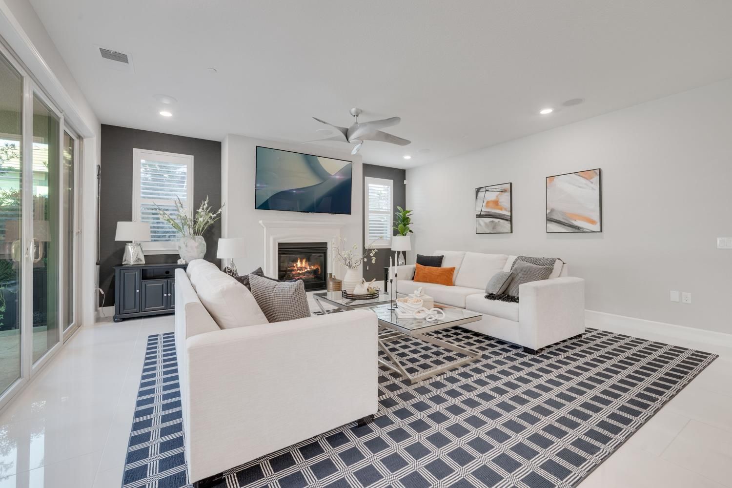 Welcome to this stunning former Santa Barbara model home in Heritage El Dorado Hills- a rare gem offering 3 bedrooms plus a den, 2.5 baths, a 2-car garage, and owned solar. You'll love the plantation shutters, luxury flooring, and open layout that creates a warm, inviting atmosphere. The gourmet kitchen is front and center, featuring a large island, quartz countertops, and stainless steel appliances. It opens to a separate dining area and living room with fireplace, where dual sliding glass doors lead to a beautifully landscaped backyard with an oversized covered patio, built-in BBQ, and fire pit- ideal for entertaining. Enjoy resort-style living at Heritage El Dorado Hills, a fabulous 55+ gated community with 2 spectacular clubhouses, indoor and outdoor pools, fitness center, tennis, pickleball and bocce ball courts, aerobic studio, pub, movie theater, card room, art studio, and billiards room, dog park, and scenic walking trails. With low Mello-Roos and HOA, plus close proximity to El Dorado Hills Town Center for shopping, dining, and Highway 50 access, this is luxury active adult living at its best.