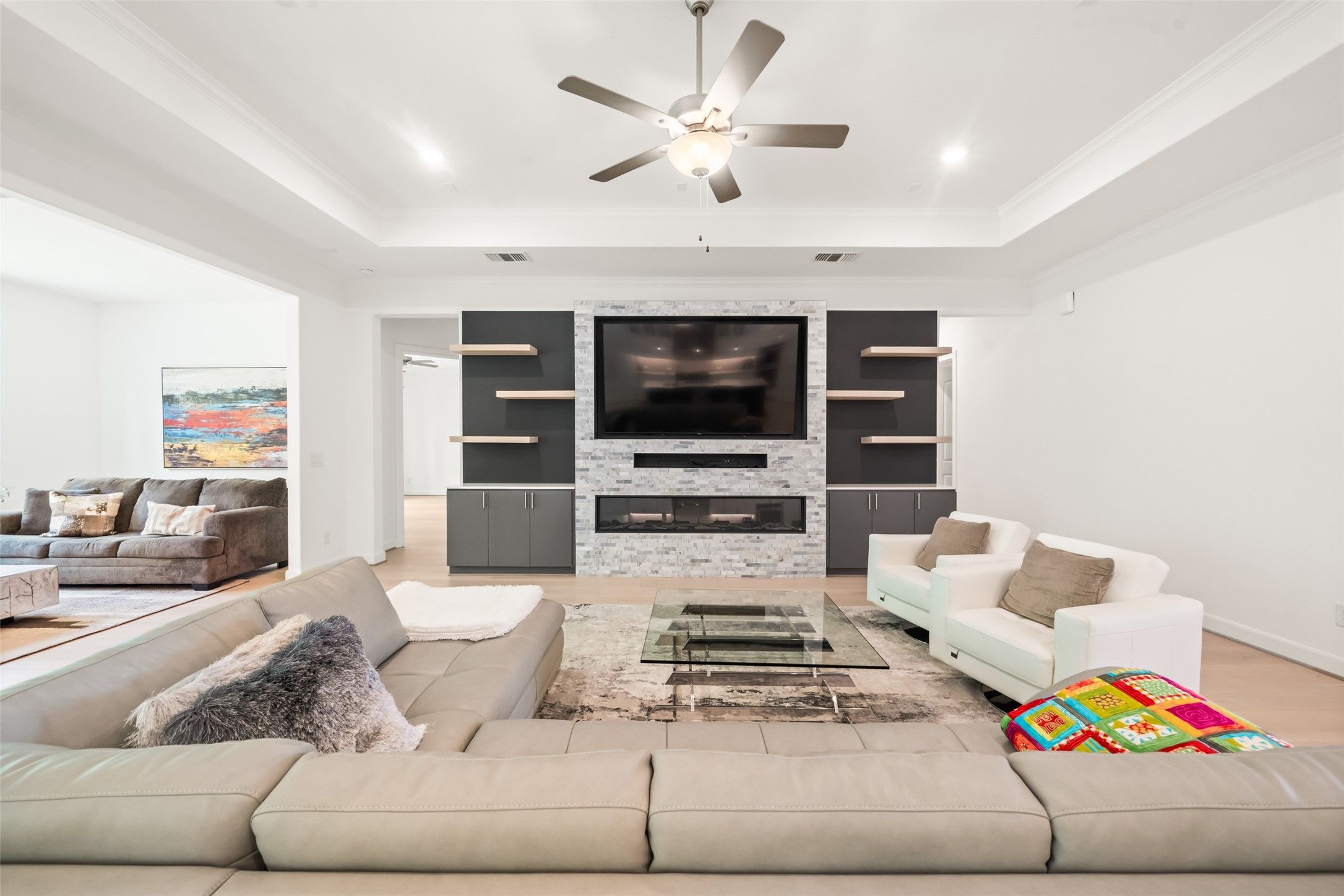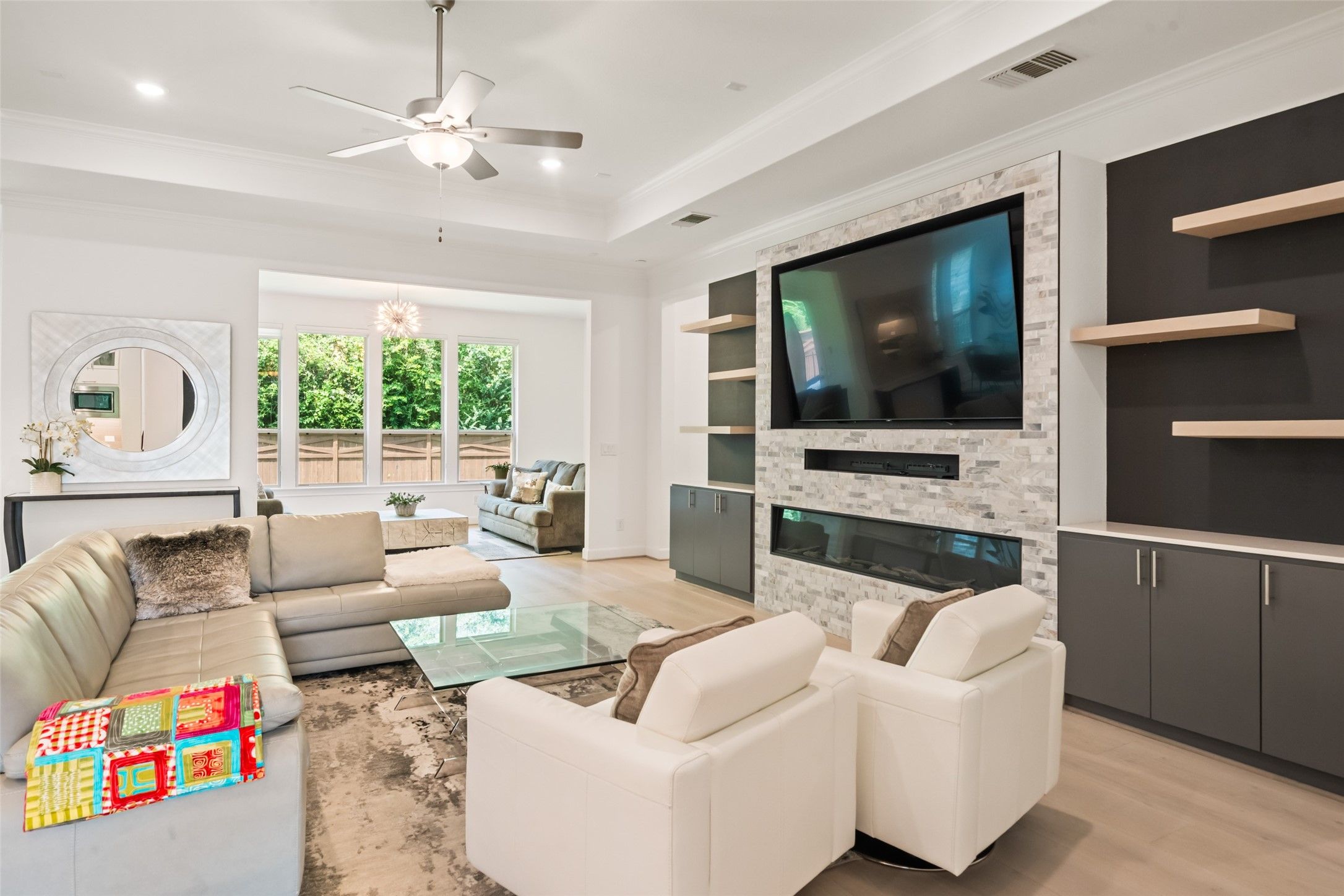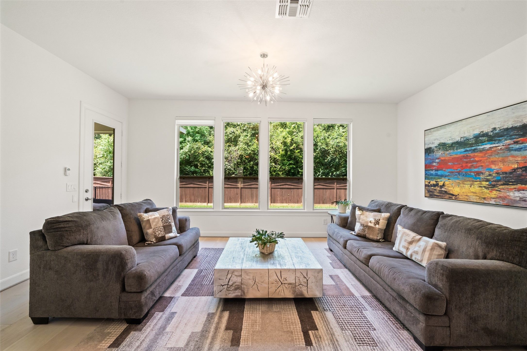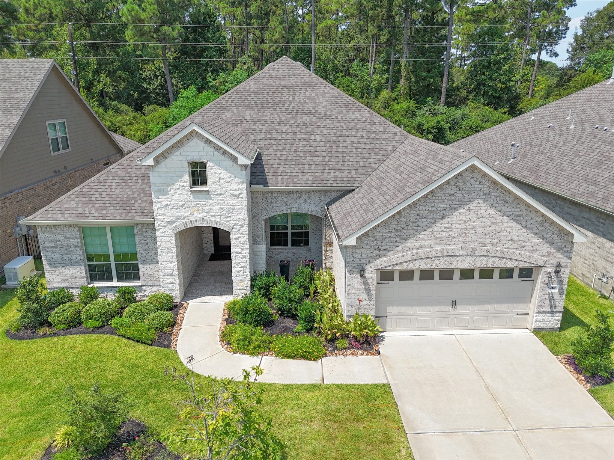 Magnolia Floor Plan! Stunning 3 bed, 2.5 bath home w/ 2-car garage in the desirable 55+ Active Community of Del Webb The Woodlands. Brick & stone elevation w/welcoming front porch sits on a generous lot w/ no back neighbors. Inside, Canadian white oak flooring flows throughout an open layout featuring a private home office w/French doors, spacious living room filled w/ natural light, and an electric fireplace. The chef’s kitchen offers stainless Kitchenaid appliances, double ovens, gas cooktop, wine fridge, subway backsplash, island w/ breakfast bar, upgraded cabinets/glass & bright breakfast area. A wall of windows highlights the sunroom. The primary suite boasts large windows, dual sinks, oversized mirror, walk-in shower with seat, and huge walk-in closet. Two secondary bedrooms, large laundry w/ mud area enjoy back covered patio w/ceiling fan overlooking a partially fenced yard, perfect for relaxing or entertaining. Garage has 4ft extension & overhead storage! Will not disappoint!!