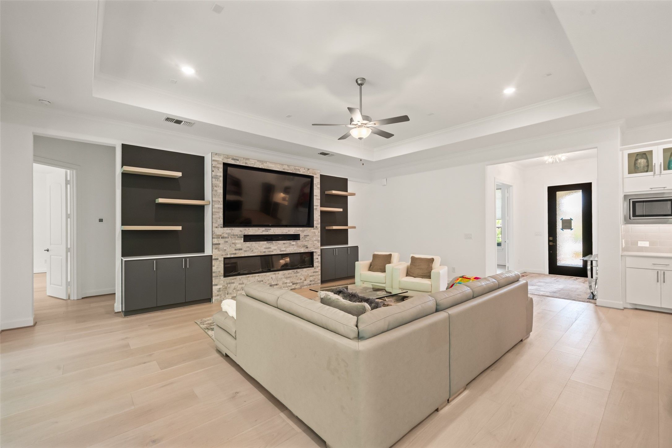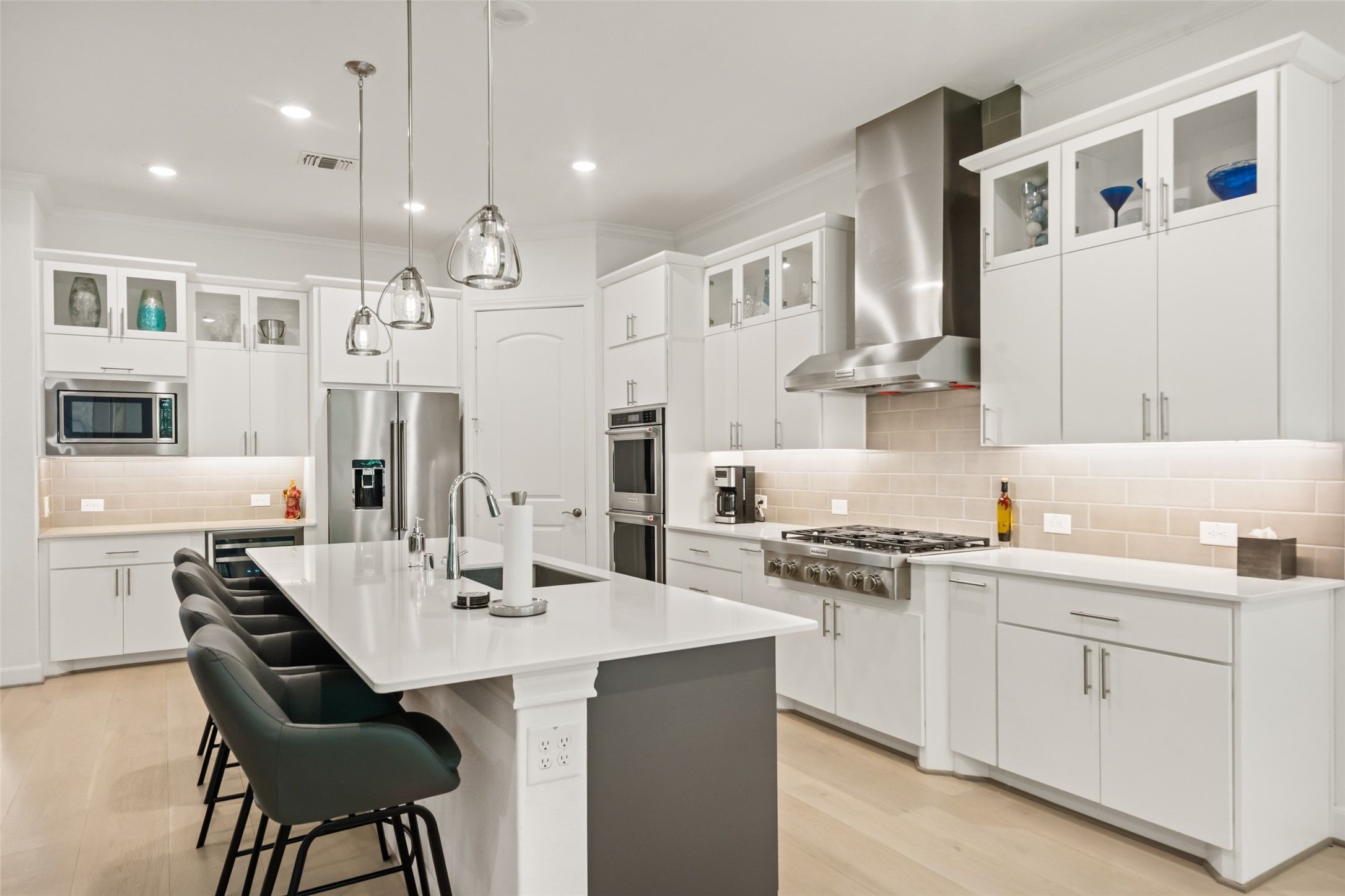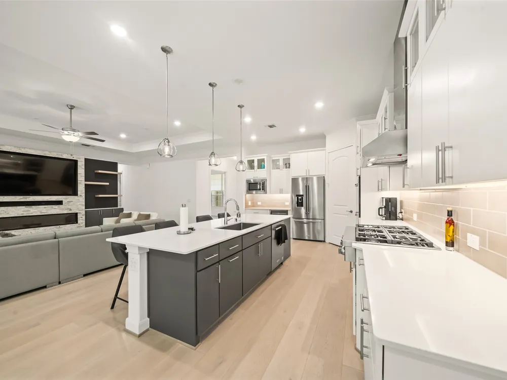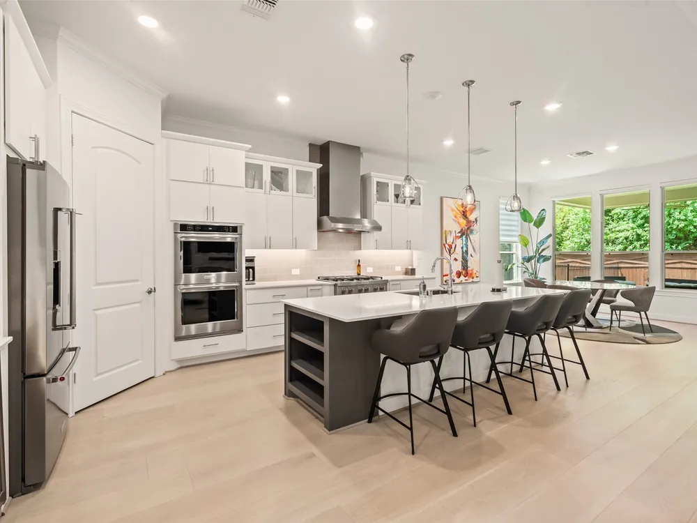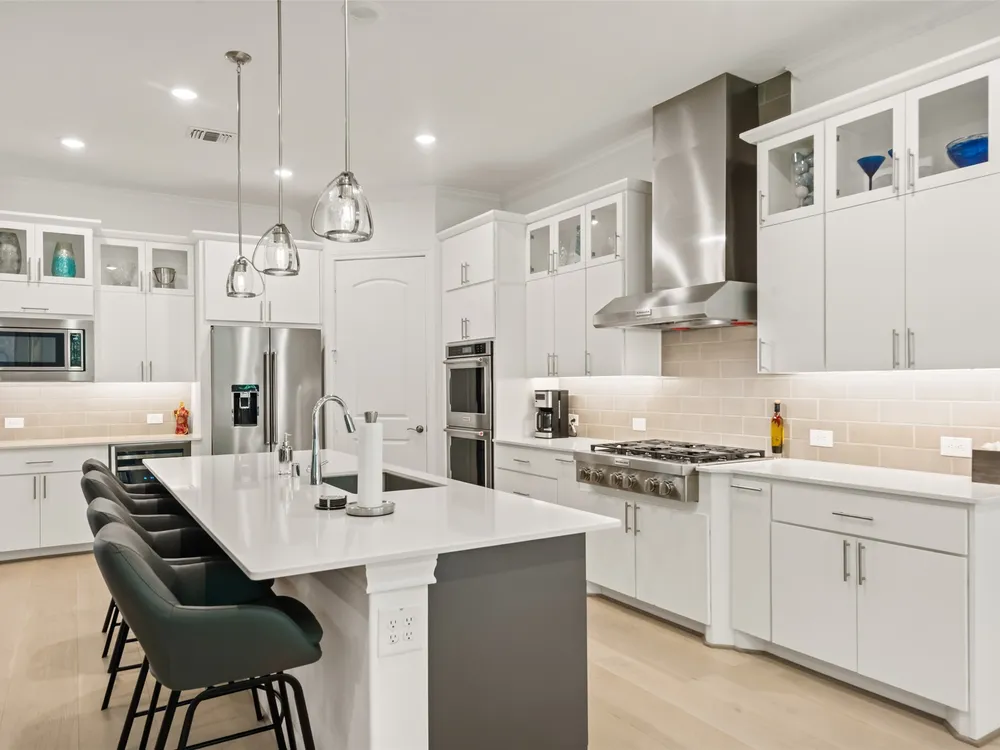- Breakfast Bar, Crown Molding, Double Vanity, High Ceilings, Kitchen Island, Kitchen/Family Room Combo, Bath in Primary Bedroom, Pots & Pan Drawers, Pantry, Quartz Countertops, Walk-In Pantry, Ceiling Fan(s), Kitchen/Dining Combo, Programmable Thermostat