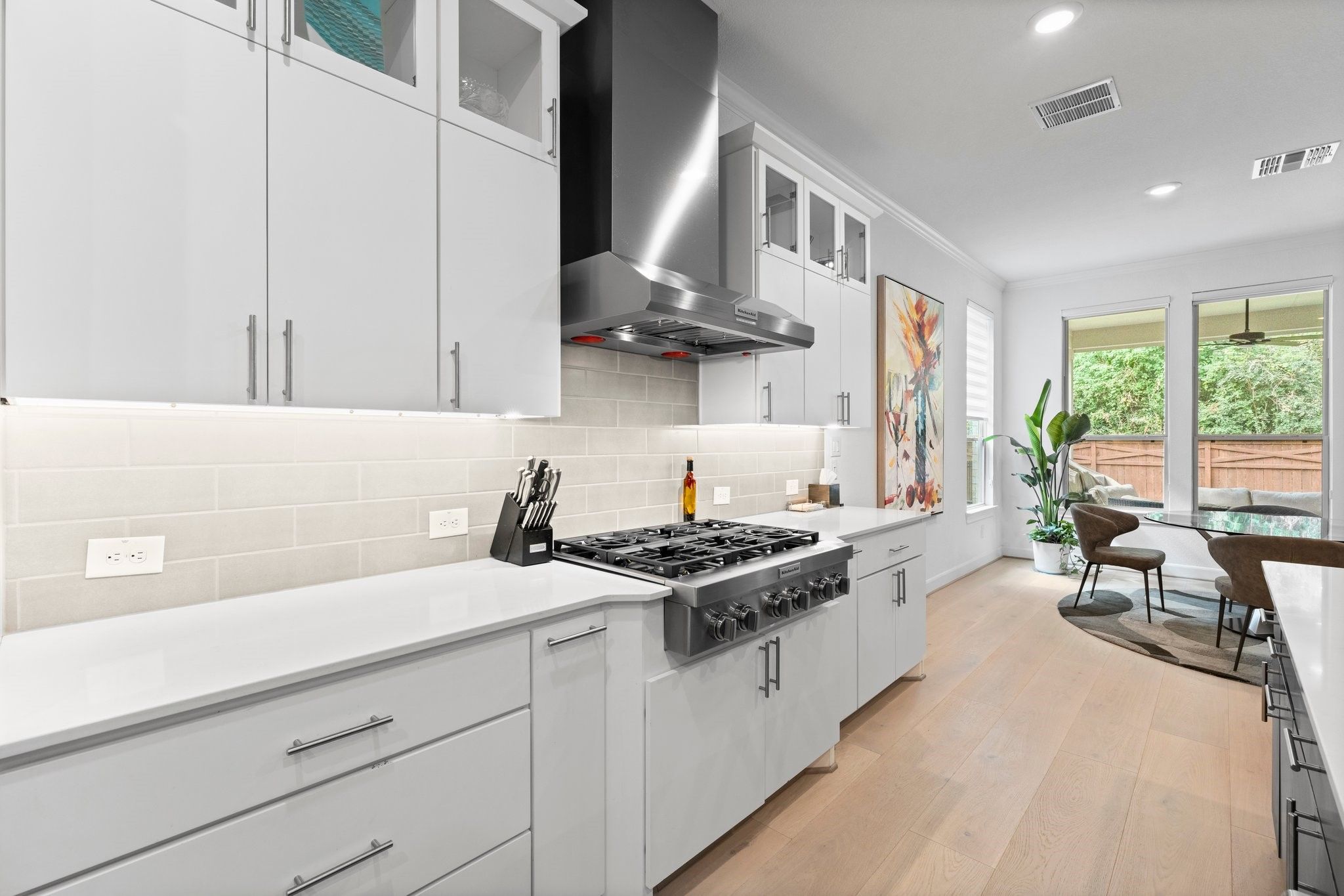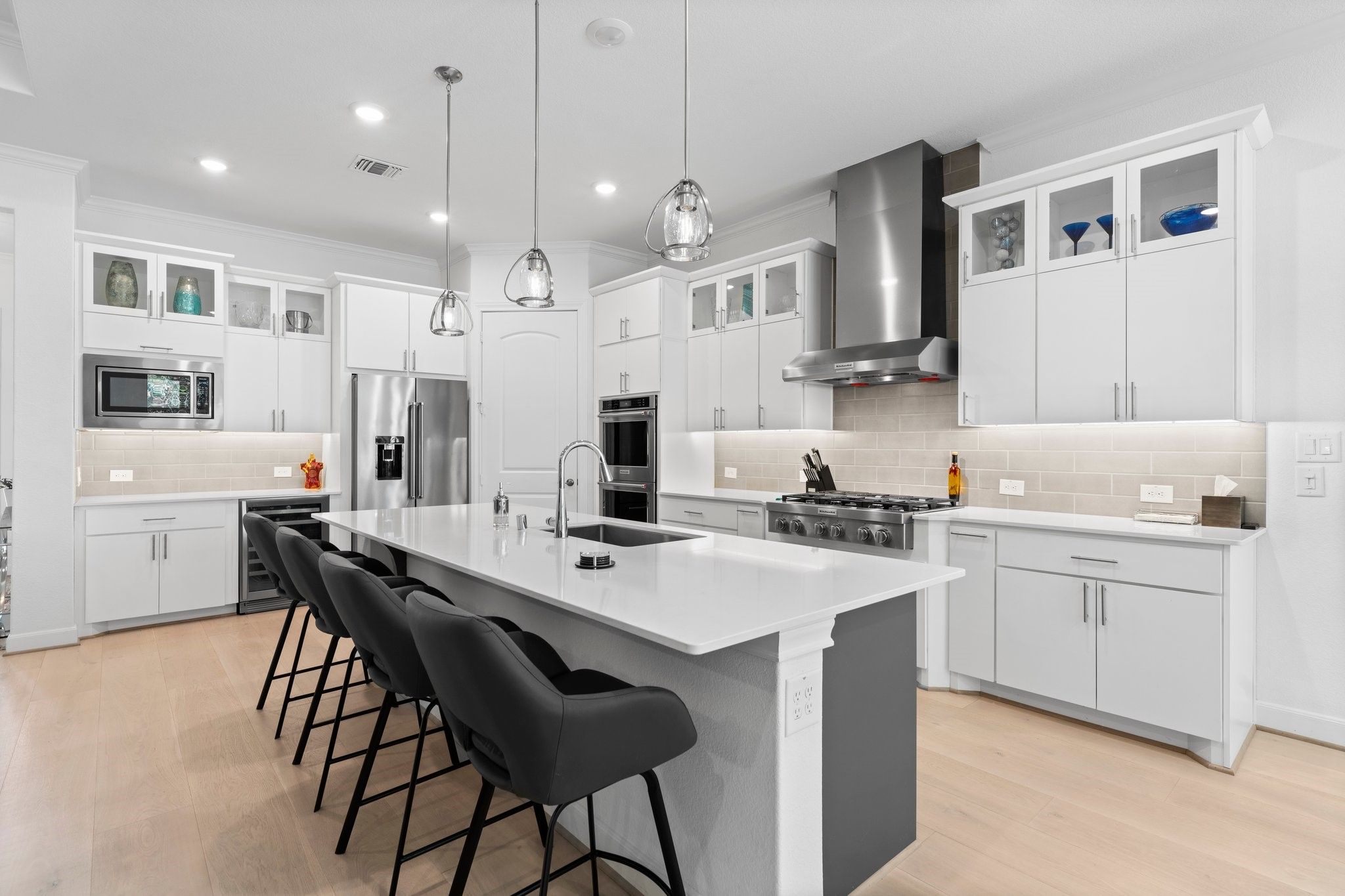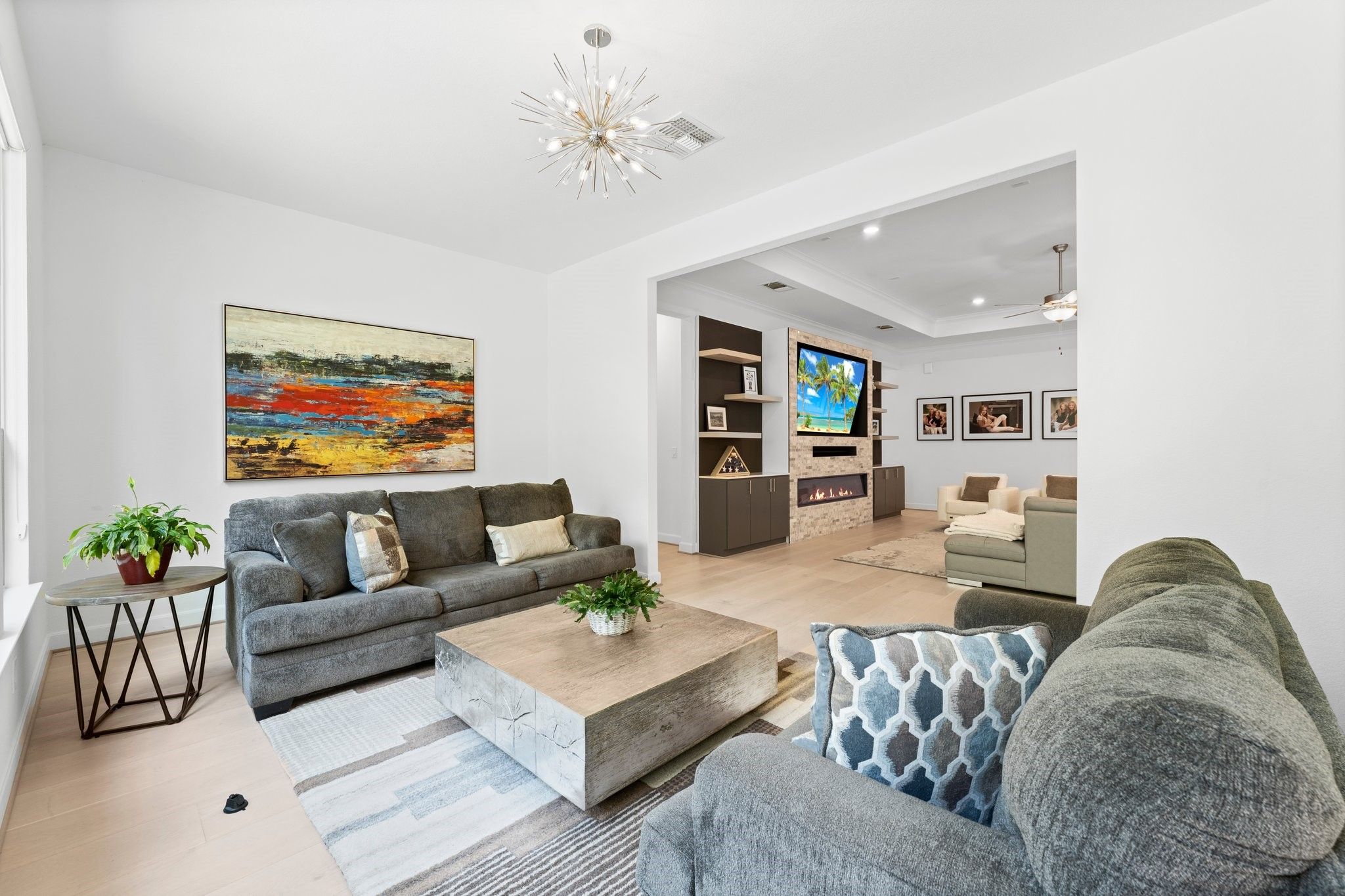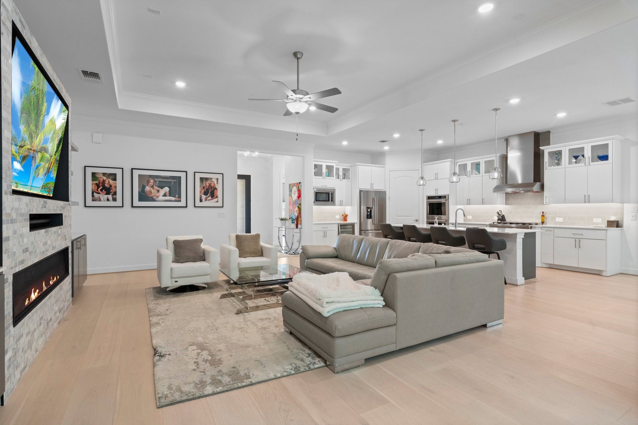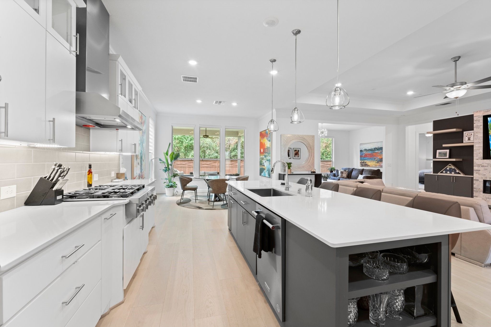 *NO BACKYARD NEIGHBORS* 3 BEDROOM * SUNROOM* POPULAR MAGNOLIA FLOOR PLAN* 55+ ACTIVE RESORT DEL WEBB THE WOODLANDS COMMUNITY*4Ft GARAGE EXTENSION This home is perfect for entertaining and culinary enthusiasts, boasting a chef’s kitchen equipped with KitchenAid stainless appliances, a double oven, gas cooktop, built-in wine refrigerator, large island, and upgraded cabinets. The spacious den is a cozy retreat with a tray ceiling, linear built-in fireplace, and wood flooring throughout. Relax in the sunroom, offering tranquil views of the tree-lined backyard. The primary bedroom is a luxurious sanctuary, complete with an en-suite bath featuring double sinks, a walk-in roll-in shower, and an expansive walk-in closet. An additional unique room, known as the snore room, serves as a versatile third bedroom. Guests will appreciate the comfort of their own private bath in the guest bedroom. Enjoy outdoor living on the covered patio, perfect for unwinding or hosting friends.