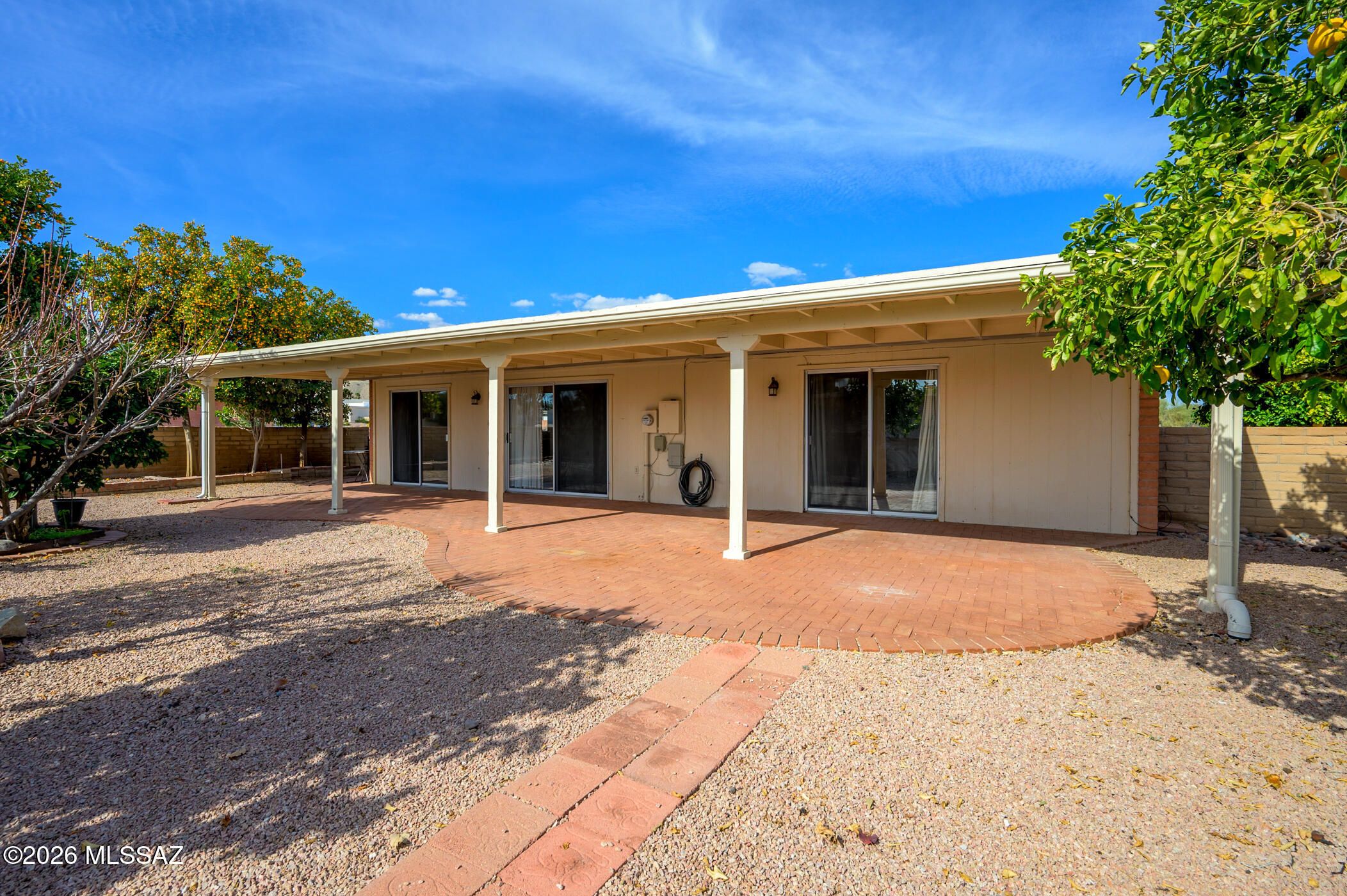 Welcome to this inviting 3-bedroom, 2-bath home offering comfort, space, and an excellent location in the heart of Green Valley. Recently refreshed with a freshly painted interior and carport, the home provides a clean canvas ready for your personal updates and design touches. The functional floor plan features comfortable living areas and great natural light throughout.Step outside to a spacious covered patio--perfect for relaxing, entertaining, or enjoying Arizona's beautiful year-round weather. The generous backyard is filled with mature landscaping and producing citrus trees, creating a peaceful outdoor setting.Situated on a desirable corner lot directly across from the Villages of Green Valley Recreation Center and pool, you'll enjoy easy access to activities, fitness, and
