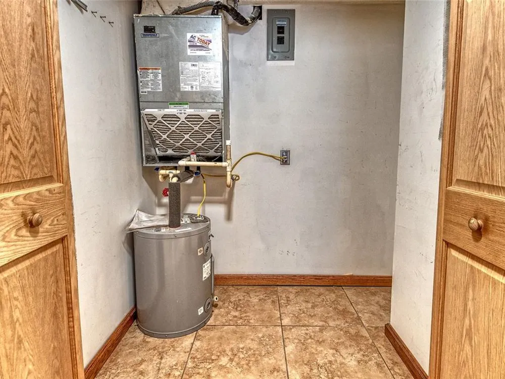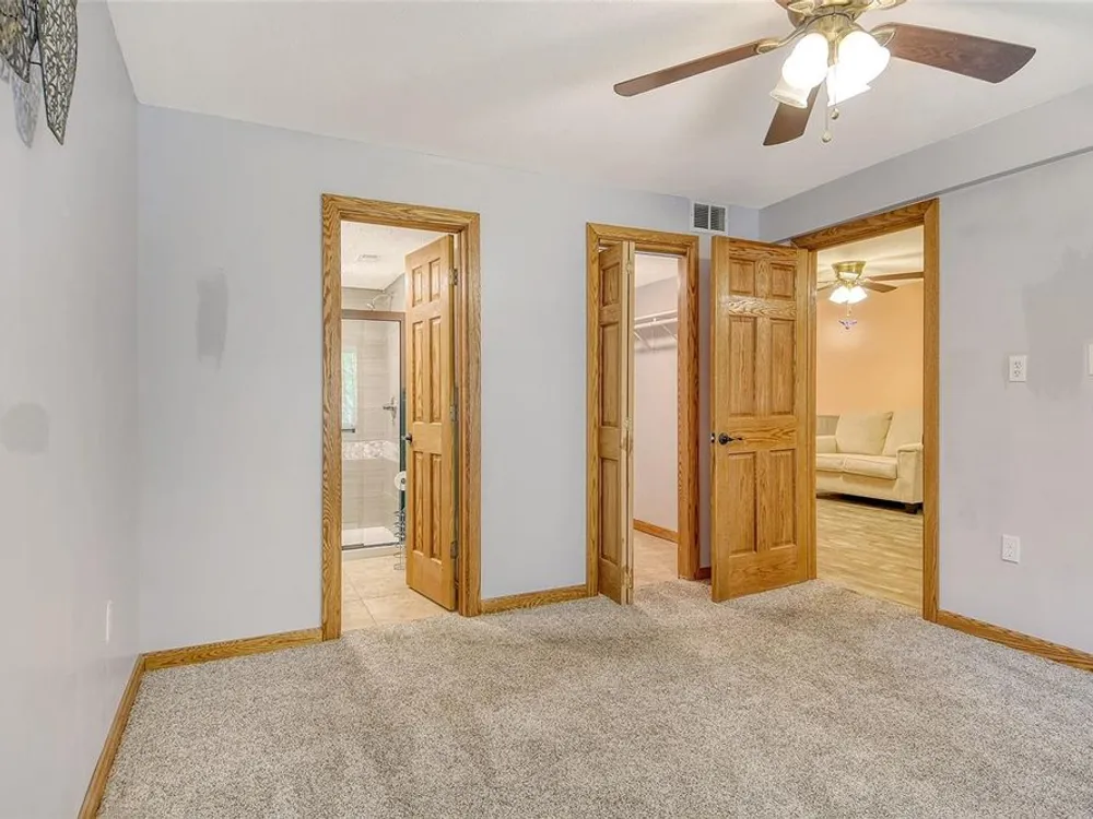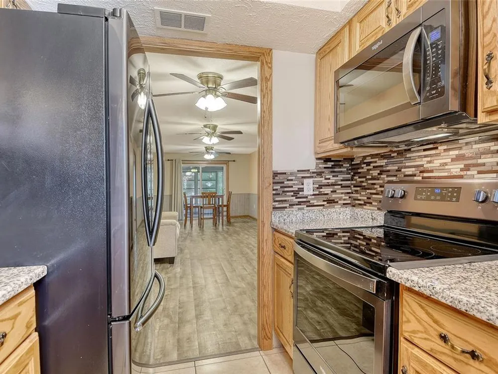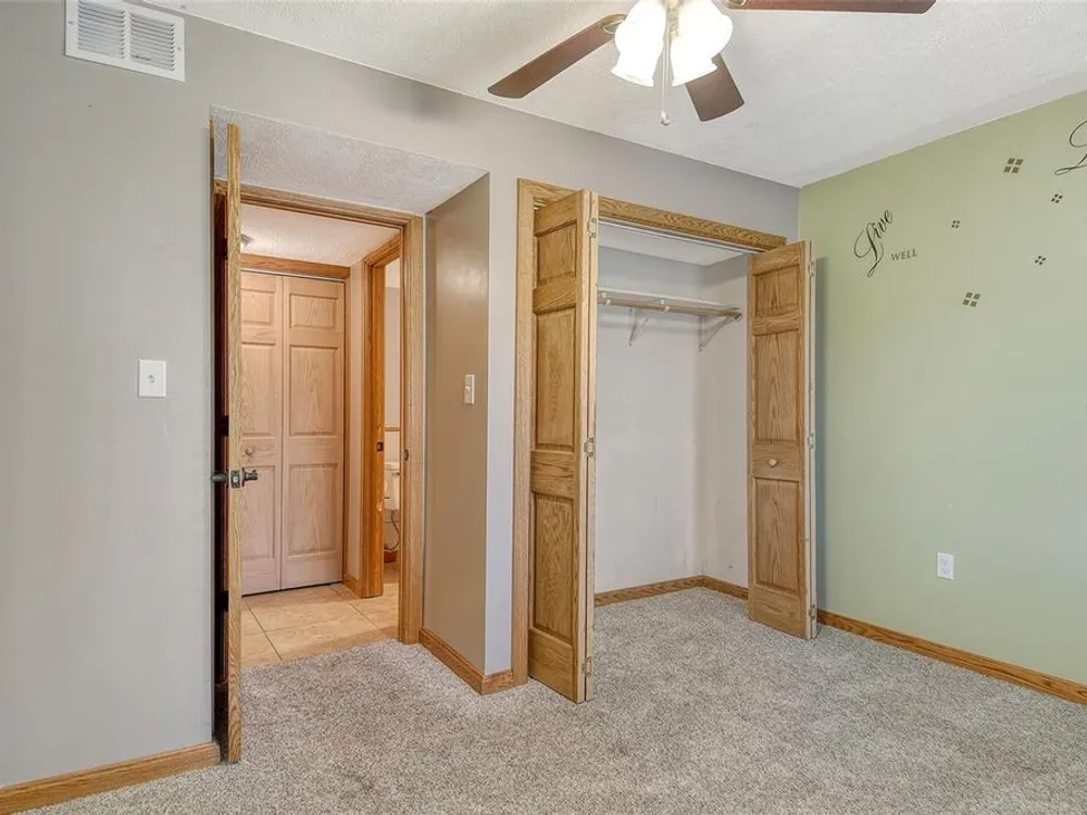 - Ceiling Fan(s), Living/Dining Room, Solid-Wood Cabinets, Stone Counters, Thermostat, Walk-In Closet(s), Window Treatments