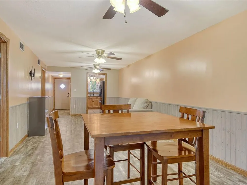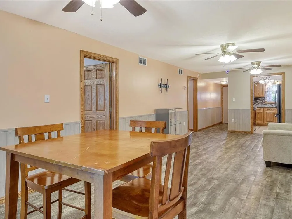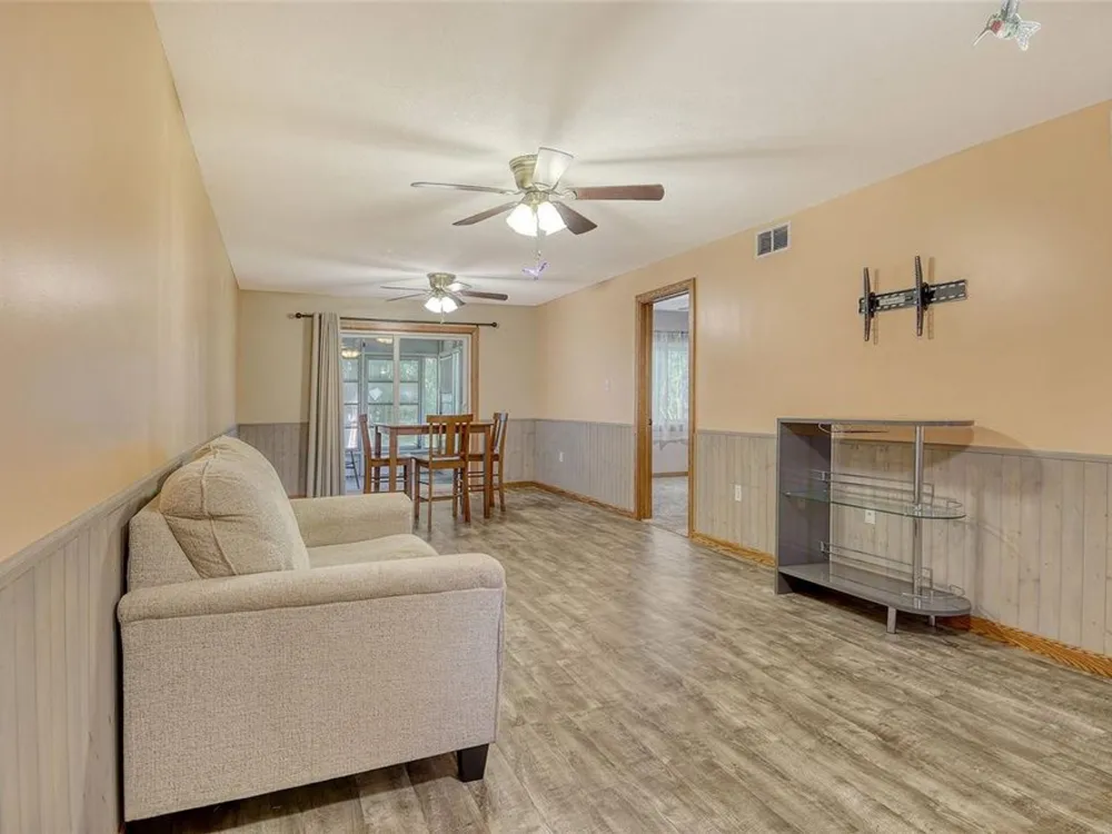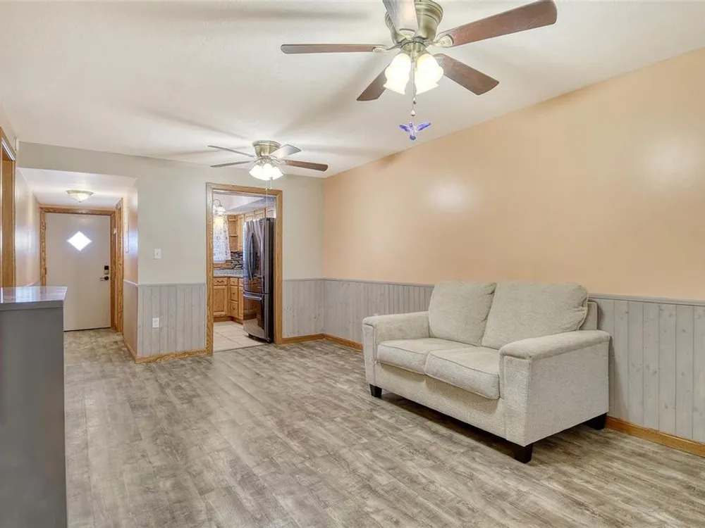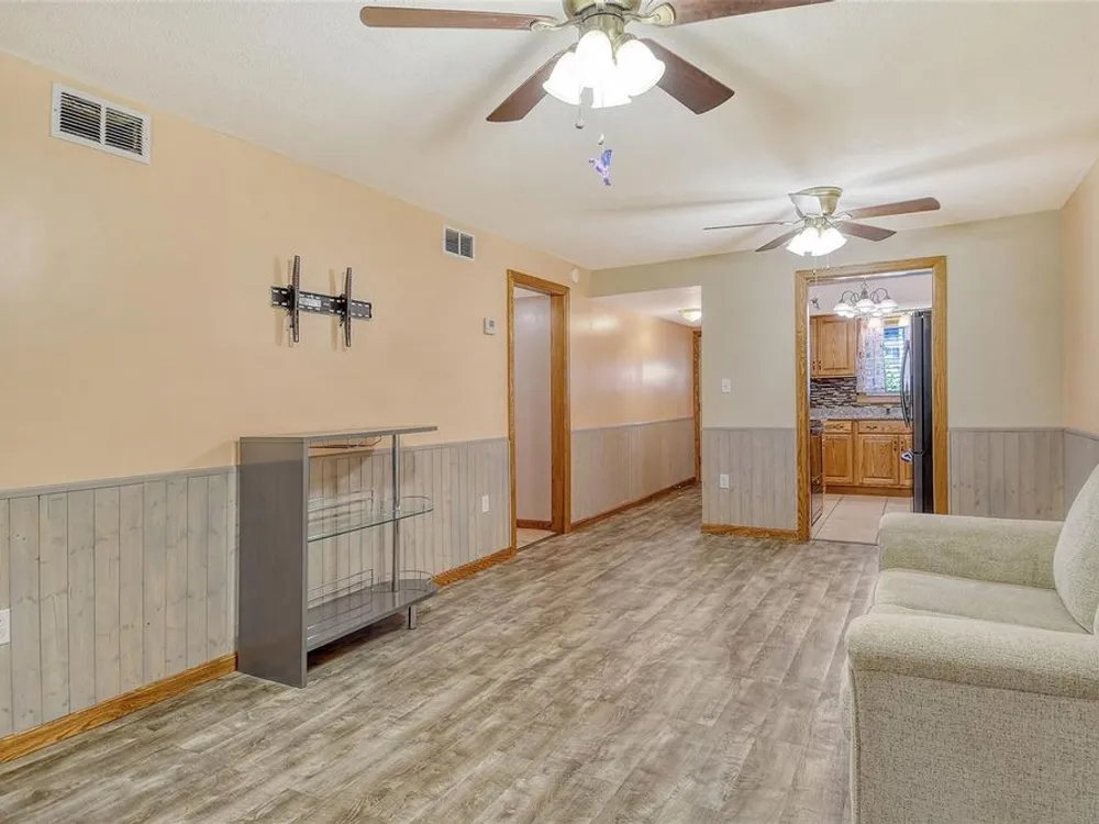 - Ceiling Fan(s), Living/Dining Room, Solid-Wood Cabinets, Stone Counters, Thermostat, Walk-In Closet(s), Window Treatments