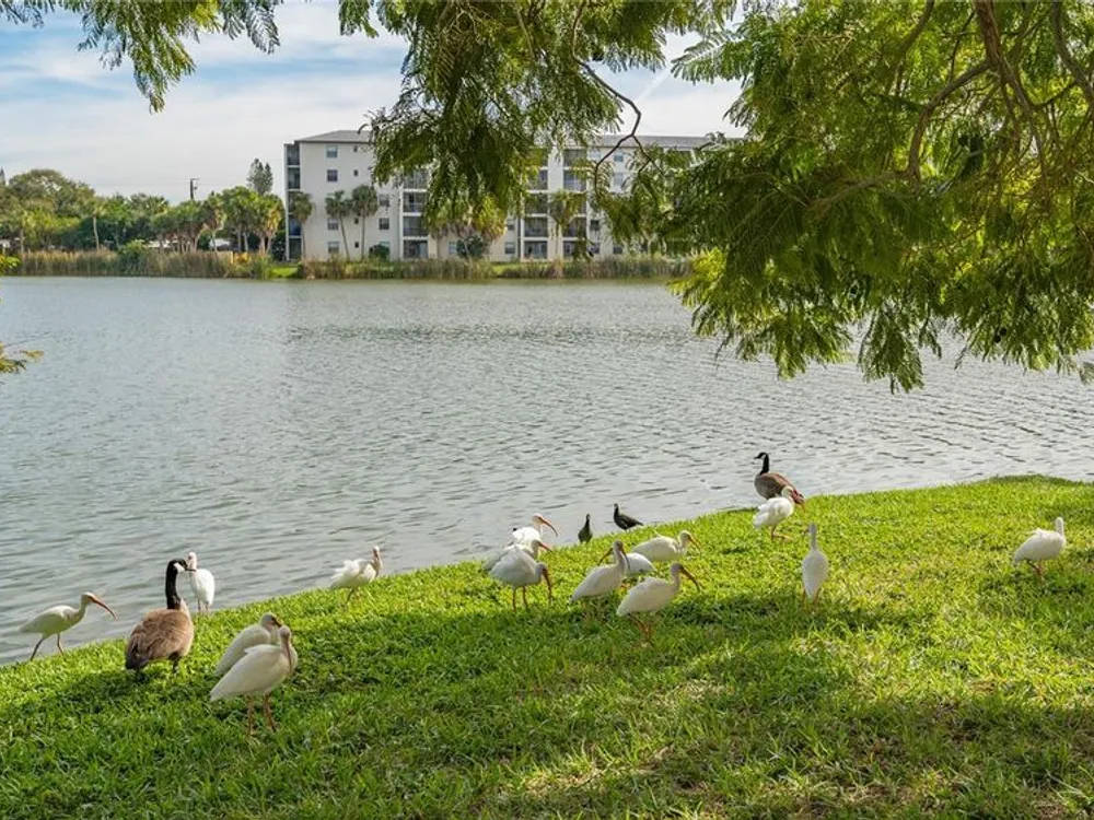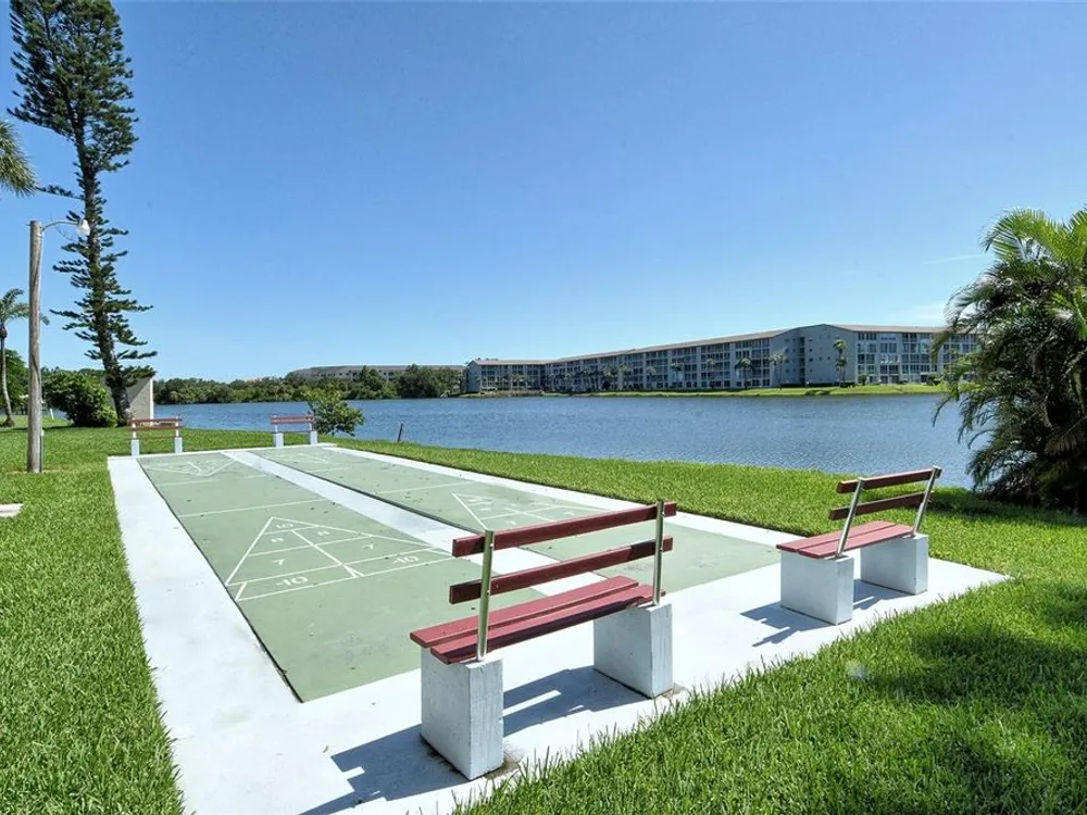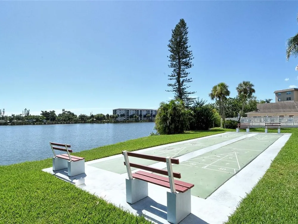 ATTN: PRICE REDUCTION! This spacious 2-bedroom, 2-bath residence is located in the sought-after 55+ community of Bayshore on the Lake. Perfectly situated on the ground floor of a 3-story building, this home offers comfort, convenience, and easy access to the best of Florida living. Just minutes from world-renowned beaches, dining, shopping, airports, and more. Inside, a bright, open layout is enhanced by thoughtful updates throughout. The kitchen features rich wood cabinetry, granite countertops, and flows seamlessly into the main living space, where durable vinyl flooring adds a modern touch. Both bathrooms have been stylishly remodeled, and the home includes tile flooring in the baths and plush carpet in the bedrooms for added warmth and comfort. The unit is ideally located just steps from the shared laundry room and close to community amenities including a sparkling heated pool, clubhouse, and shuffleboard courts, perfect for enjoying the Florida lifestyle. Offered at a price that reflects both its prime location and recent improvements, this home is move-in ready with plenty of potential to personalize. Whether you're seeking a full-time residence, seasonal getaway, or investment opportunity, this condo presents an exceptional opportunity in a well-established and centrally located community.