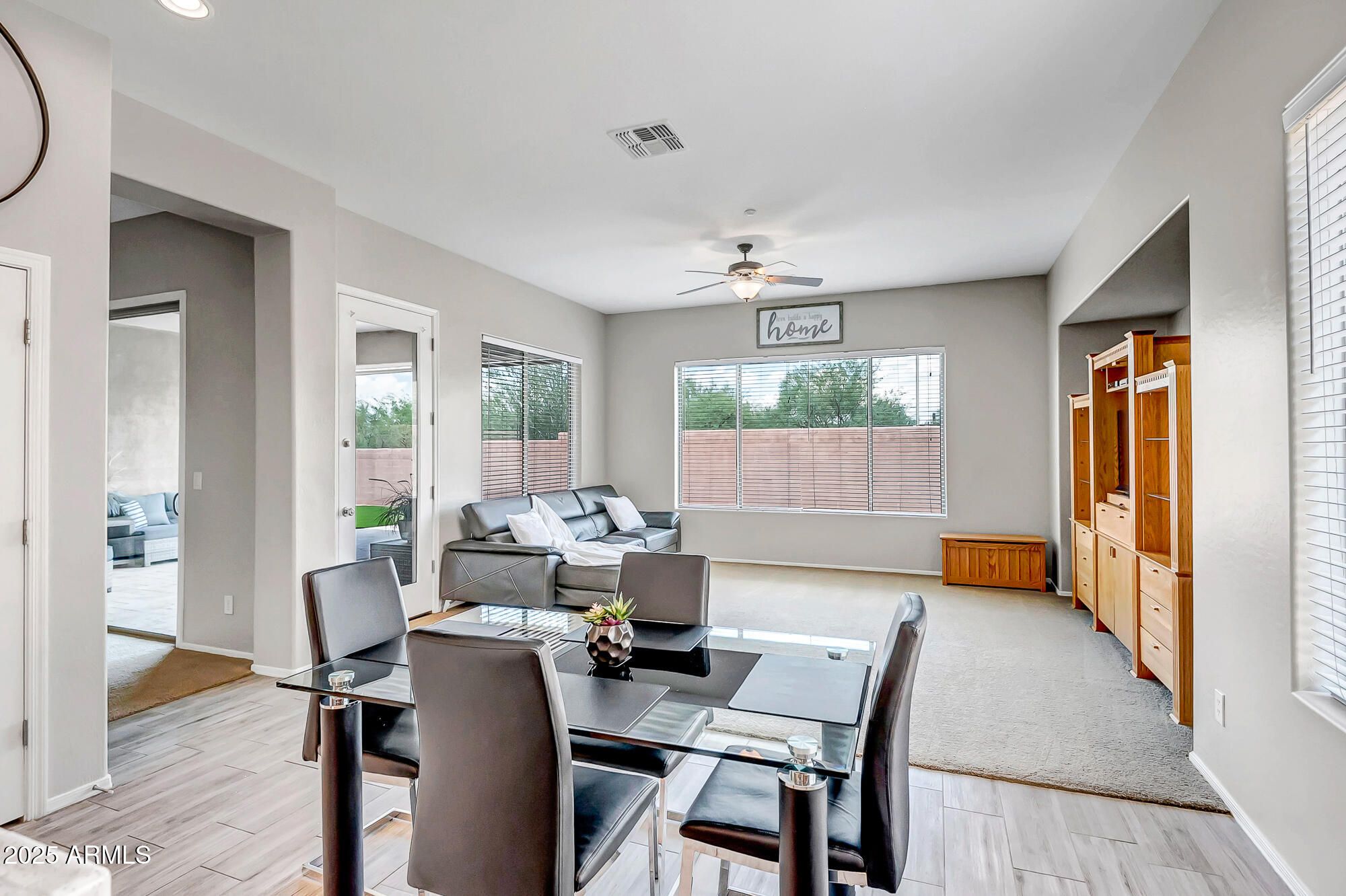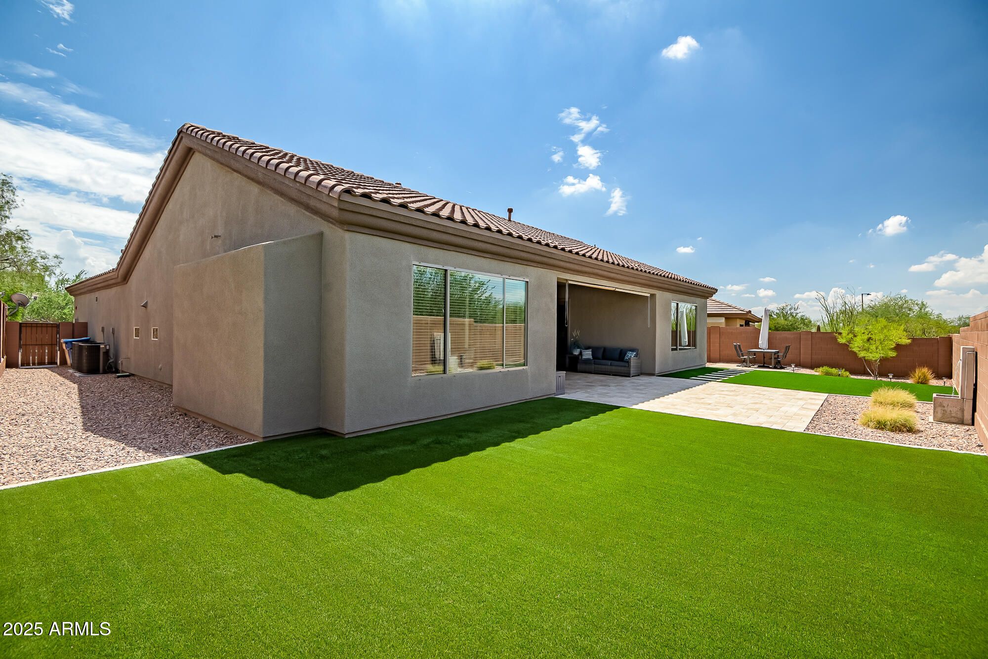 Welcome to 41318 N Bent Creek Way in Anthem Country Club. This home qualifies for a special financing rate buy-down program. This home has been impeccably maintained & upgraded and is Move-In Ready with Modern Touches Throughout! This spacious layout has updated counters, travertine paver patio, newer artificial turf, interior/exterior paint, EV Chargers, newer water heater, and a water feature to induce peaceful mornings and evenings. Experience the perfect blend of style, function, and comfort. Situated in a desirable neighborhood with 2 Golf Courses, 2 Clubhouses, 2 Gyms, Pickleball, Tennis and much more. Whether it's a snowbird retreat, or a growing family this home checks the boxes to create lasting memories Step inside to find wood-look ceramic tile flooring (2019) flowing throughout the main living spaces, complemented by fresh interior paint (2019), including the garage. The dedicated office features plush carpet (2019), ideal for remote work or study. In the kitchen, enjoy the sleek look of black stainless steel appliances. Stove and microwave installed in 2019, with a refrigerator and dishwasher added in 2021. Enjoy the outdoors with a low-maintenance and stylish backyard, featuring artificial turf and travertine pavers installed in 2021 and 2022. A charming fountain (2022) creates a tranquil ambiance, while shade screens (2019) provide energy efficiency and comfort. The block wall was painted in 2021, and the side gate was refreshed with new wood and paint in 2020, adding to the curb appeal. Most recently, the home received a fresh exterior paint update in 2025. Additional upgrades include: Garage storage cabinets (2019) for added organization Two 240-volt EV charger outlets (2020 & 2021), perfect for electric vehicle owners New water heater (2023) for peace of mind New countertop grout coating (2025) with a 3-year warranty for lasting durability This home has been meticulously cared for and is ready for its next owner. Don't miss this opportunity to own a turn-key property with smart upgrades already in place!