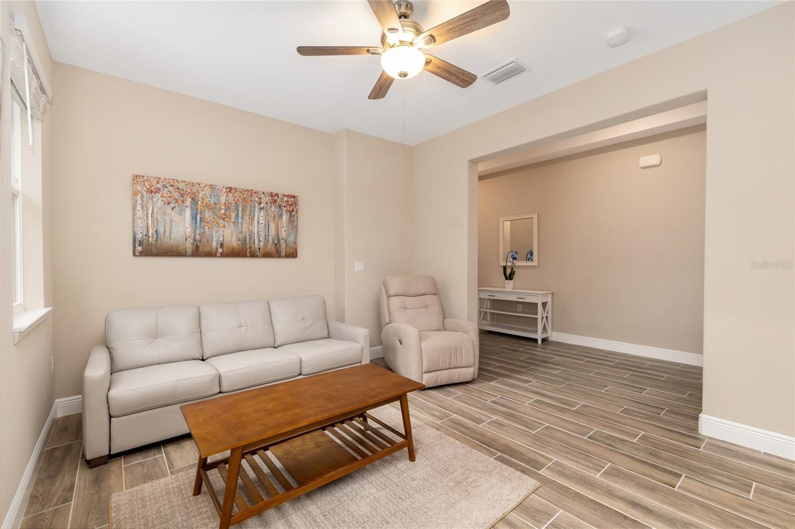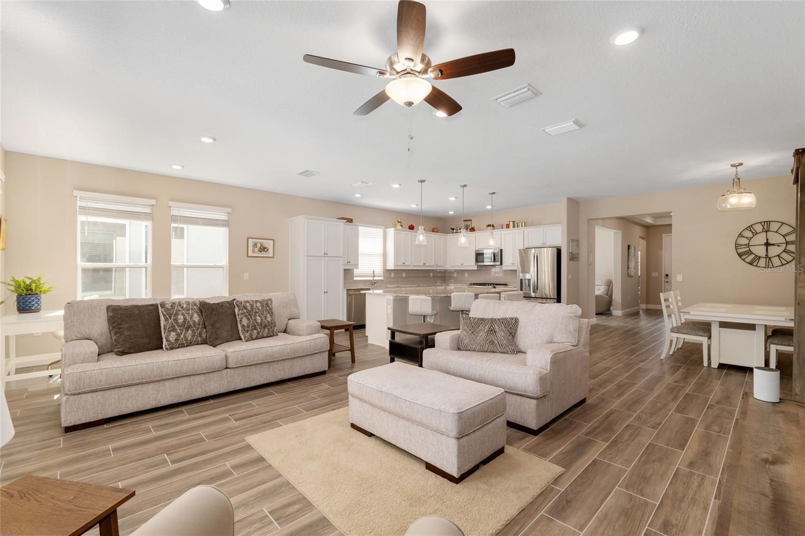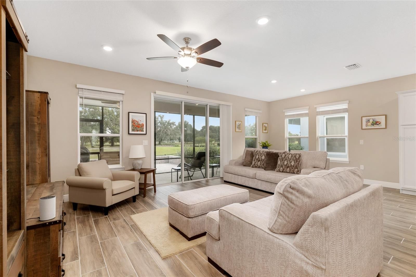 Move-in ready Shea Home, designed for comfort, connection, and everyday luxury. Built in 2021, this 2 bedroom, 2.5 bath home with den sits on a premium lot and includes a screened and covered lanai and a paver patio overlooking a fenced yard, green space, and distant golf course views--Serene and Private. It offers a thoughtful split floor plan with high ceilings, 8’ doors, and timeless finishes. The kitchen is the heart of the home, with tall cabinetry, an oversized island, gas range, and stainless appliances, opening seamlessly to the dining and living areas for effortless entertaining. The primary suite is extra large, creating a true retreat, while the guest bedroom includes its own ensuite bath for privacy and convenience. A spacious den offers flexibility as a second living area, office, or meditation room—a place to unwind and recharge. Wood-look ceramic plank flooring flows through the main living spaces, with soft carpet in the bedrooms for comfort. Located in Ocala Preserve, one of the area’s most desirable communities, where resort-style amenities include golf, pickleball, tennis, spa, fitness center, pools, trails, and a full-service restaurant and bar. Just minutes to shopping and WEC, this home offers the perfect blend of beauty, function, and harmony.