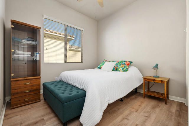 **Reduced**Welcome to this charming and freshly updated Canterra floor plan offering 1,257 sq. ft. of comfortable living space, ideally situated with a panoramic mountain view in Sun City Shadow Hills. The inviting great room features tile flooring, two large windows, and a sliding glass door that fills the space with natural light and provides easy access to the backyard. The kitchen showcases updated appliances with a newer refrigerator, dishwasher and microwave, granite countertops, and abundant cabinetry with room for a cozy breakfast nook. A separate laundry room adds everyday convenience. The AC was recently replaced in 2023 and heating system updated in 2024. The primary suite offers luxury vinyl tile, a large picture window overlooking the backyard and mountain views, a walk-in closet, and an ensuite bathroom with dual vanities and a shower stall. The guest bedroom, also with LVT flooring, is located near a full bath with a shower-over-tub combination perfect for visitors. The garage has been updated with insulated garage doors and built-in storage. Step outside to enjoy a spacious backyard featuring a covered patio, extended concrete area ideal for outdoor seating, and low maintenance desert landscaping. This beautiful move-in ready home was painted inside and out in the last 12 months. Sun City Shadow Hills is an active 55+ community offering resort-style amenities, including two clubhouses, championship golf courses, fitness centers, pools and spas, pickleball and tennis courts, and a variety of social clubs and activities designed for every interest. Enjoy the perfect blend of recreation, relaxation, and connection in this vibrant desert community. Don't miss the opportunity to make this inviting Canterra yours!