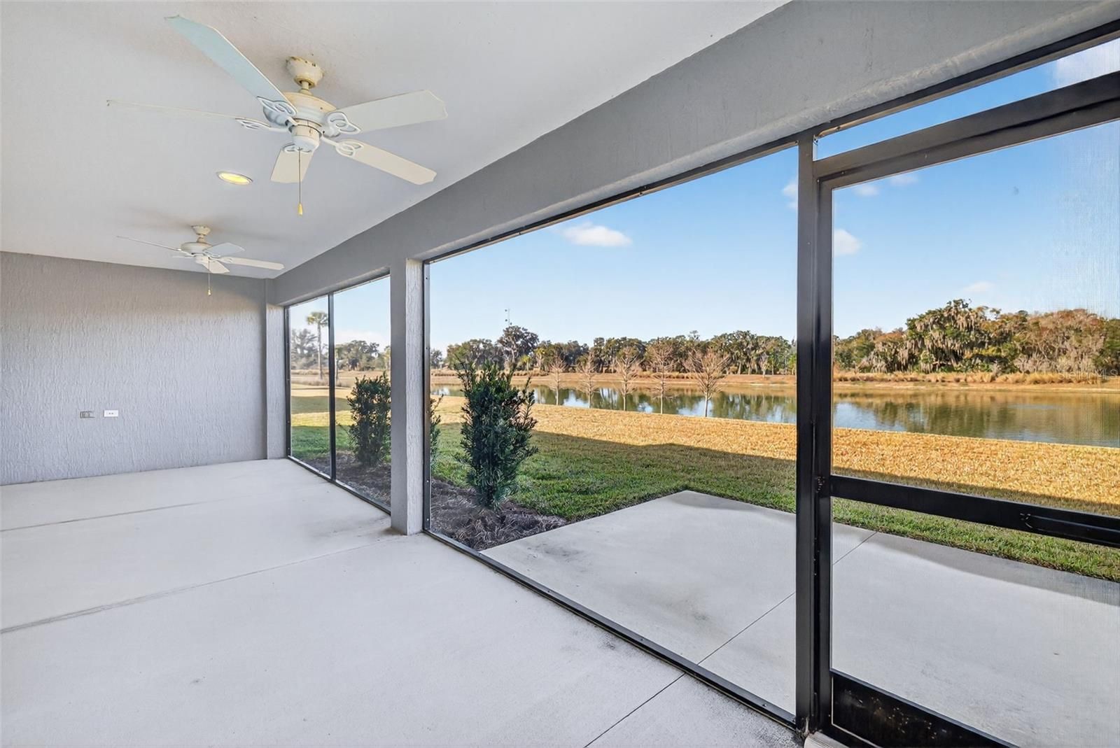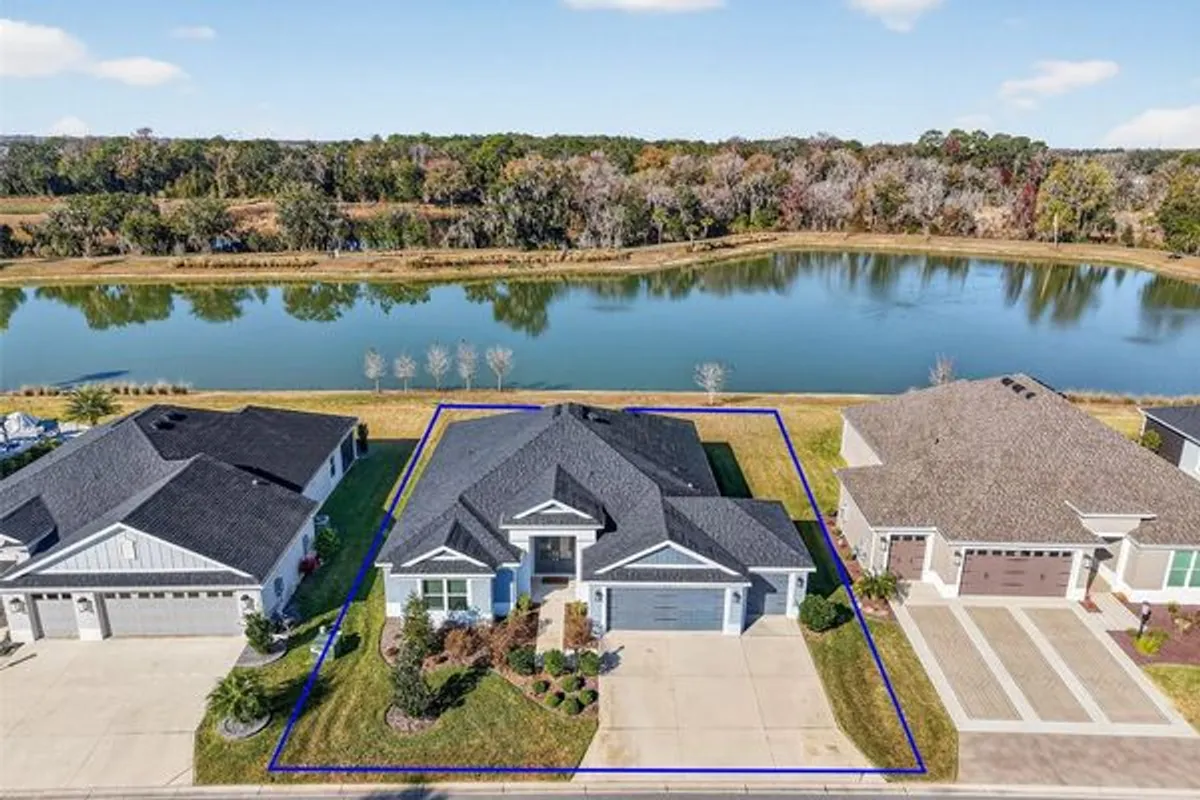 One or more photo(s) has been virtually staged. EXCEPTIONAL, WATERFRONT, BLOCK and STUCCO 3/2 LILY with SPECTACULAR VIEWS, ROOM FOR A POOL, SCREENED LANAI, and EXPANSIVE, OVERSIZED 677sf TWO CAR + GOLF CAR garage in the highly desirable Village of Richmond! JUST MINUTES from Brownwood Paddock Square! Built in 2022, this nearly NEW home offers LOW-MAINTENANCE peace of mind with MODERN DESIGN! A DOUBLE door entry with contemporary artistic LEADED GLASS and large transom welcome you in to a well-lit and GENEROUS foyer boasting HIGH CEILINGS and a convenient ENTRY CLOSET. The EXPANSIVE OPEN CONCEPT living, dining, kitchen, and dinette creates a SPACIOUS and VOLUMINOUS main living area. Showcased THROUGHOUT this FABULOUS residence are SEAMLESS, WOOD-GRAIN LUXURY VINYL PLANK FLOORING, HIGH baseboards, MODERN lighting, and five-panel doors. The STUNNING kitchen is a CULINARY HAVEN boasting GREIGE cabinetry; QUARTZ countertops; hexagon TILE backsplash; EXPANSIVE CENTER ISLAND with DOUBLE-SIDED cabinets and convenient EAT-IN breakfast bar; under CABINET LIGHTING; STAINLESS appliances with GAS cooking; built-in DOUBLE PANTRY with ROLL-OUTS; and adjoining dinette for casual dining. Sliding glass doors from BOTH the dinette and living room open to a SPACIOUS 29’ x 11’ screened lanai, creating a seamless indoor-outdoor living experience. This PEACEFUL RETREAT is ideal for morning coffee or evening gatherings, overlooking a generous backyard and TRANQUIL WATER VIEWS! The PRIVATE rear yard offers plenty of space for a FUTRE POOL and provides PICTURESQUE SCENERY to enjoy year-round! An adjacent rear patio adds even more outdoor living space—perfect for grilling and enjoying Florida’s beautiful weather! Back inside, the luxurious primary bedroom boasts GREIGE cabinetry, QUARTZ countertops, DUAL sinks, built-in LINEN closet, separate water closet, and a GORGEOUS corner WALK-IN shower with hexagon TILE floors and frameless glass. Two additional bedrooms and a second bathroom are conveniently located behind a POCKET DOOR near the front of the home, ensuring plenty of PRIVACY for guests or a quiet home office. Bedroom two boasts a TRAY ceiling, DOUBLE windows, and a built-in closet. The second bathroom is well-appointed with a GREIGE vanity, QUARTZ countertop, TILED tub and shower combo, and a hall LINEN closet. Bedroom three features a VAULTED ceilings and built-in closet. A CENTRALLY-LOCATED, INTERIOR laundry room offers GREIGE cabinetry for extra storage needs. The EXPANSIVE, OVERSIZED 29’x23’ TWO-CAR + GOLF CART GARAGE boasts EPOXIED flooring, TESLA electric vehicle charging station, pull-down stairs with attic access, and a UTILITY sink. DON’T MISS YOUR OPPORTUNITY to make this INCREDIBLE HOME YOUR OWN! The Village of Richmond is JUST MINUTES to Brownwood Paddock Square with shopping, restaurants, and nightly live entertainment; Richmond, Clarendon, and Lake Okahumpka Recreation Centers; Richmond Pitch and Putt; Water Lily Bridge; Hogeye Preserve; the new Harry and the Natives Restaurant; the ever popular Edna's on the Green; Sawgrass Grove; the up and coming Eastport Town Center; Magnolia shopping plaza; and SR 44 and CR 466A with a plethora of shopping, restaurants, banks, medical, and more! PLEASE WATCH OUR WALKTHROUGH VIDEO of this MAGNIFICENT WATERFRONT HOME in a FANTASTIC LOCATION and call today to schedule your Private Showing or Virtual Tour!