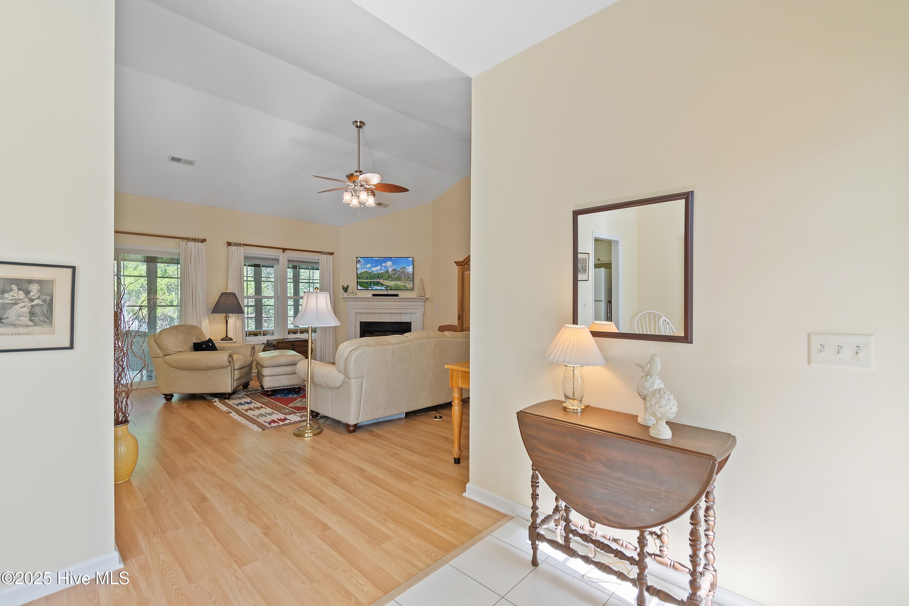 - Blinds/Shades, Vaulted Ceiling(s), Walk-In Closet(s), Walk-in Shower, Entrance Foyer, High Ceilings, Gas Log, Ceiling Fan(s)