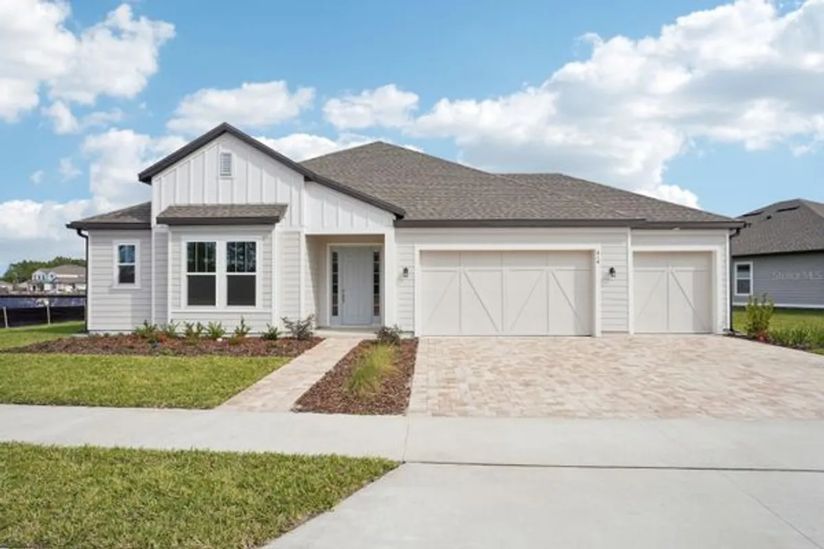 Welcome to this beautifully designed home inspired by the Coastal Collection by Ashton Woods, where relaxed sophistication meets functional living. Located in a natural gas community just minutes from the famous New Smyrna Beach, this residence offers the perfect blend of comfort, style, and convenience with close proximity to I-95, Daytona, and Port Orange. Inside, the open-concept layout showcases a gourmet kitchen with white cabinets, quartz countertops, and a tiled backsplash, flowing seamlessly into spacious living and dining areas highlighted by tray ceilings and coordinating chrome finishes. The home also features a private in-law suite complete with its own living room, bedroom, and bathroom—perfect for guests or multigenerational living. Enjoy everyday luxury in the primary suite with a frameless glass shower, elegant bath fixtures, and a serene pond and conservation view from the covered lanai. With thoughtful upgrades throughout, including a 3-car garage and designer lighting package, this Coastal Collection home offers modern beachside living at its finest.