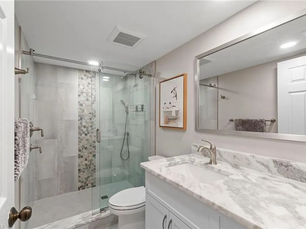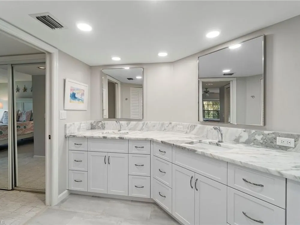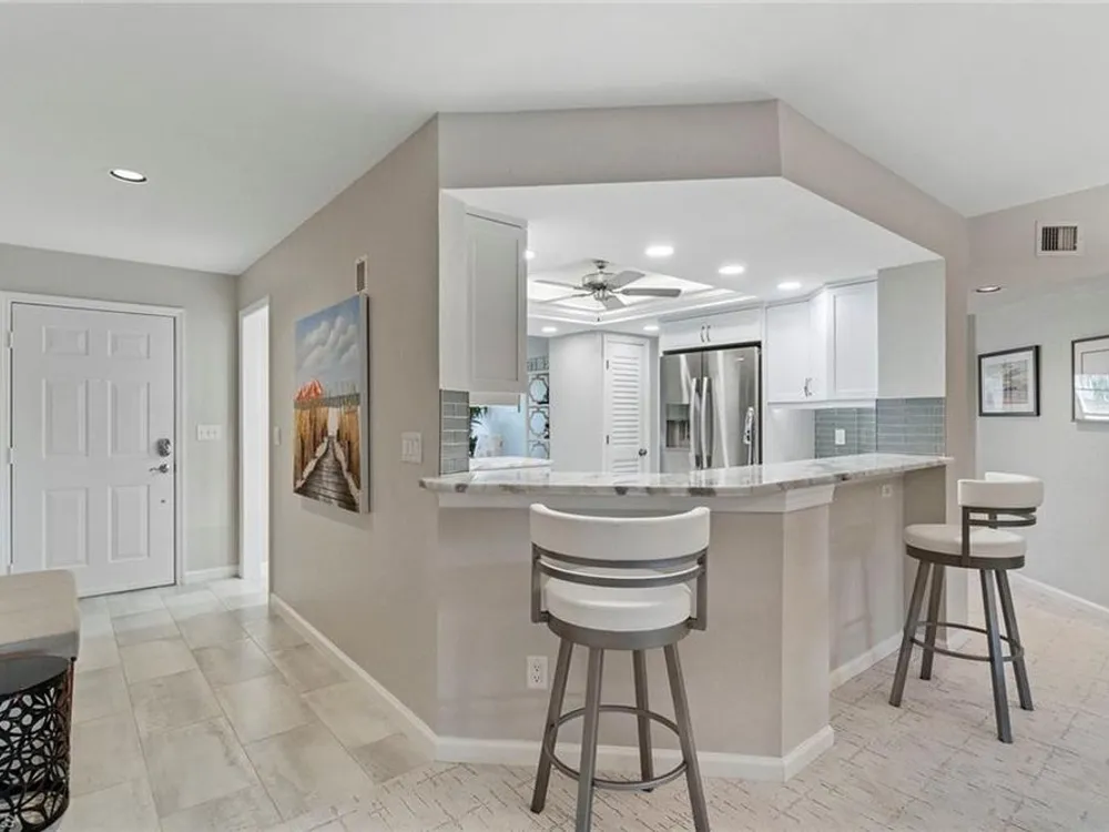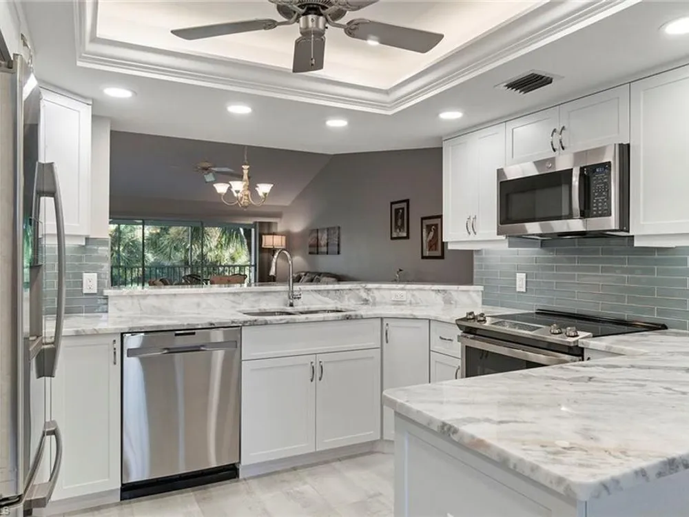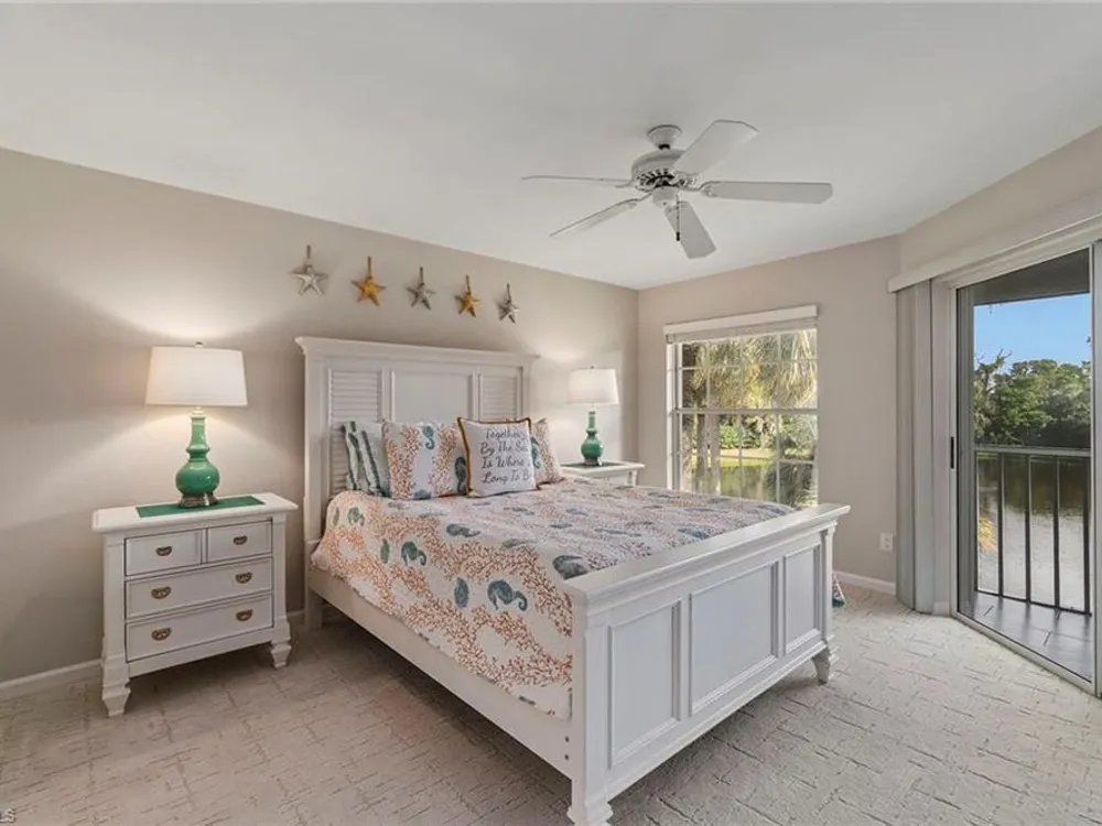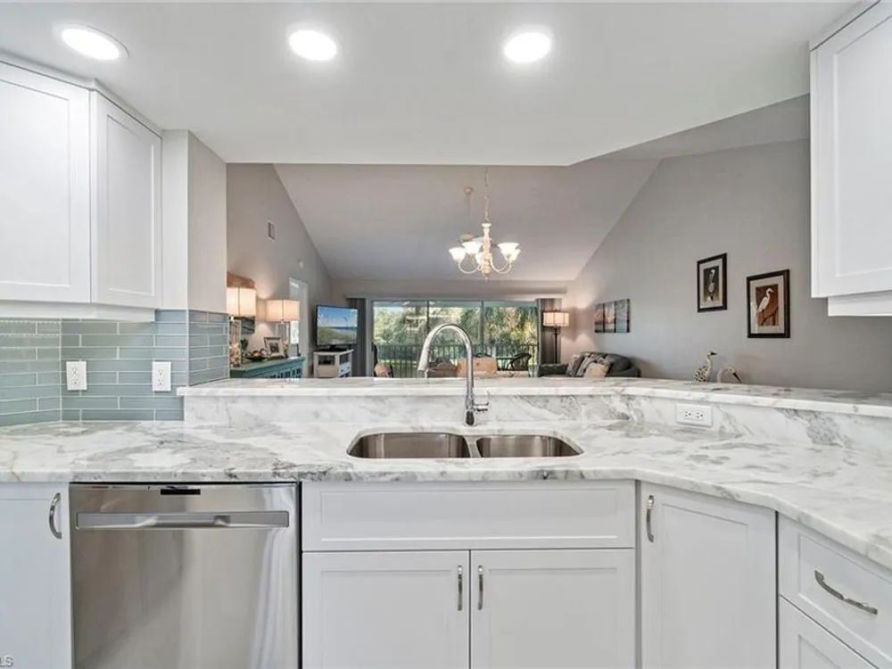 Welcome to this beautifully updated two-bedroom, two-bath residence in the desirable Sandpiper neighborhood of Bonita Bay. This second-floor condominium combines modern upgrades with serene lake and nature views, creating a blend of comfort and style. Enter inside to discover an inviting open floor plan highlighted by modern tile flooring, plush carpeting and abundant natural light. The fully remodeled kitchen (2022) features white shaker cabinets with soft-close drawers, granite countertops, stainless steel appliances, under-cabinet lighting, a breakfast bar and an eat-in nook beneath a tray ceiling with recessed lighting—ideal for casual dining or entertaining. The spacious primary suite offers peaceful pond views and direct access to the screened lanai which is complete with new no-see-um screens. The remodeled en-suite bath showcases dual sinks with granite countertops, white soft-close cabinetry, walk-in tile shower with multiple showerheads and a large walk-in closet. The separate guest suite and second bath are equally impressive, providing comfort and privacy for visitors. Enjoy tranquil mornings and colorful sunrises from the lanai, framed by lush trees, manicured landscaping and a sparkling pond—offering a private and picturesque backdrop with no neighboring residences in view. Additional highlights include 2023 air conditioning, 2023 new condominium roof, covered carport parking, outdoor storage and ample guest parking, all in a convenient location, just two buildings down from the community pool and tennis courts. Residents of Bonita Bay also enjoy access to a private beach park on the Gulf, scenic walking and biking trails, multiple parks and a full-service marina—with optional club membership for world-class golf, dining, fitness and spa amenities. Experience the peaceful charm and exceptional value of Lake Forest living.
